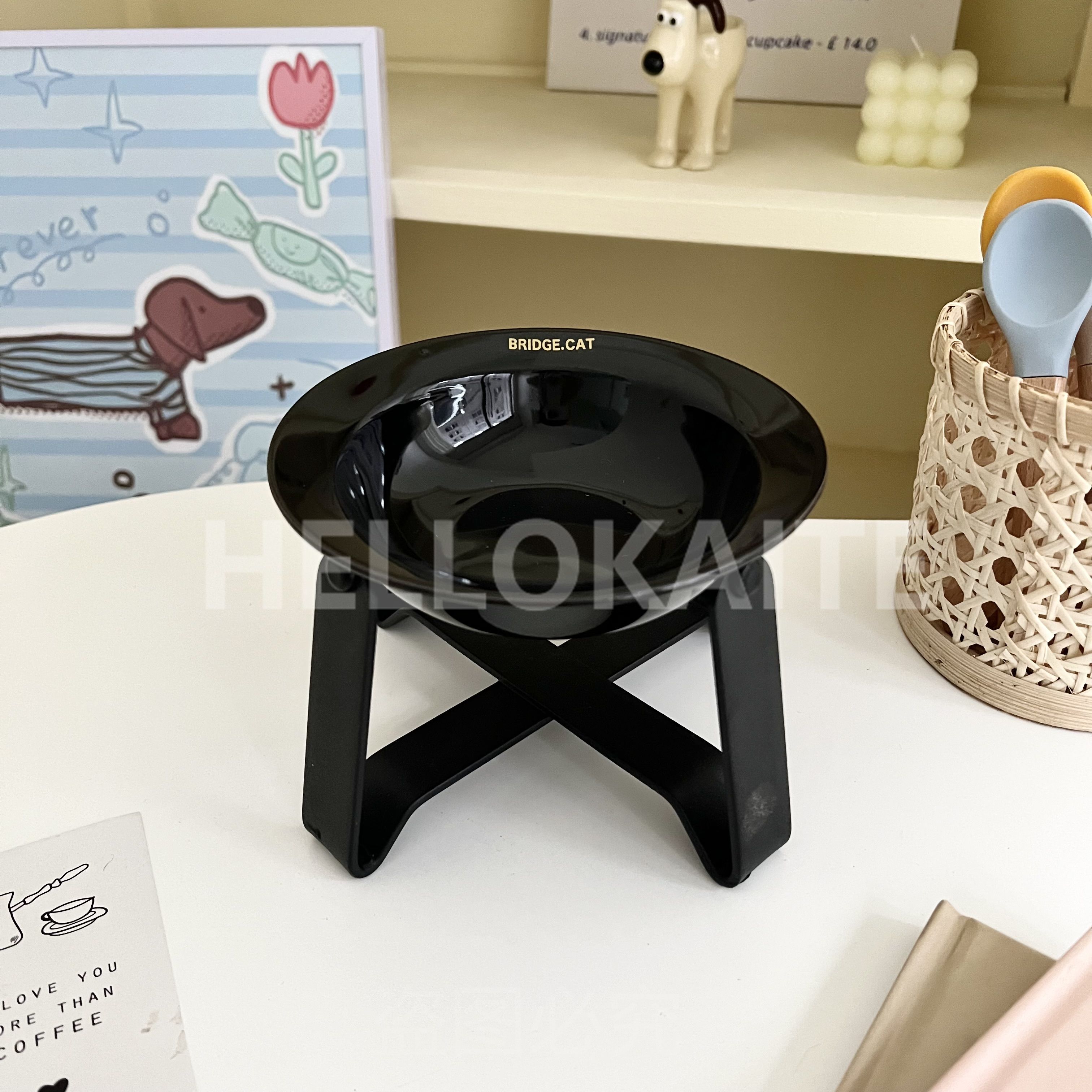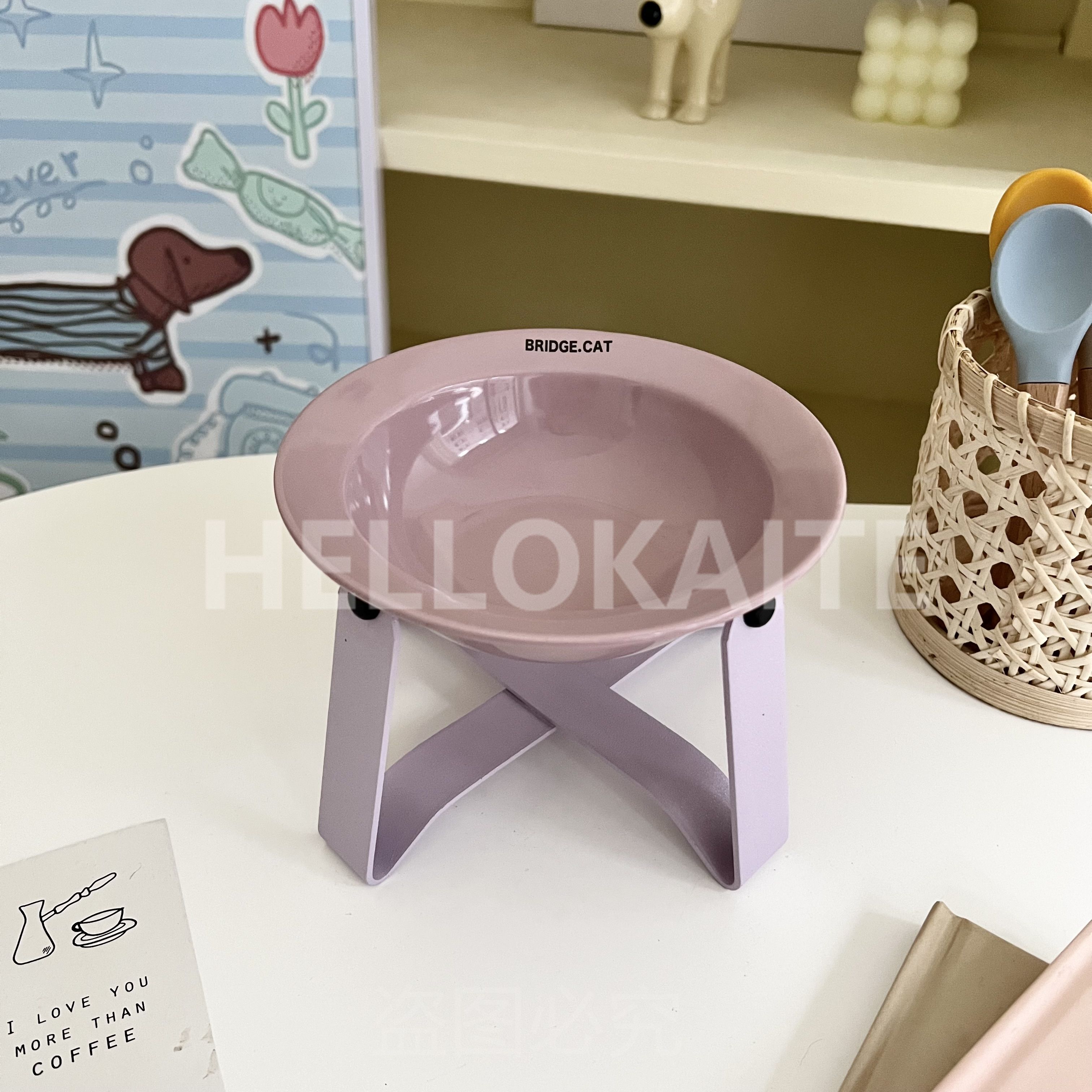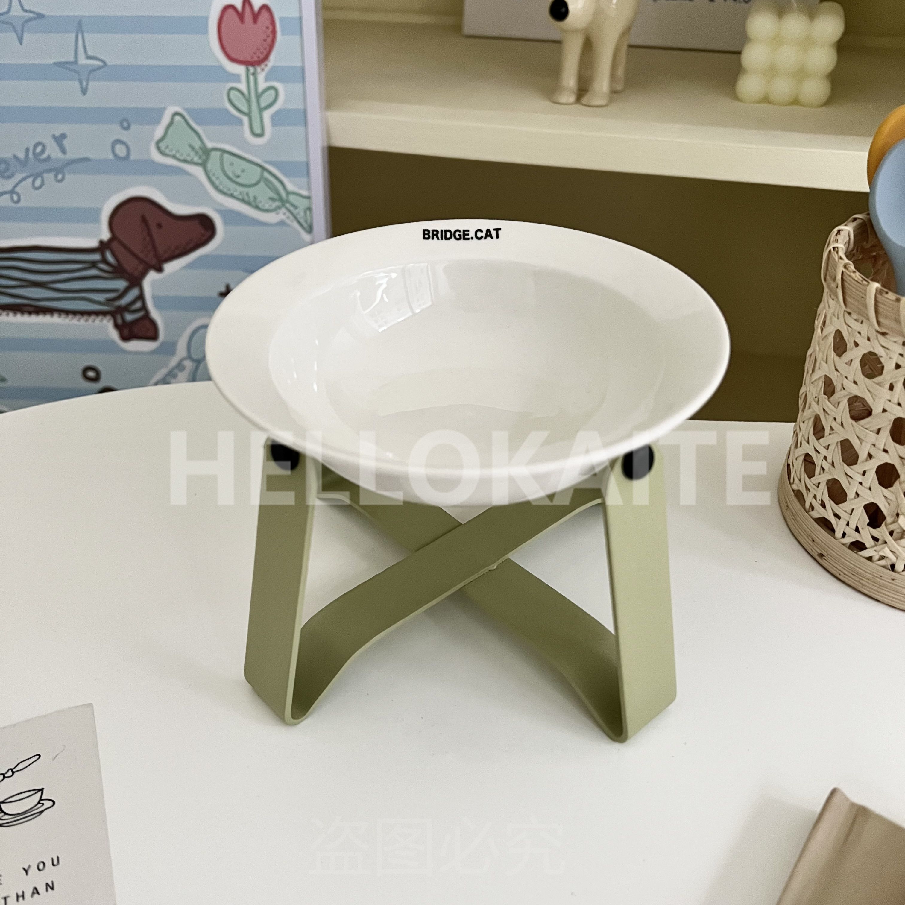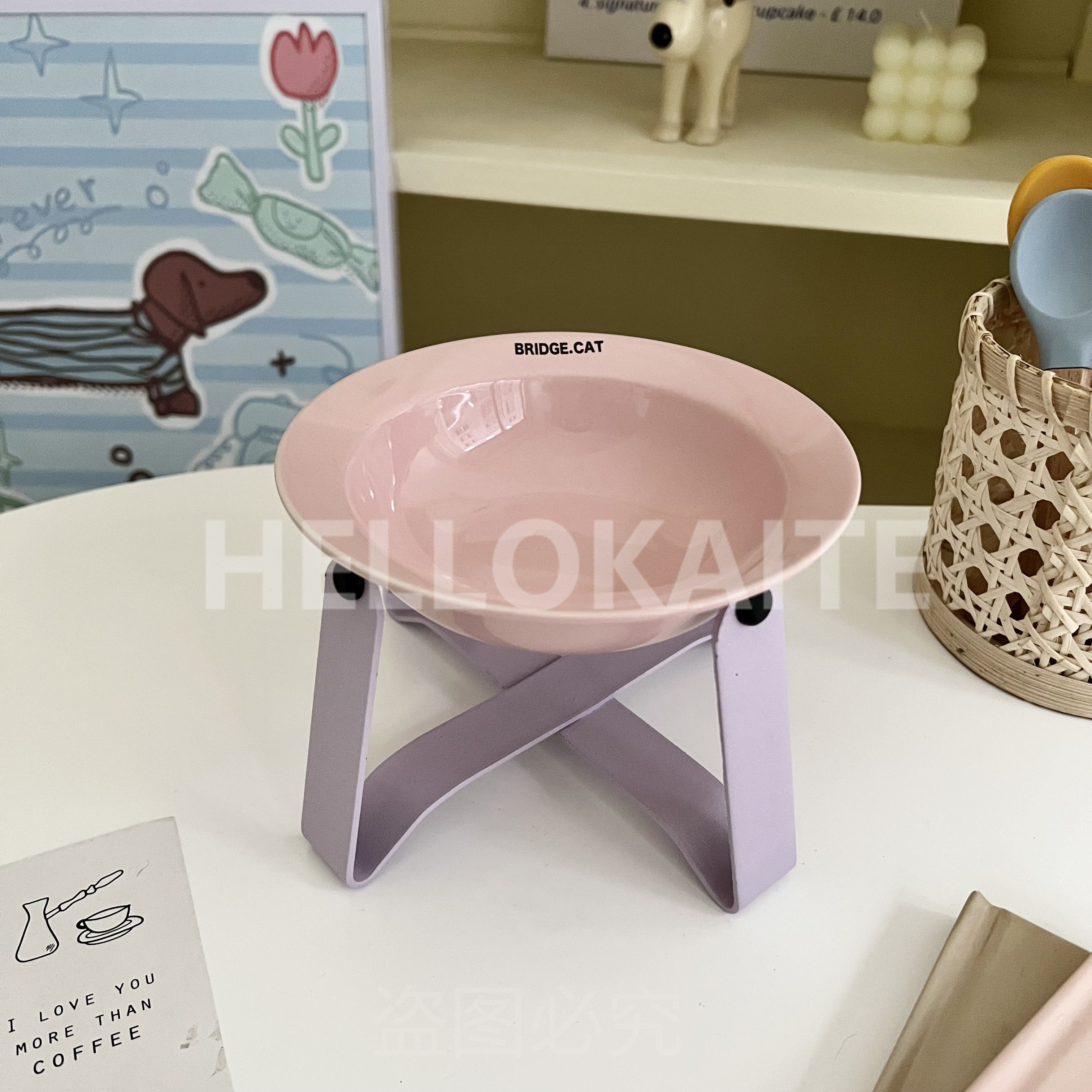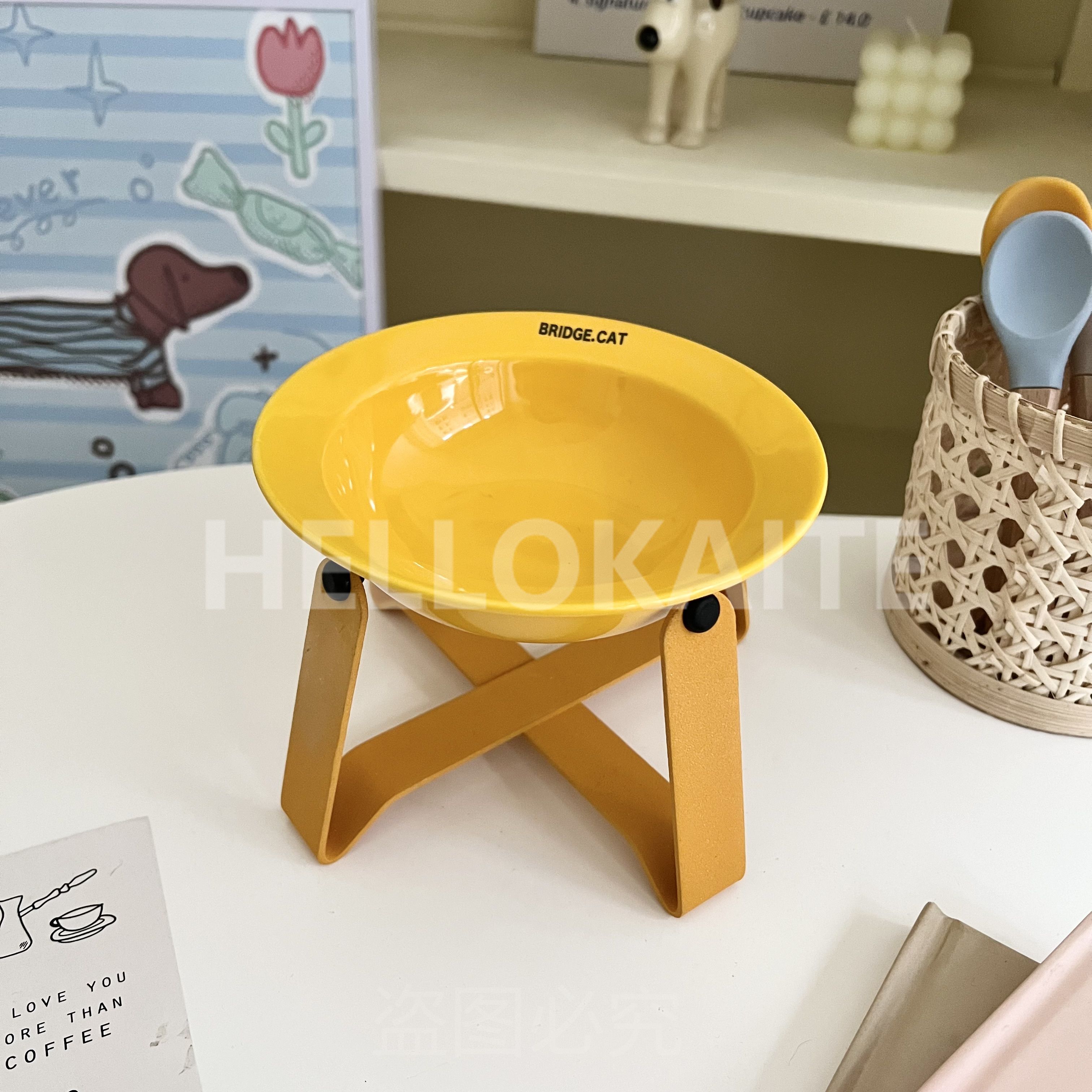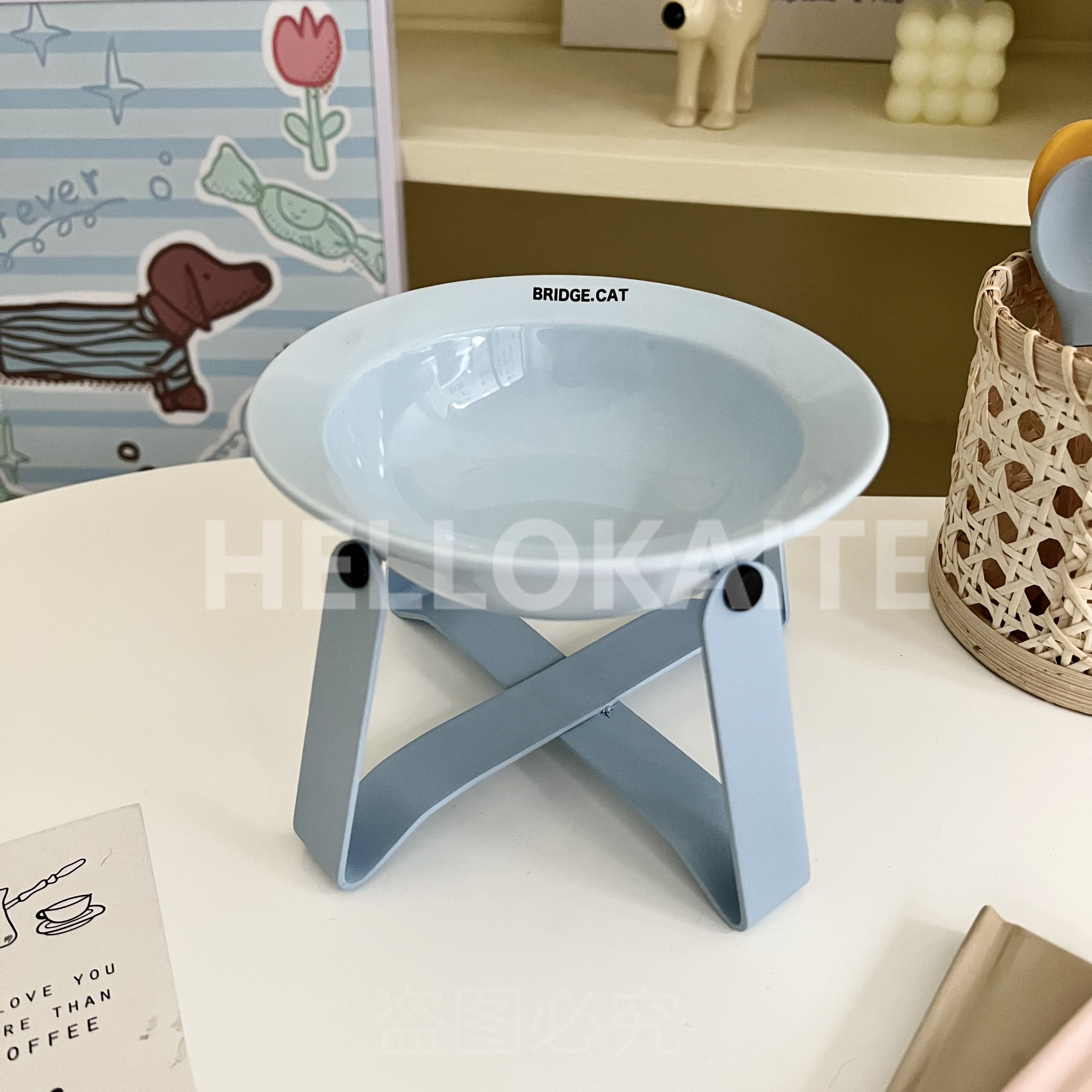猫咪饭碗碗架猫碗护颈飞碟双耳碗猫罐头碗猫碗宠物猫咪陶瓷碗加高