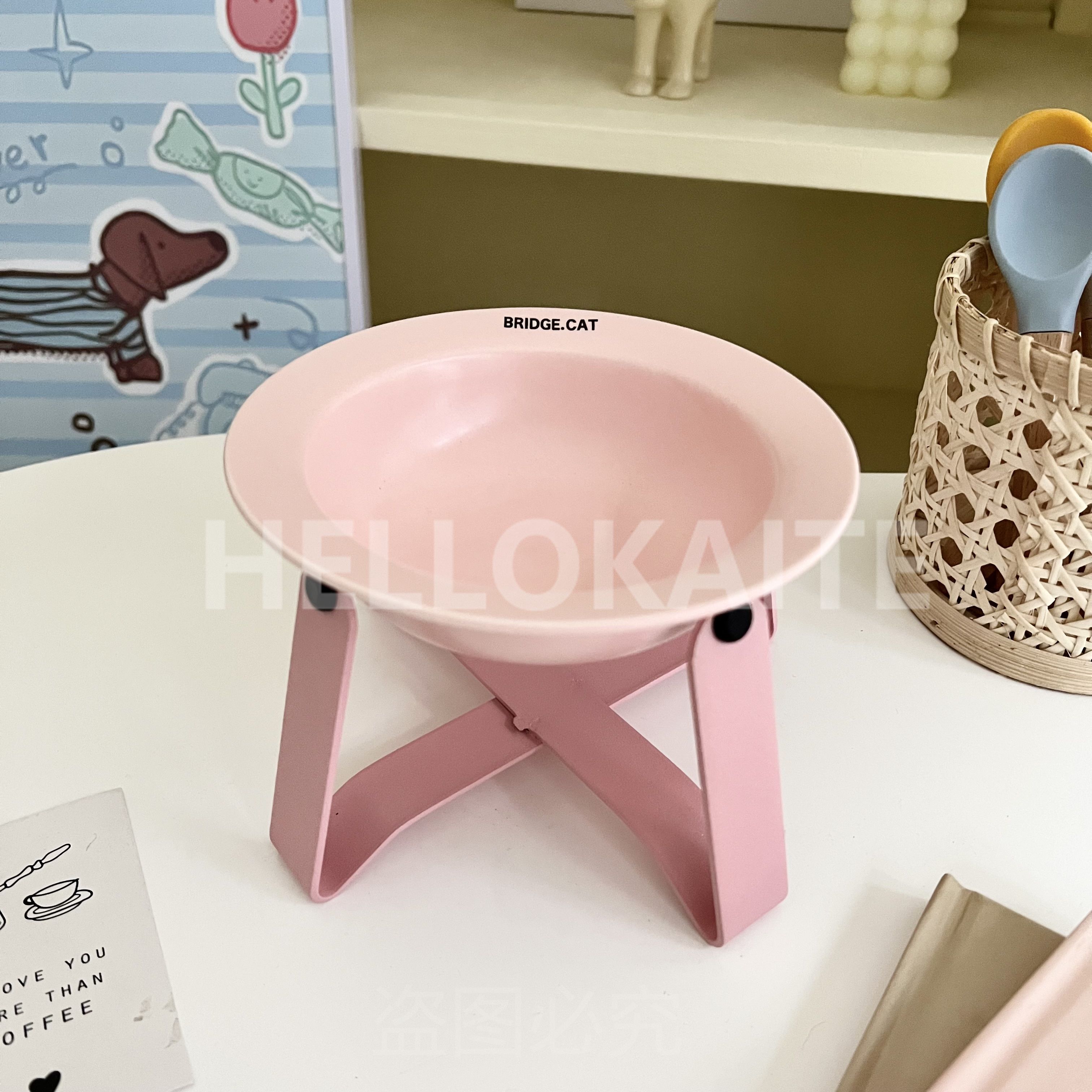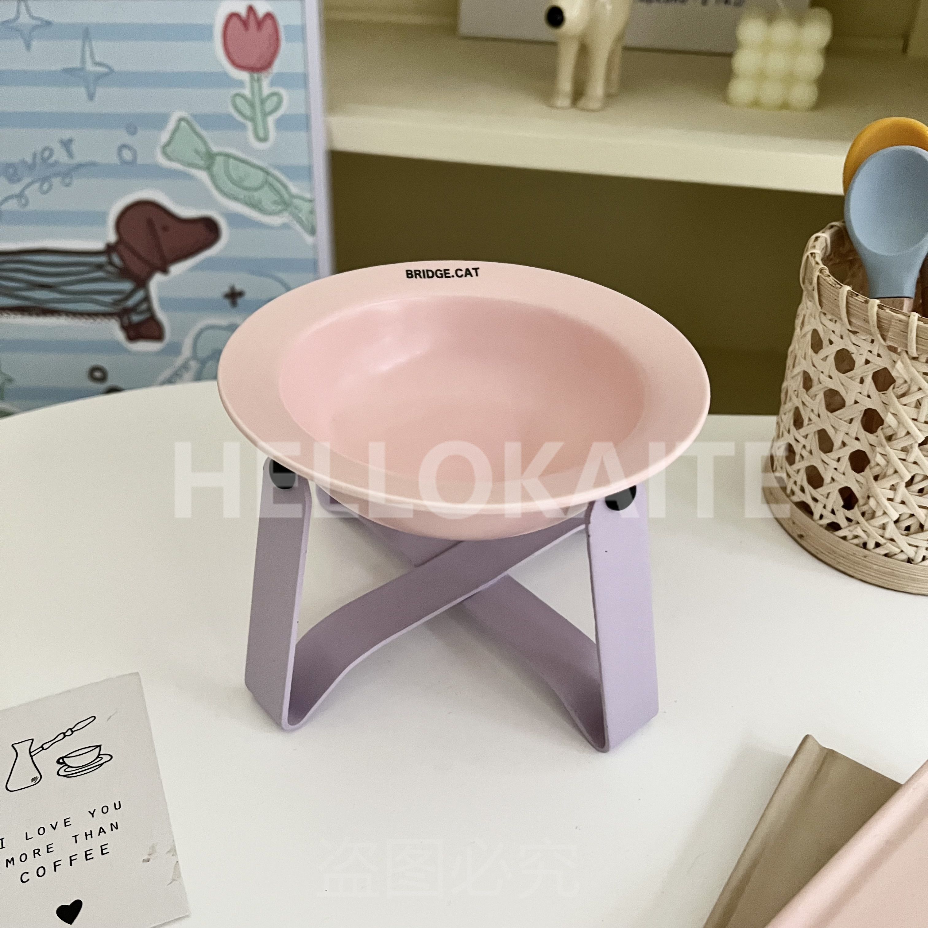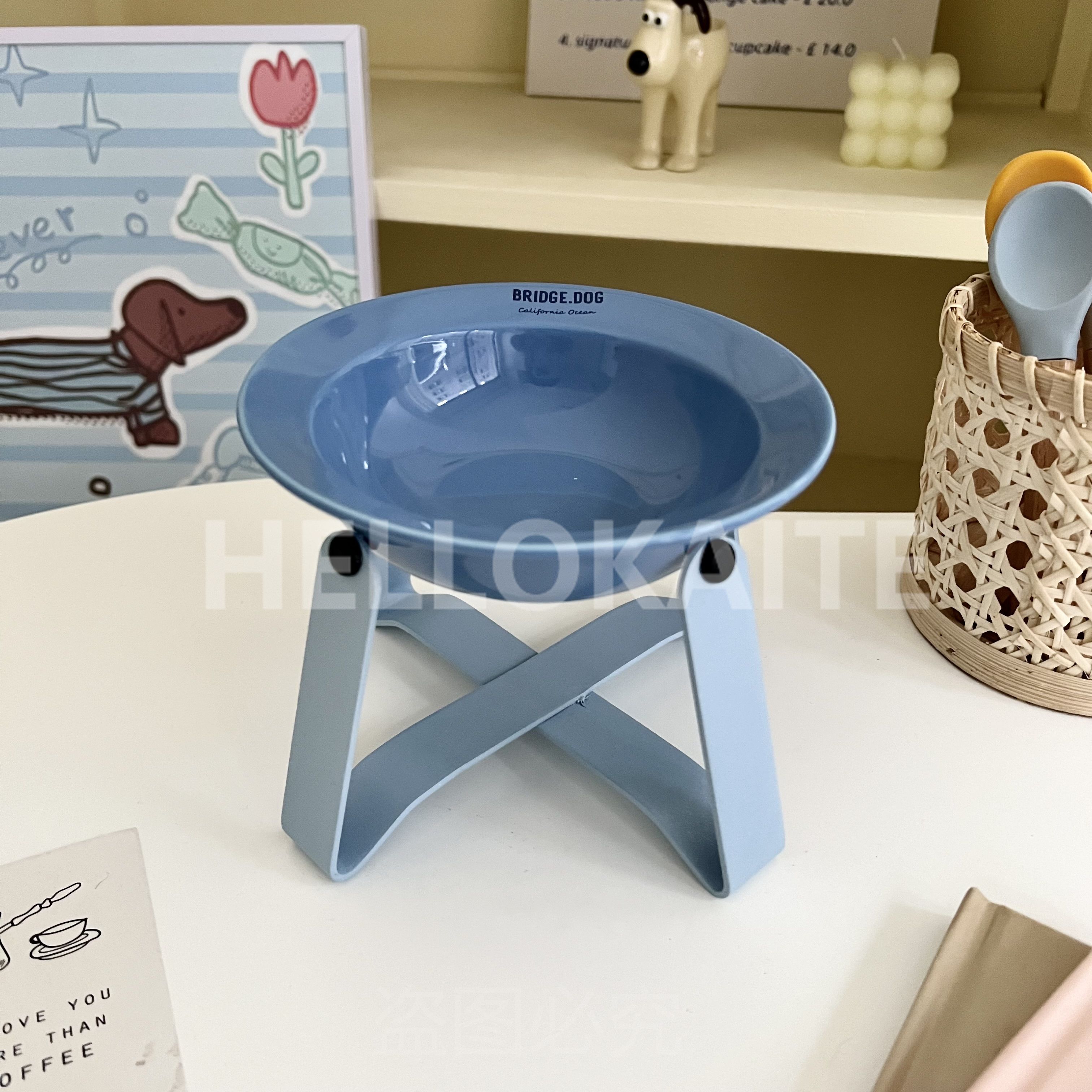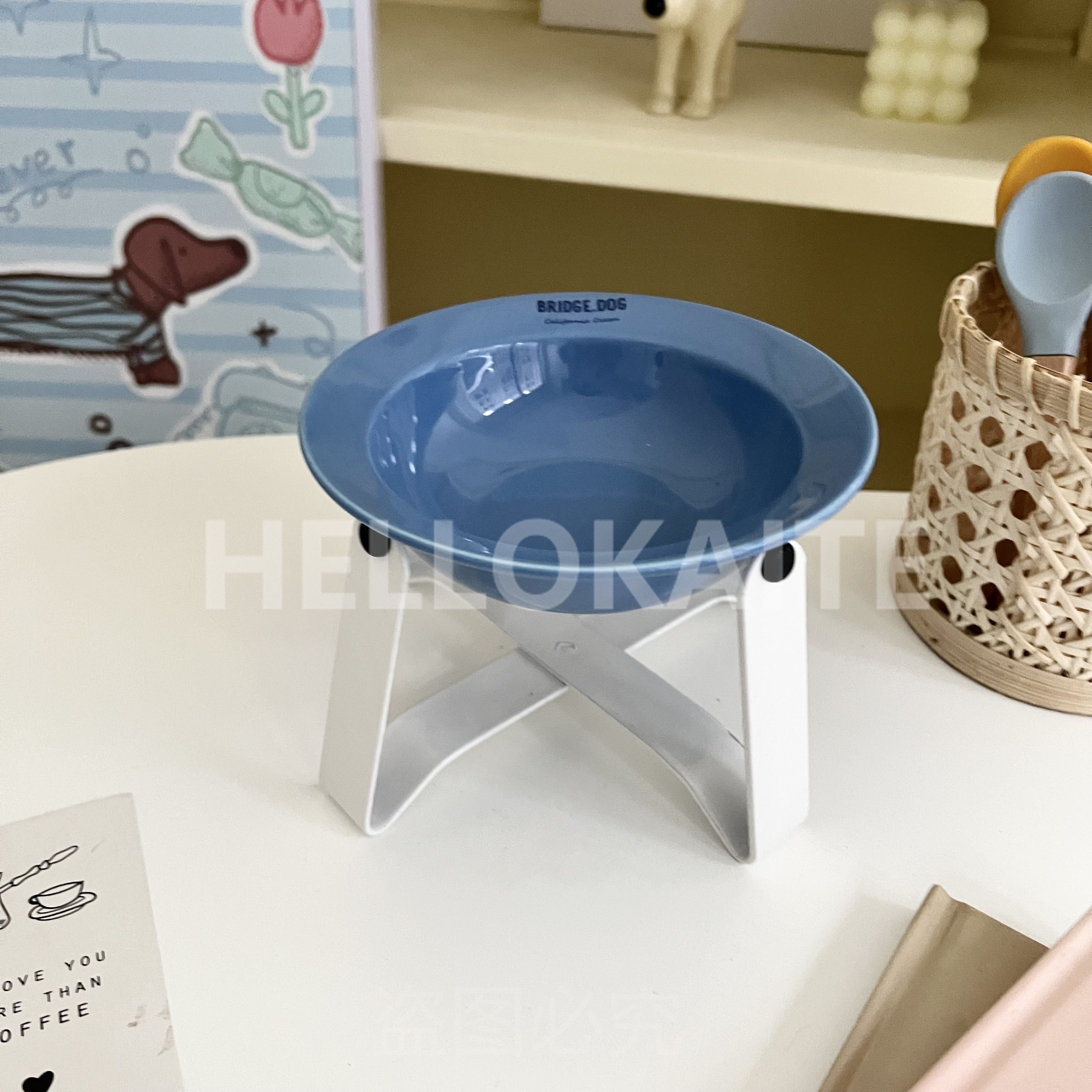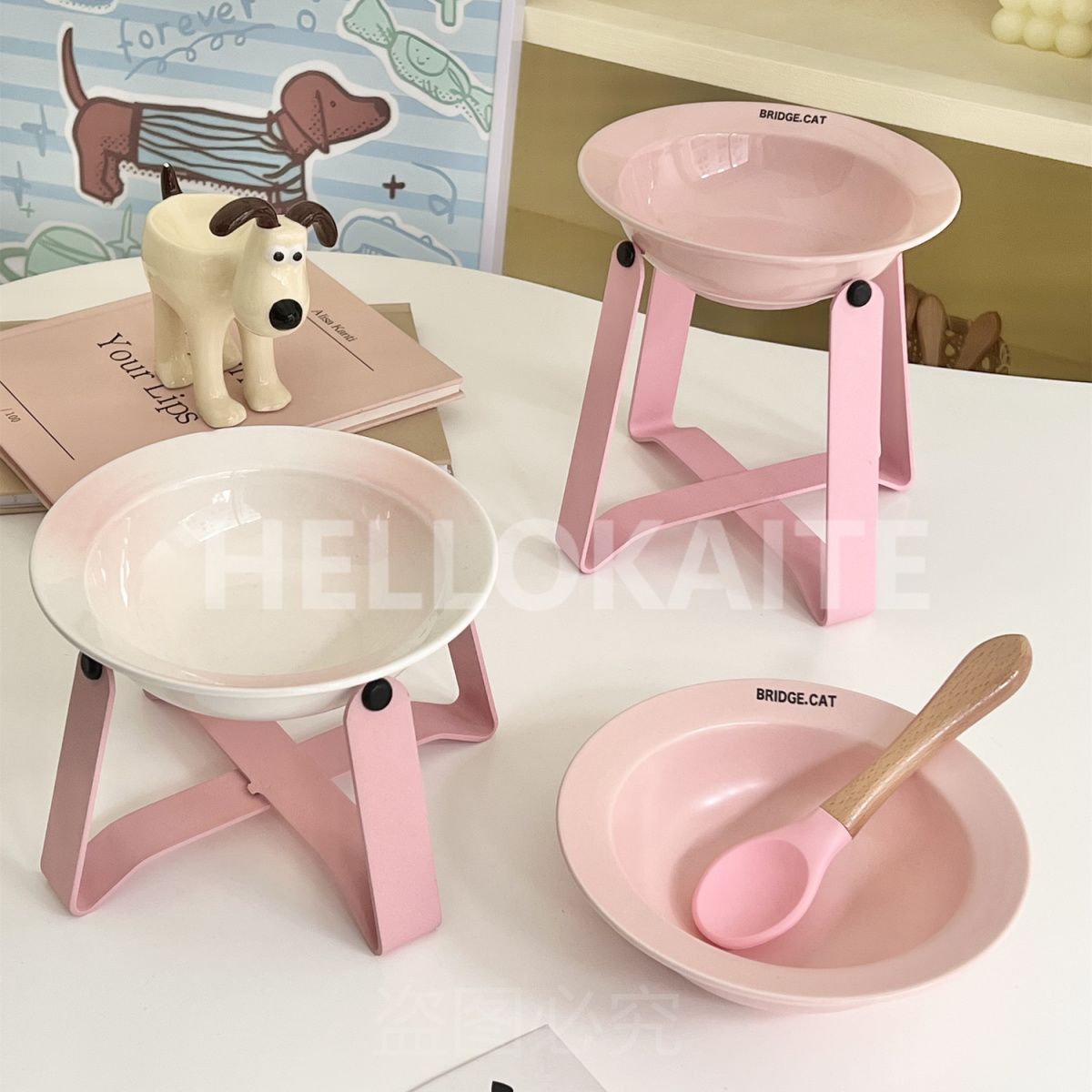 猫咪饭碗碗架猫碗护颈飞碟双耳碗猫罐头碗猫碗宠物猫咪陶瓷碗加高