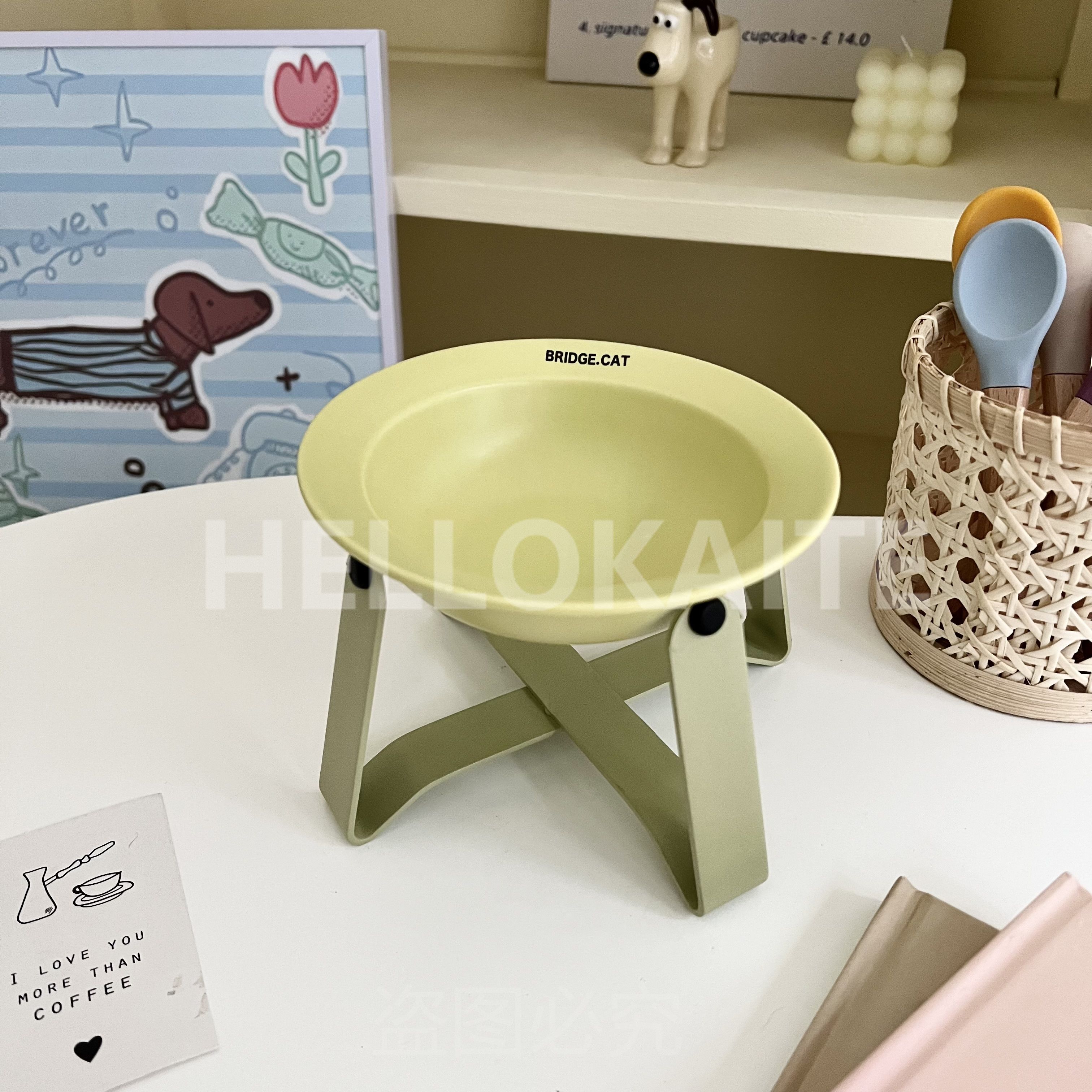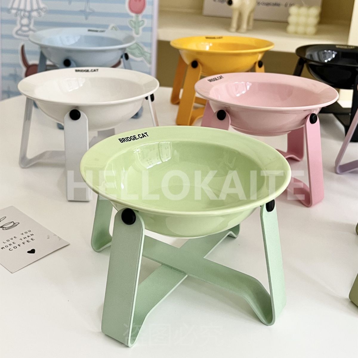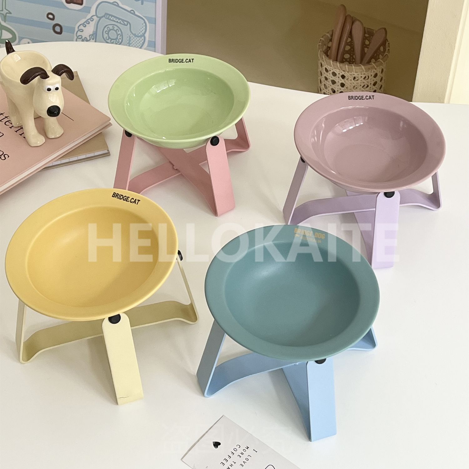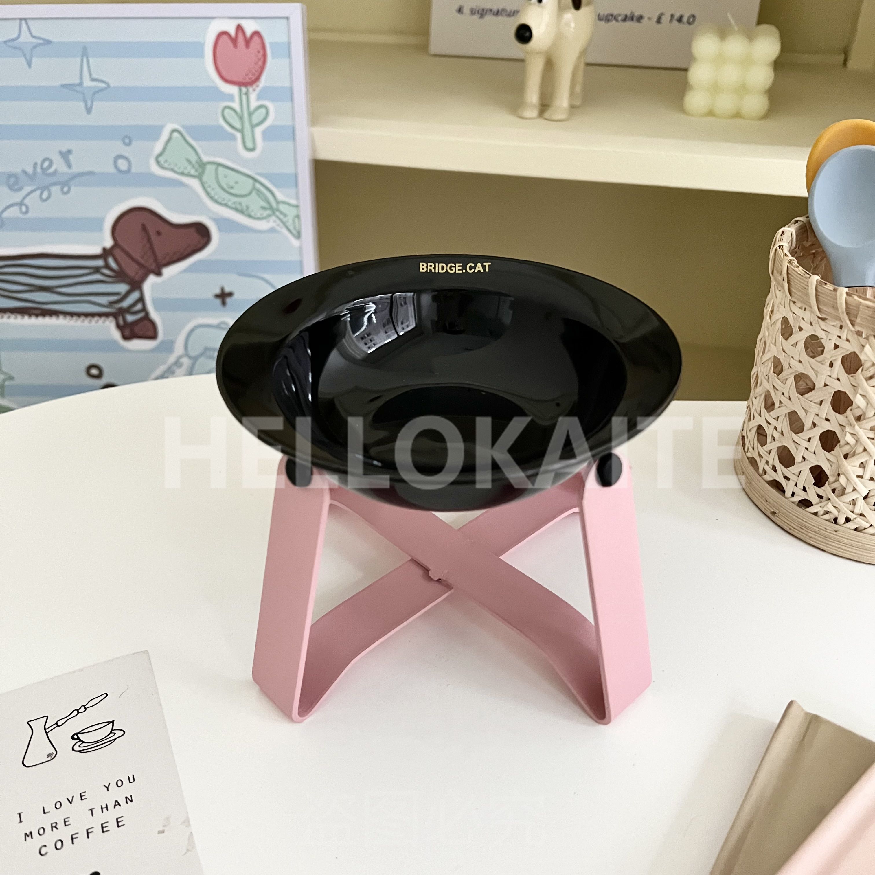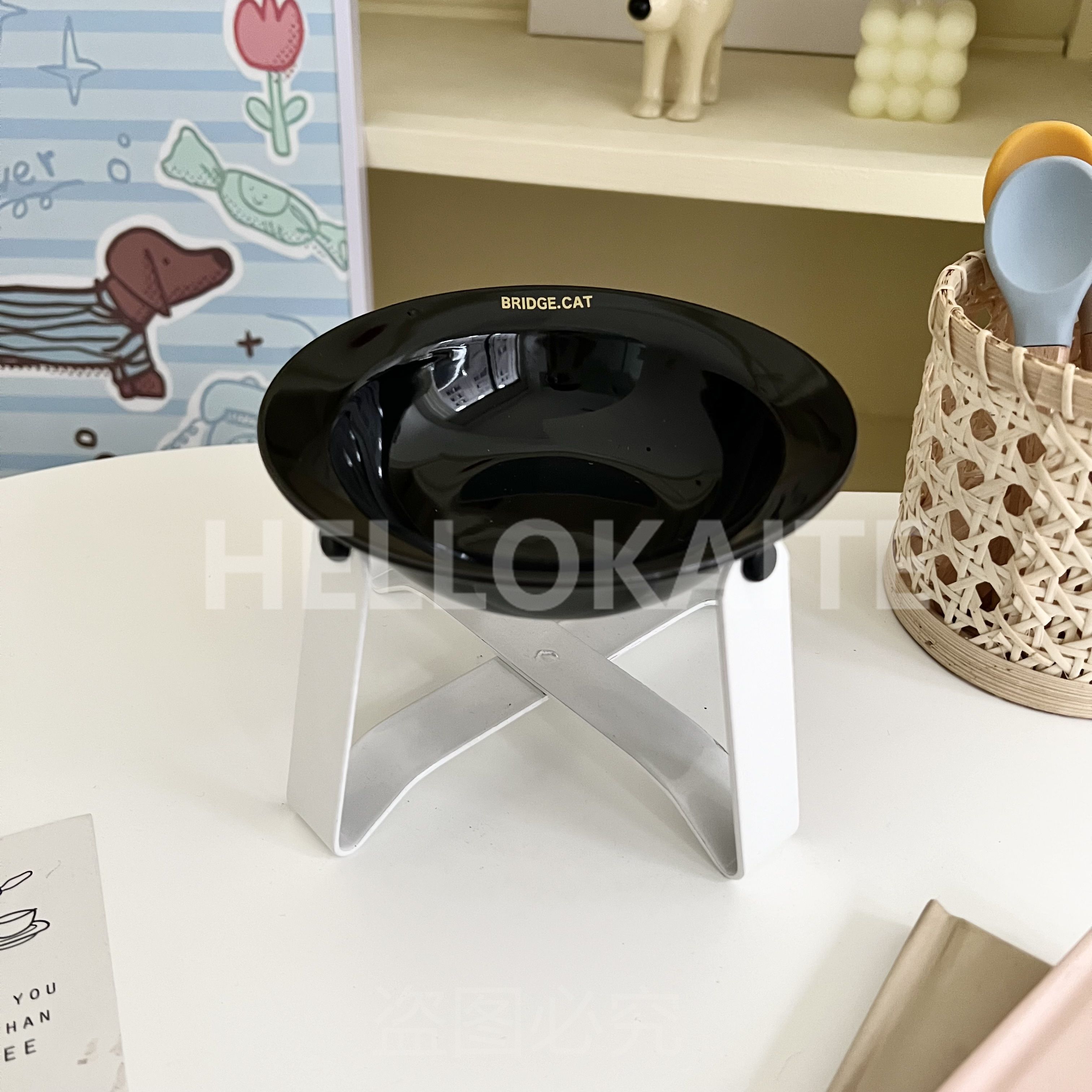 猫咪饭碗碗架猫碗护颈飞碟双耳碗猫罐头碗猫碗宠物猫咪陶瓷碗加高