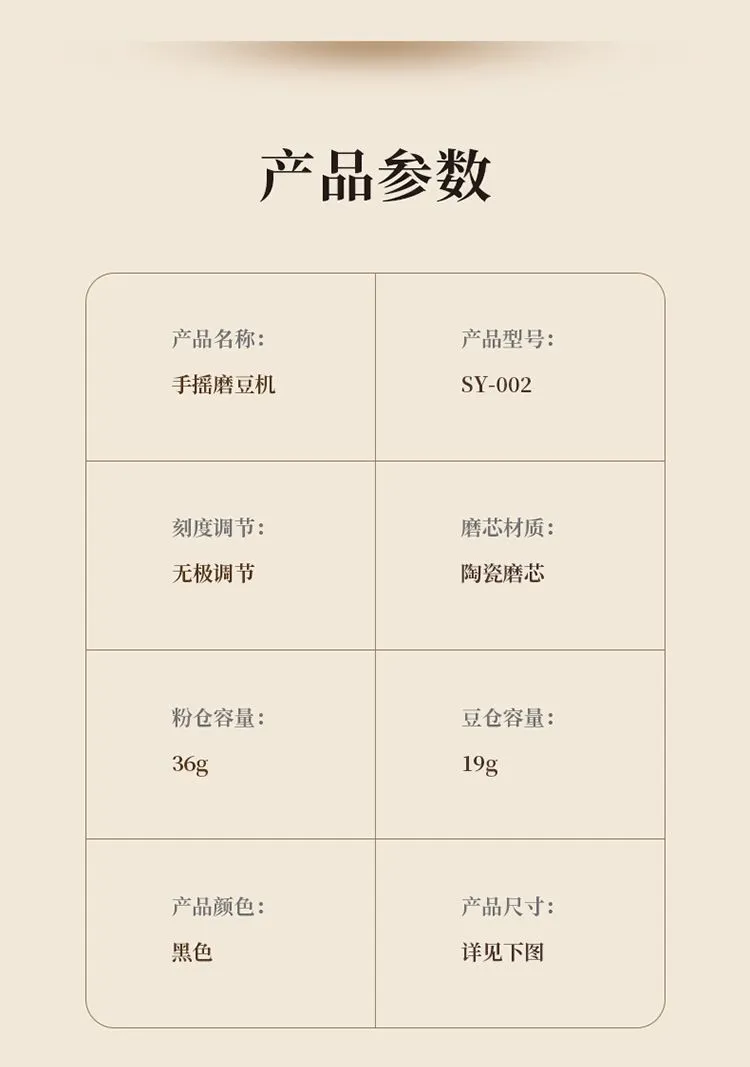 | manual grinding machine [adjustable thickness + bold handle]](手摇磨豆机【粗细可调+加粗手柄】) | USD $3.38 | 99999 piece available |