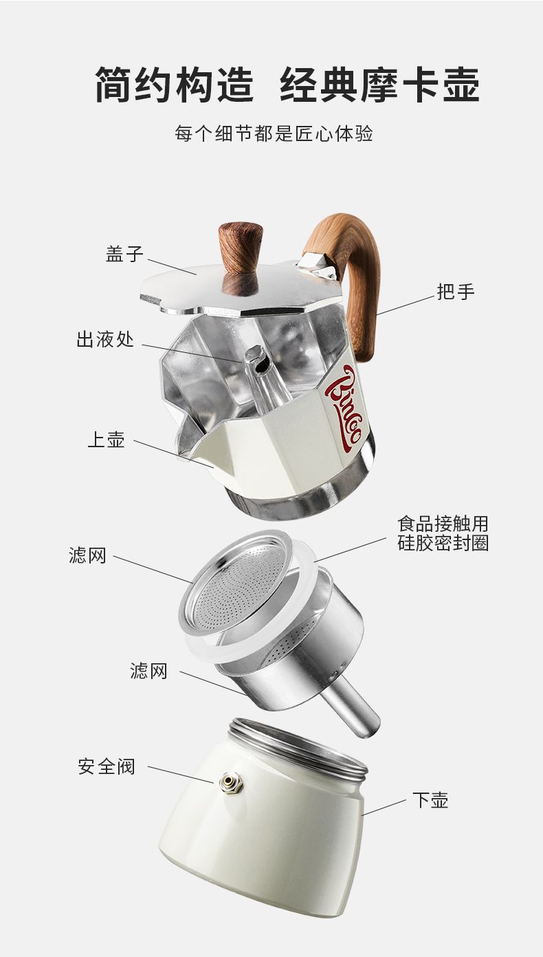 Bincoo咖啡摩卡壶家用煮咖啡壶套装小型意式咖啡液浓缩萃取咖啡机