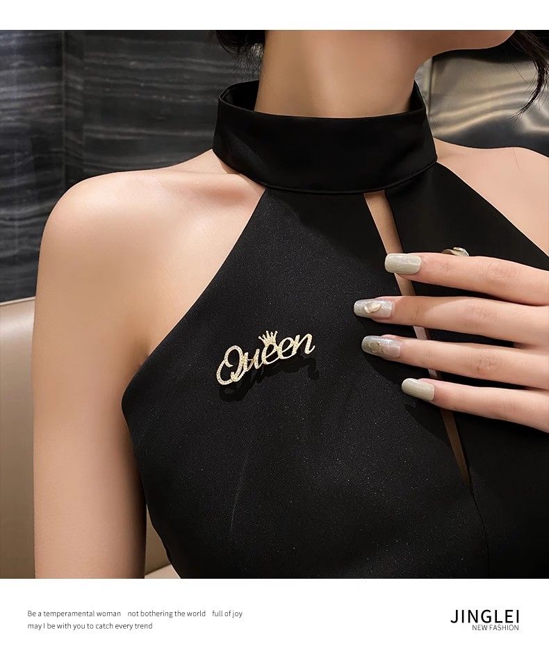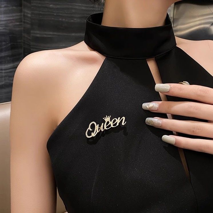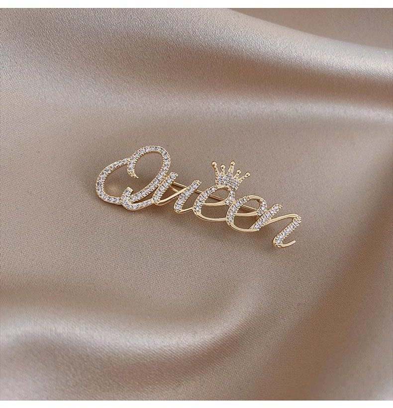 queen字母皇冠胸针时尚少女防走光扣日韩百搭网红固定衣服饰品潮
