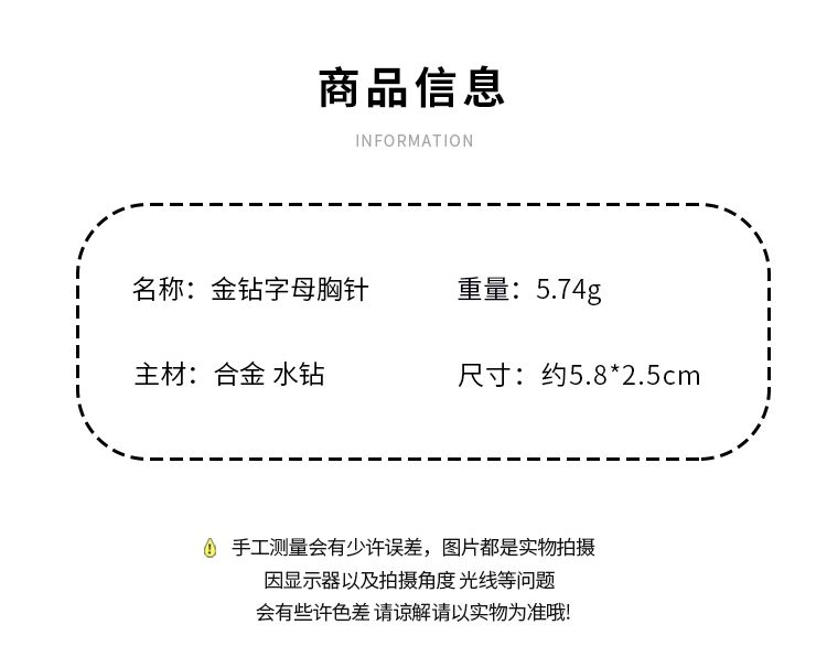 | 金色闪钻字母胸针S | USD $1.42 | 99999 piece available |