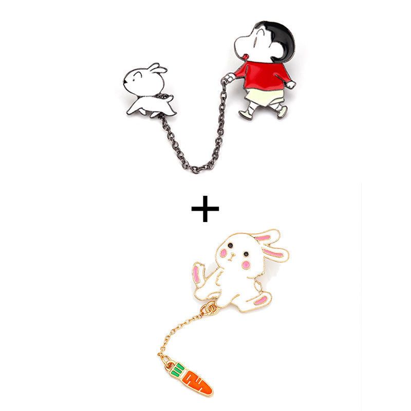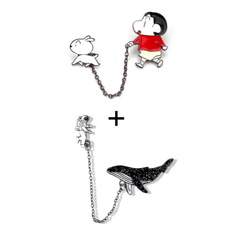 卡通富士山云朵链条情侣胸针ins蜡笔小新兔鲨鱼卡通胸针书包挂件