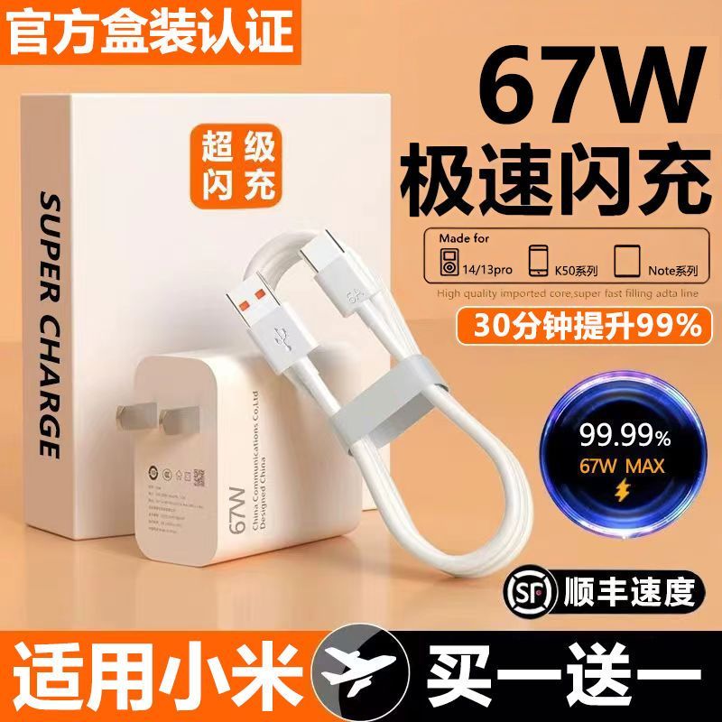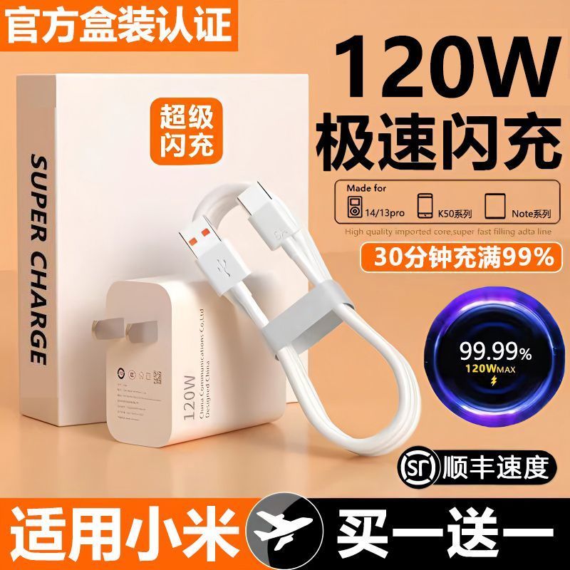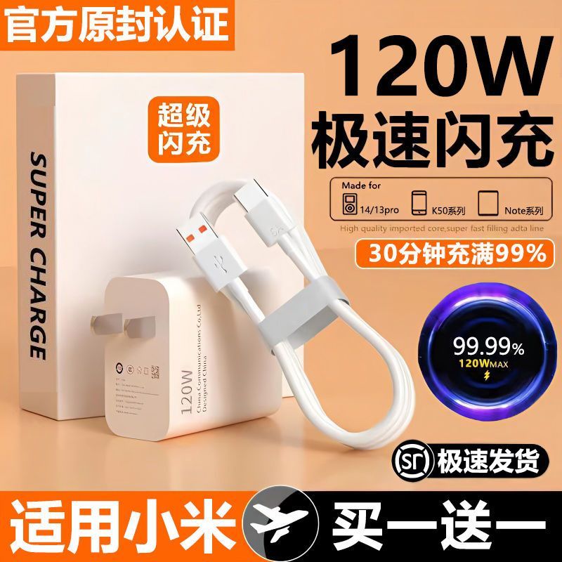 适用小米120W极速快充头数据线K50Pro红米充电器闪充线6A套装手机