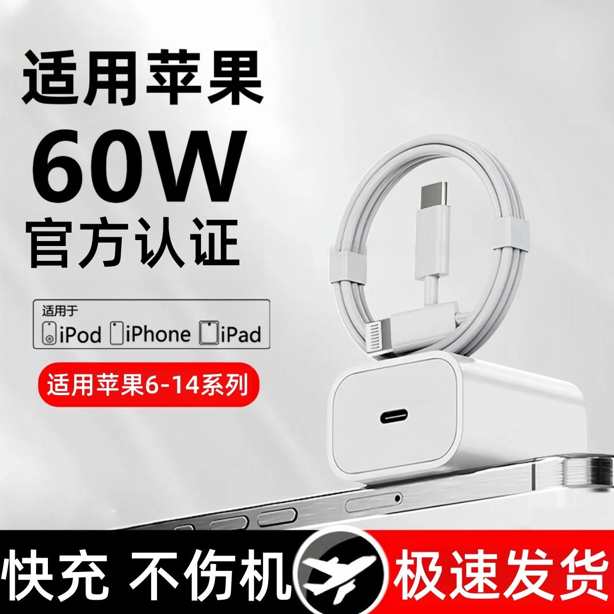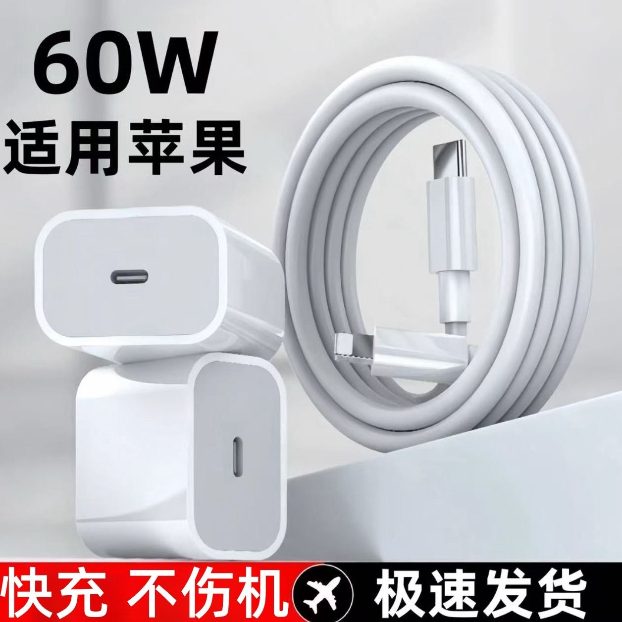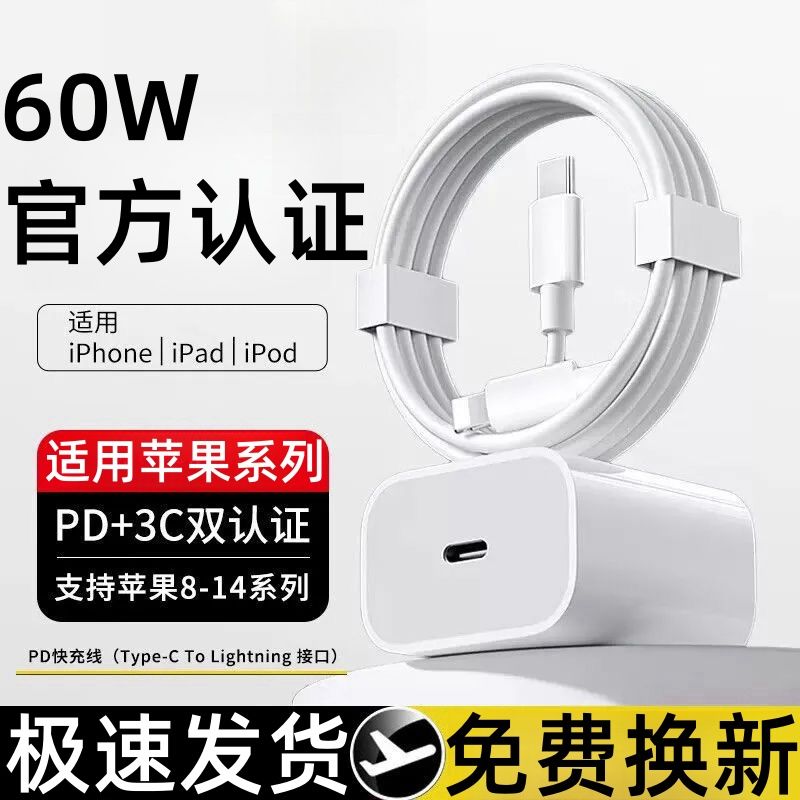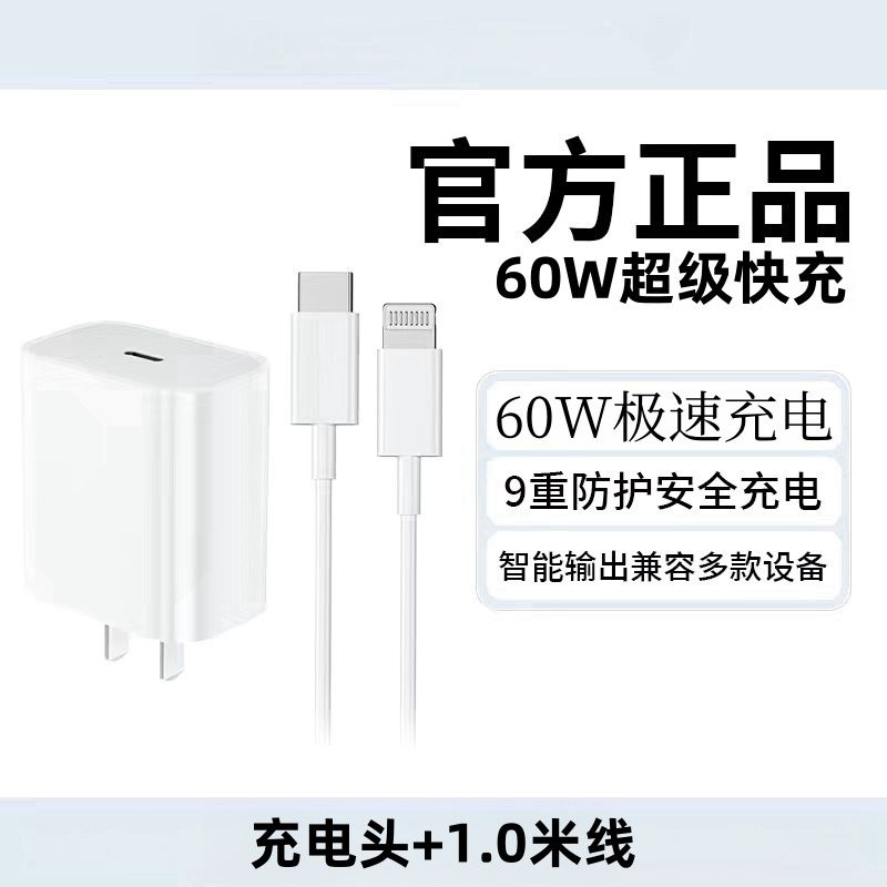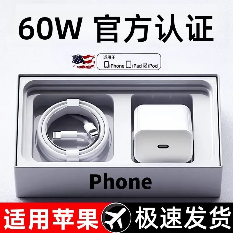 适用苹果60W快充充电器iPhone14/13/12/11promax快充线xr/8/7通用