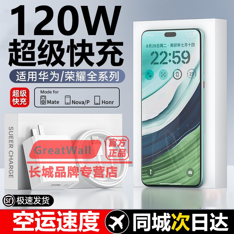 长城240W适用华为荣耀超级快充120W充电器mate50/P40手机6A数据线