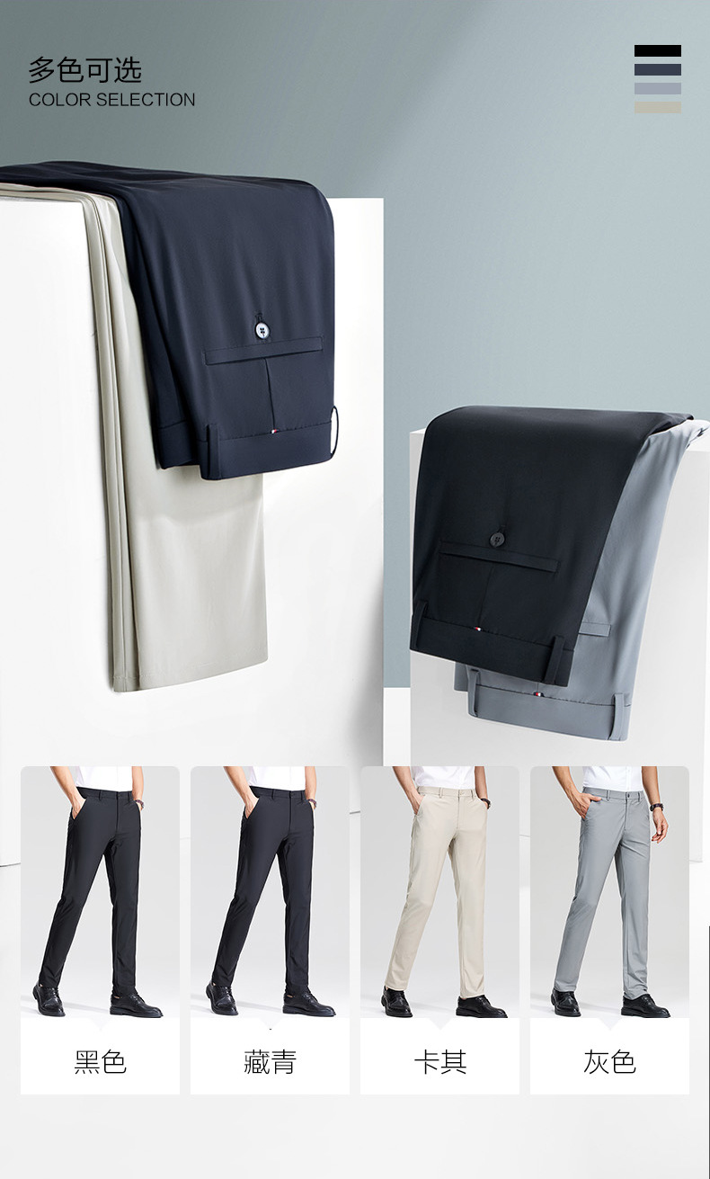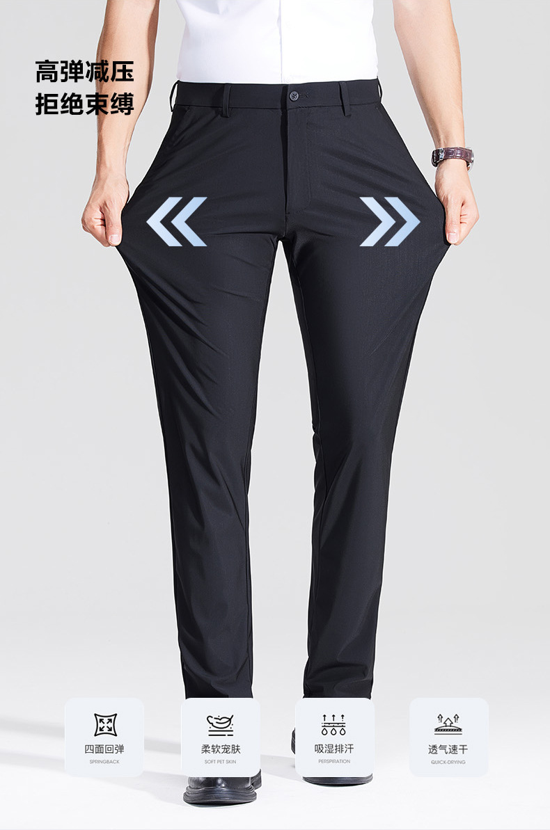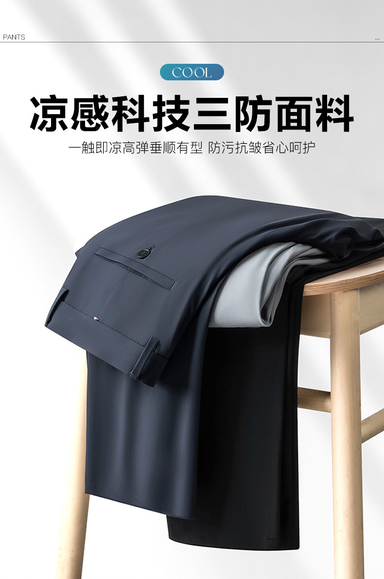 2024春夏季男士高弹薄款商务男裤休闲裤凉感冰丝易打理三防西裤男