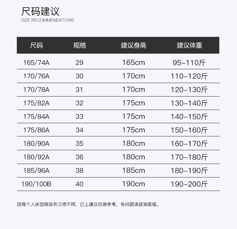 | 35-recommended 80.00 kg-85.00 kg(35-推荐160-170斤) | USD $0.0 | 7098 piece available |