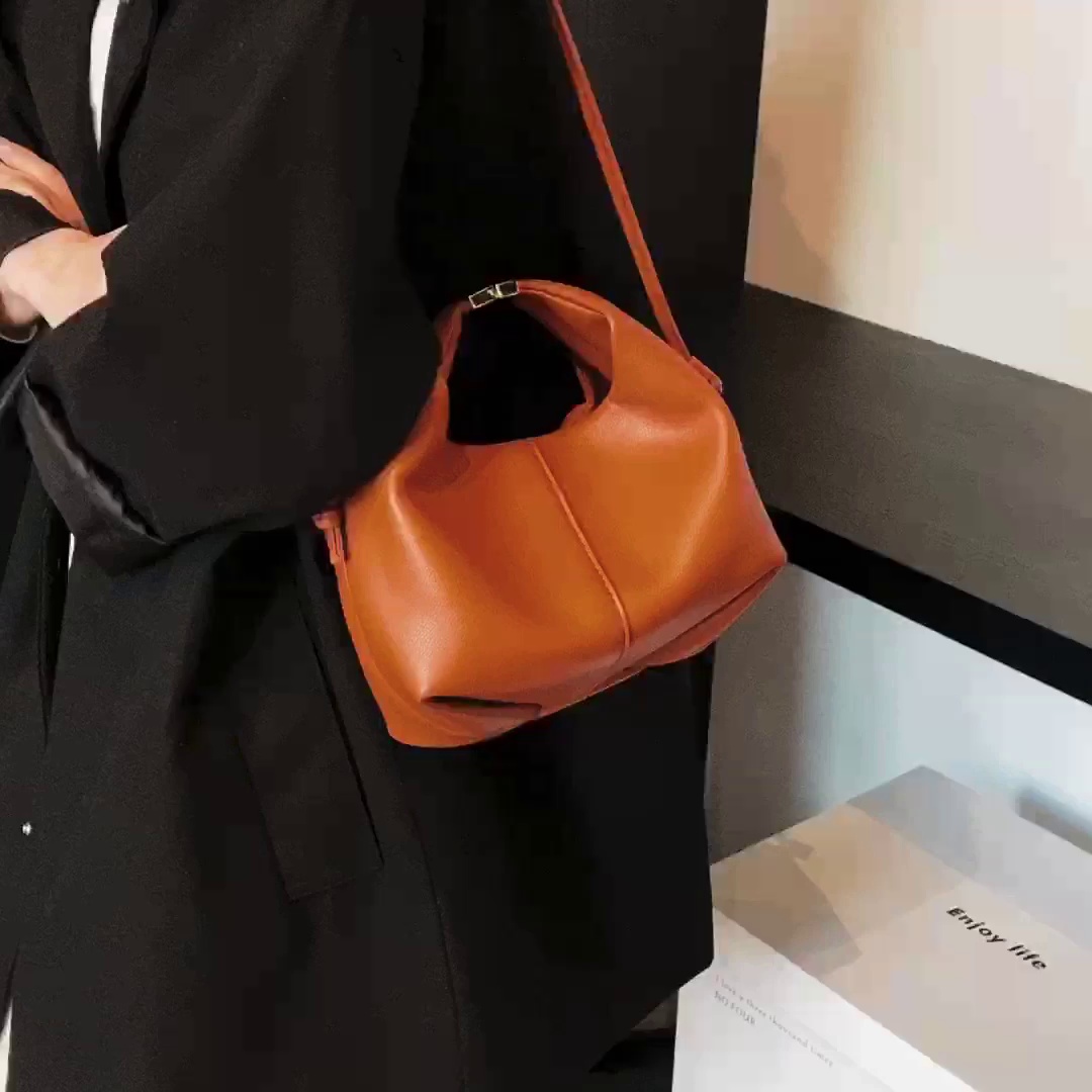 新款时尚纯色PU包包潮流女包单肩手提包7364