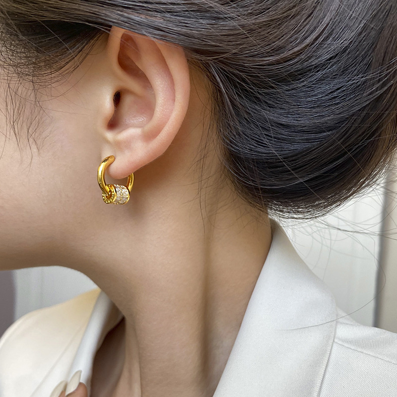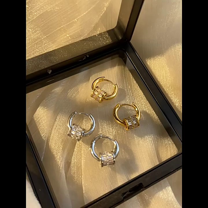 小众百搭高级感小蛮腰耳环精致微镶耳饰品真金电镀5A级锆石耳钉女