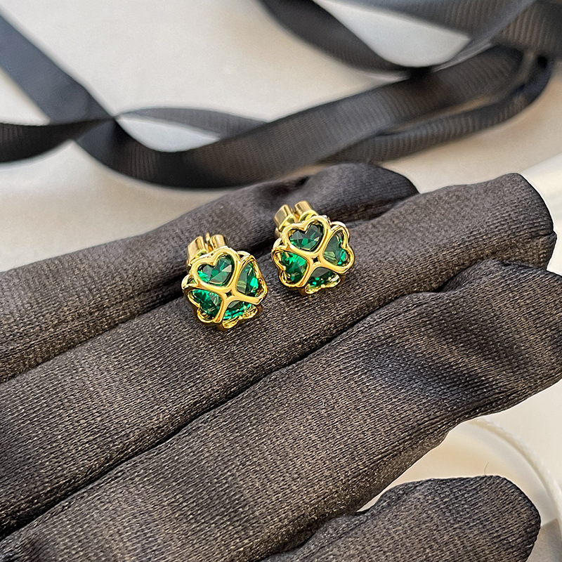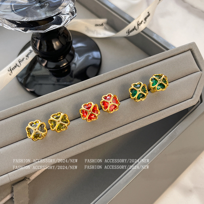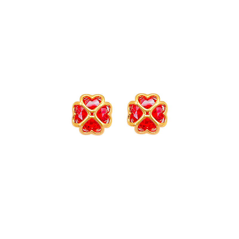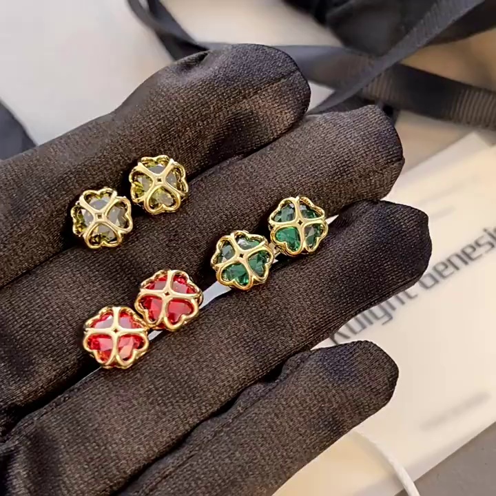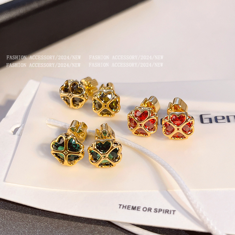 时尚气质设计师款桃心耳堵耳环真金电镀彩色花朵5A级锆石耳钉女女