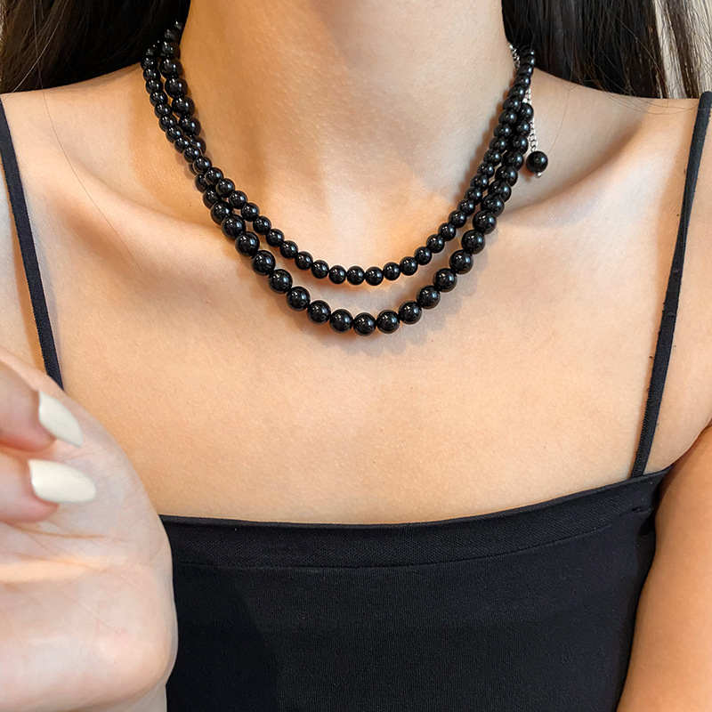 轻奢高级感卫衣毛衣链颈链真金电镀施家大溪地黑真多麻珍珠项链女