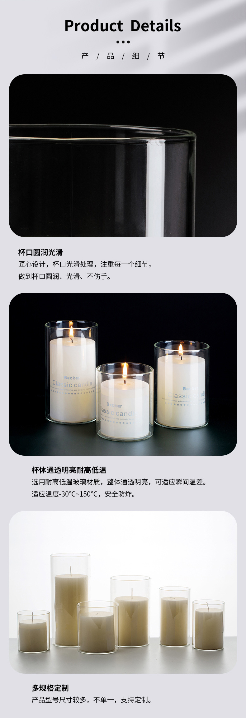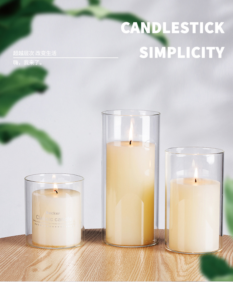 简约高硼硅蜡烛杯透明欧式烛台摆件蜡烛带盖玻璃瓶婚庆餐厅蜡烛台