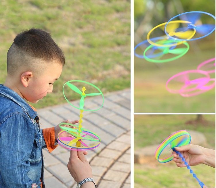 手推飞碟飞天仙子天轮玩具旋转竹蜻蜓转转乐飞盘怀旧儿童赠品玩具