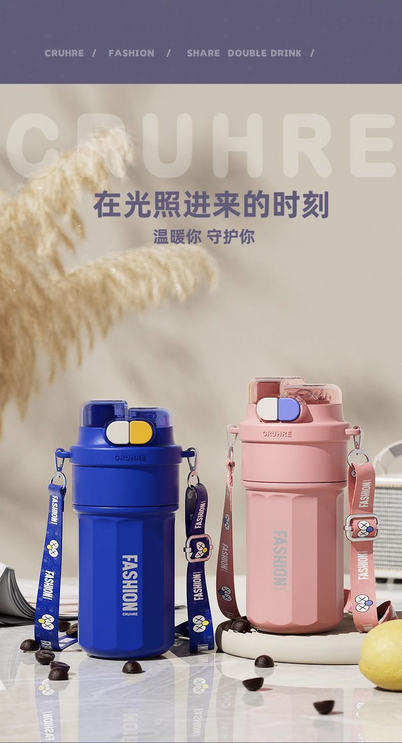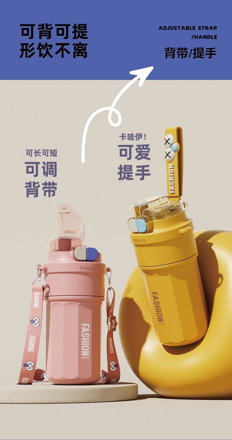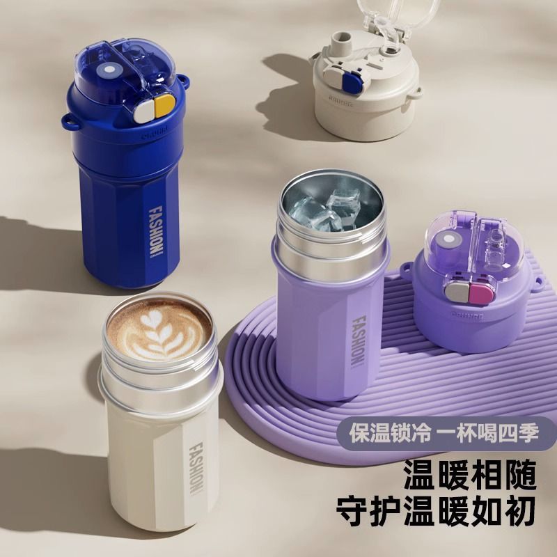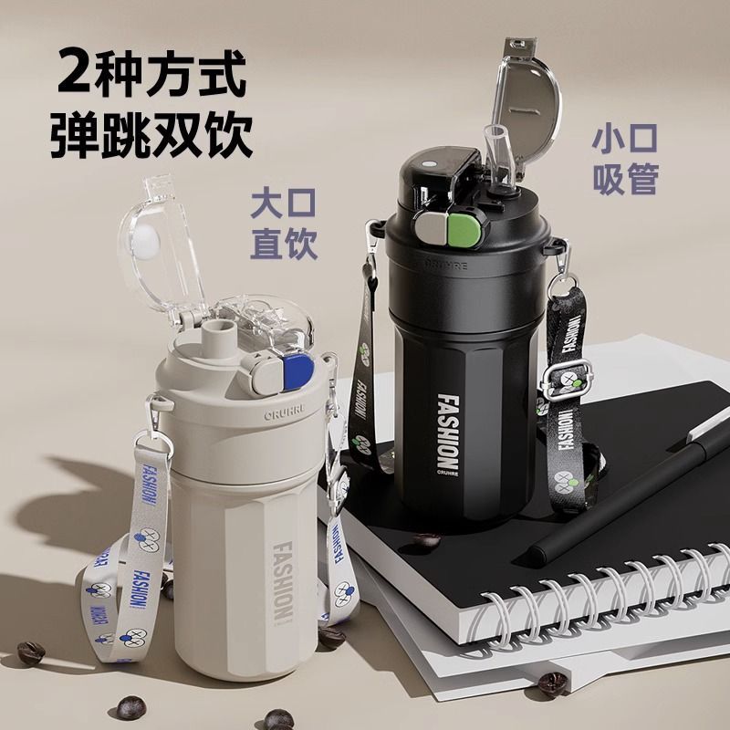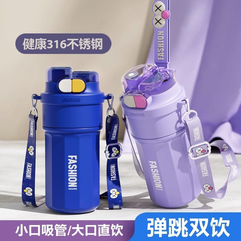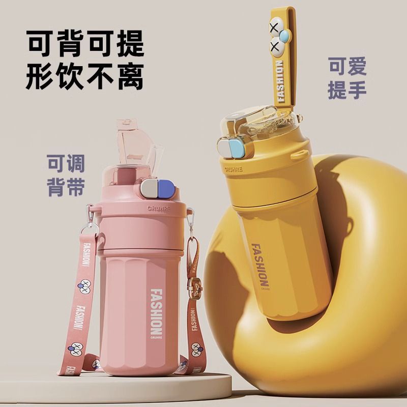 保温杯水杯男女生高颜值便携可背双饮学生吸管316不锈钢新款杯子