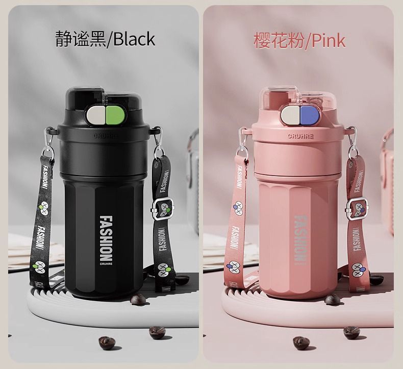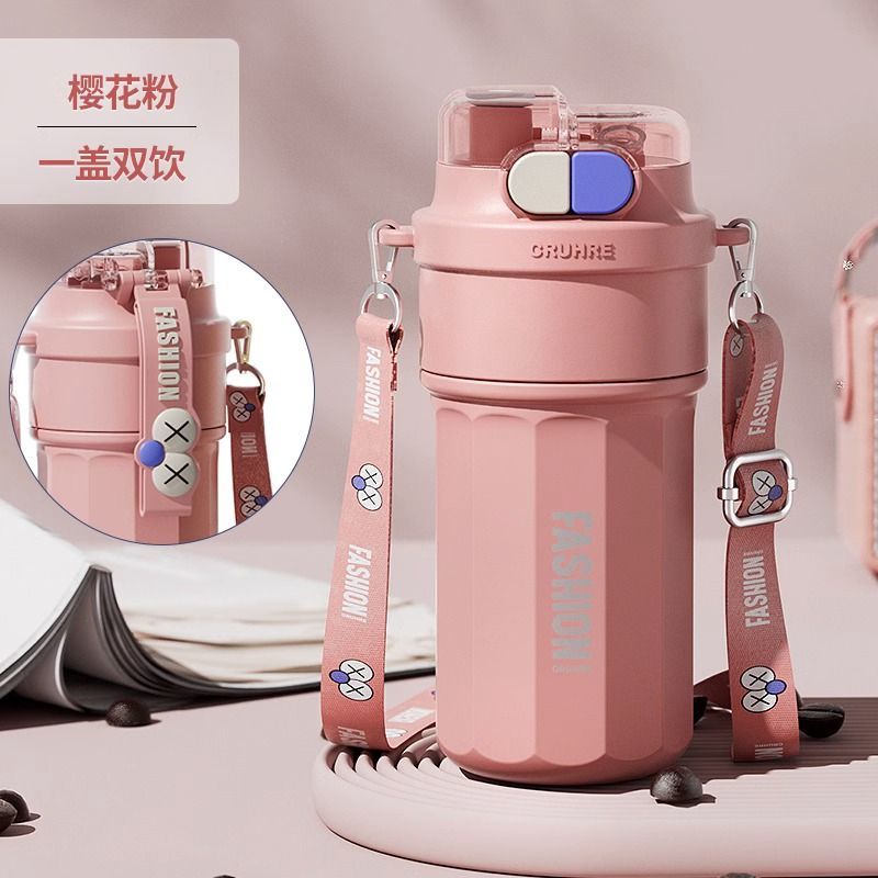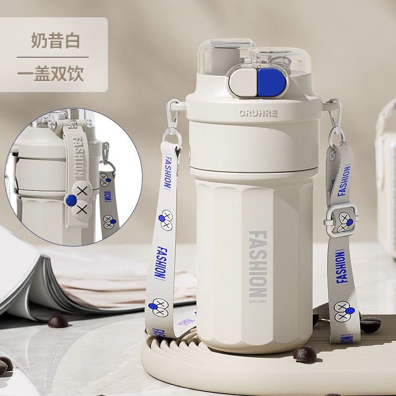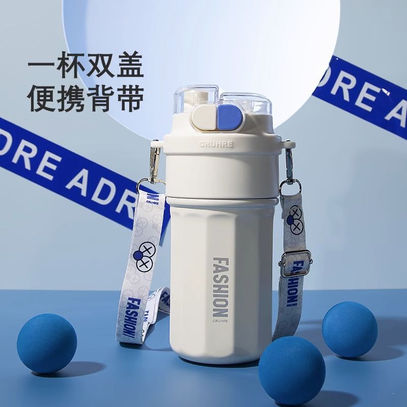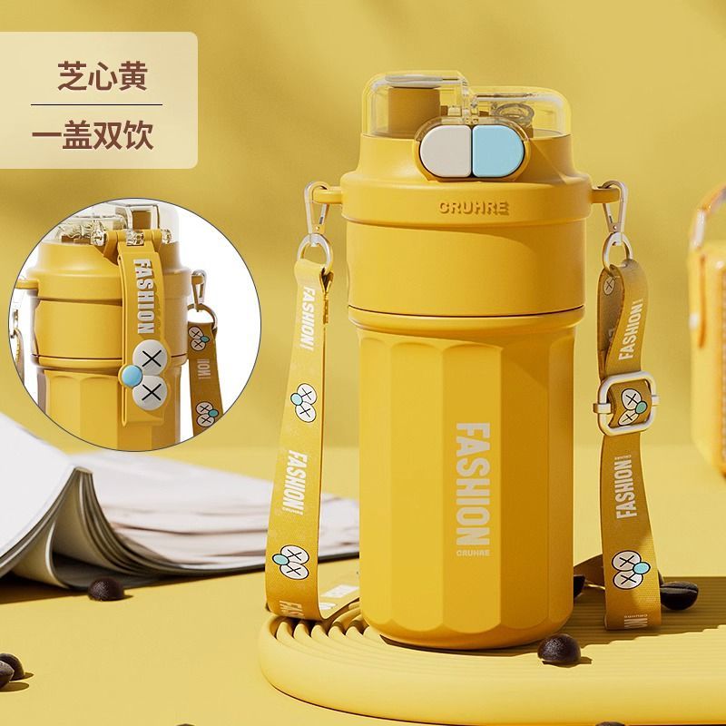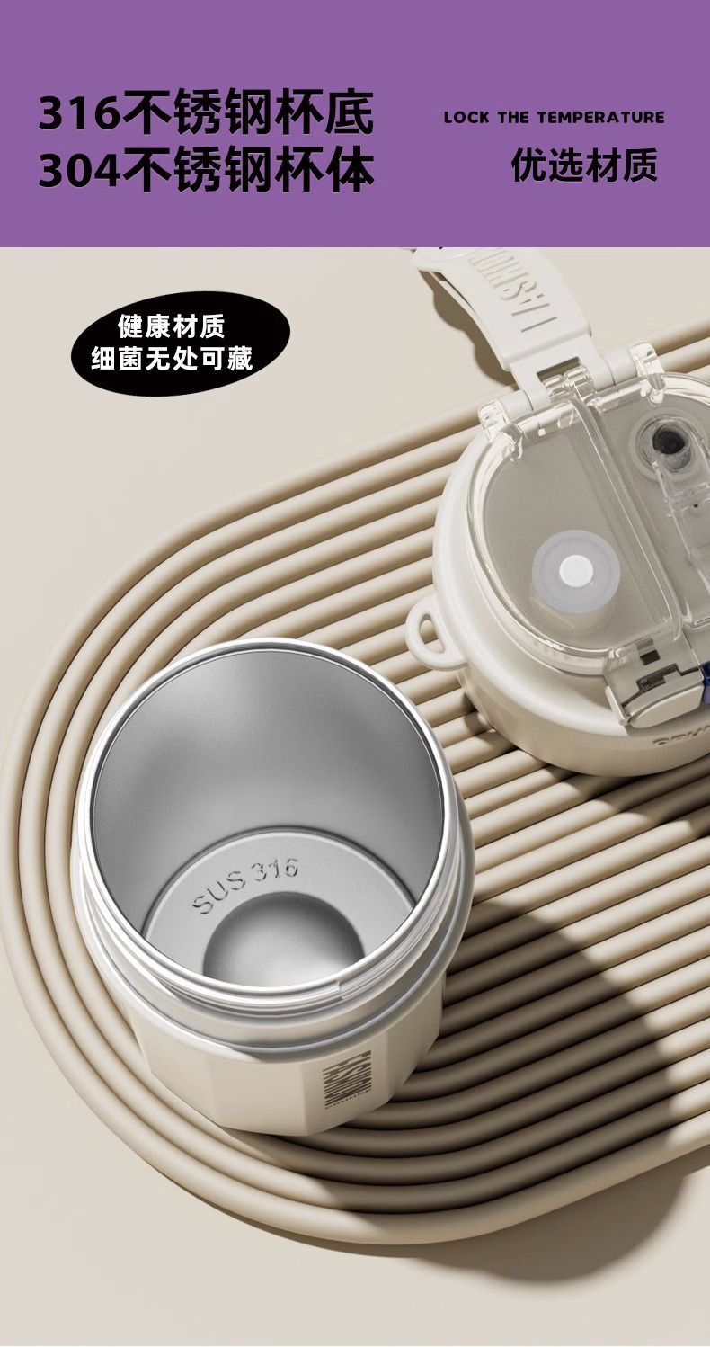 保温杯水杯男女生高颜值便携可背双饮学生吸管316不锈钢新款杯子