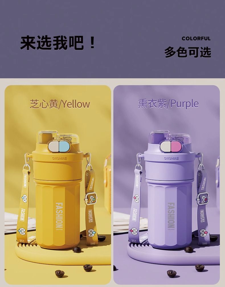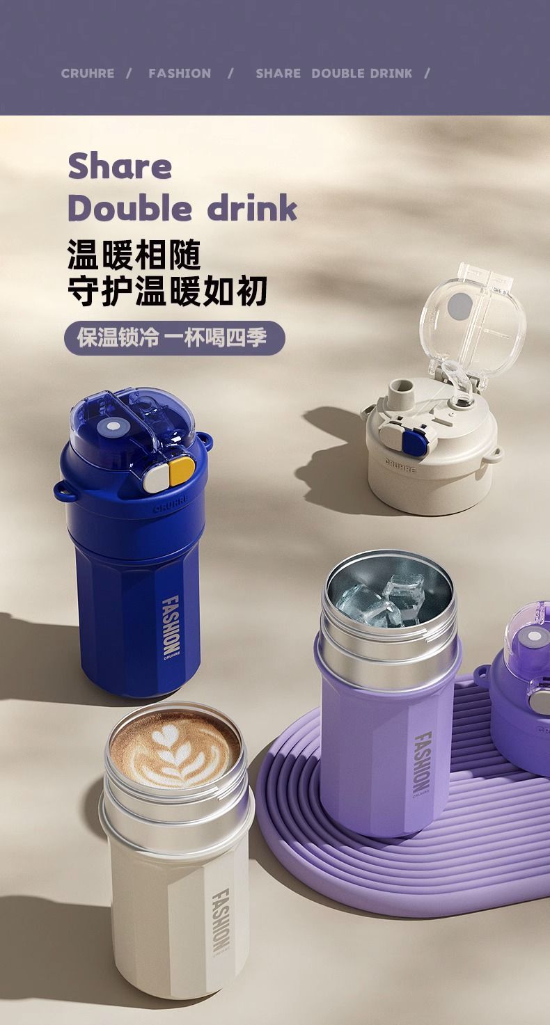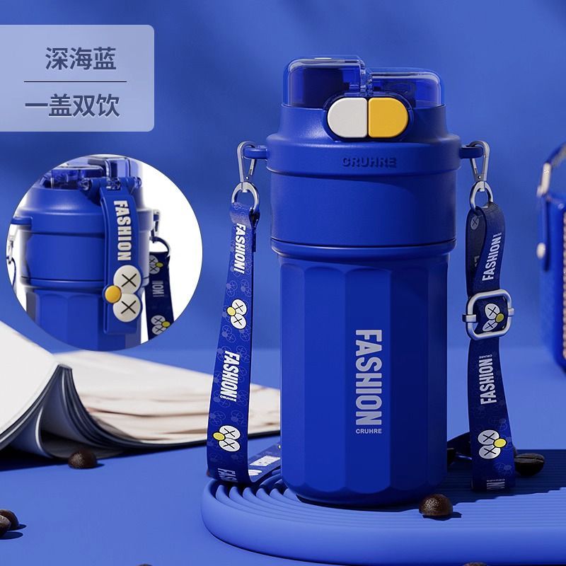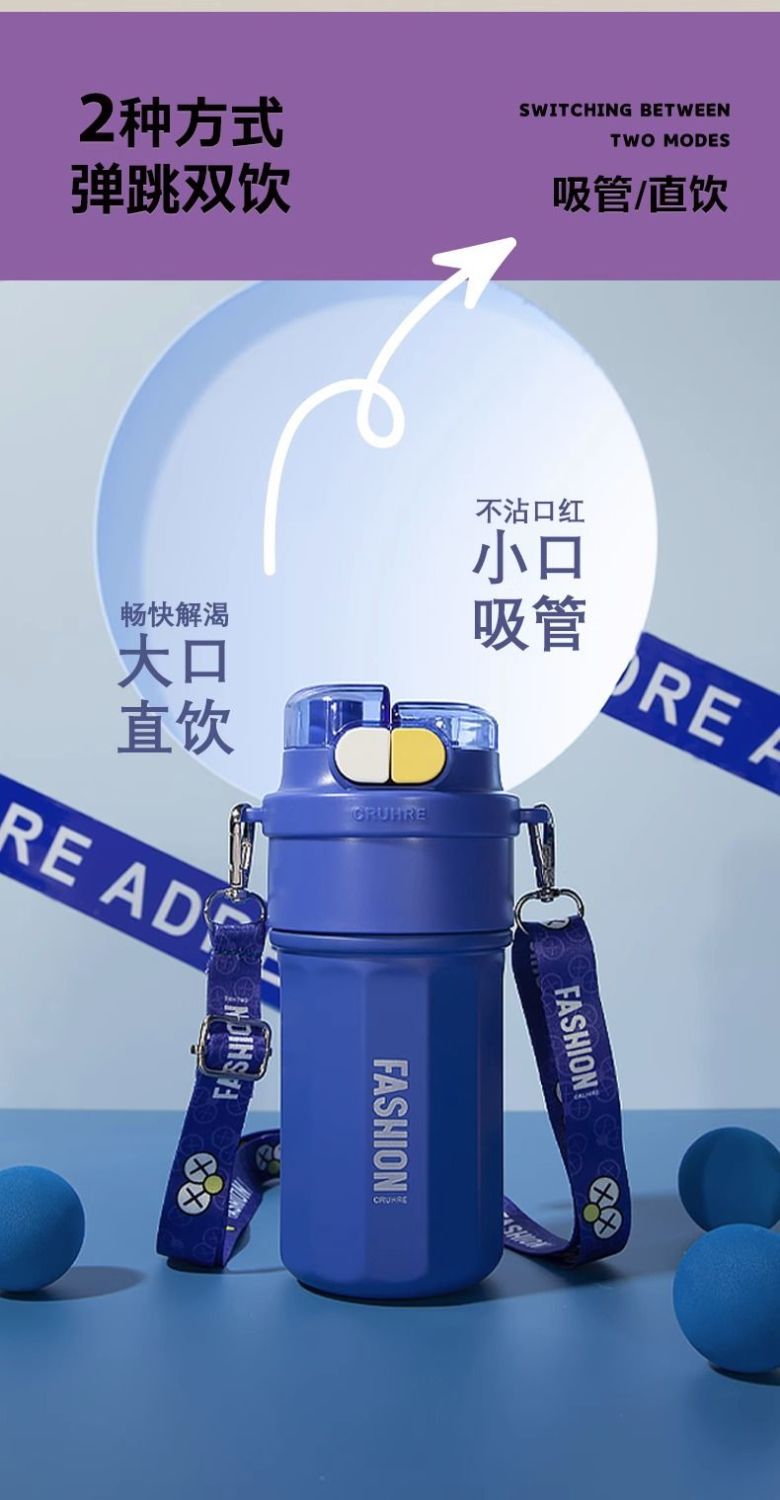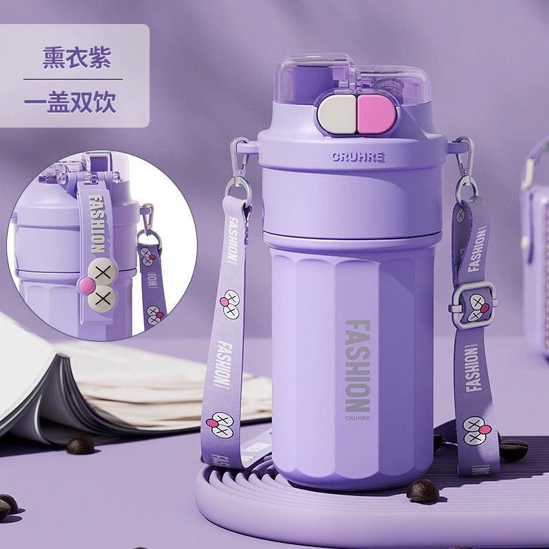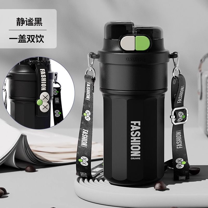 保温杯水杯男女生高颜值便携可背双饮学生吸管316不锈钢新款杯子