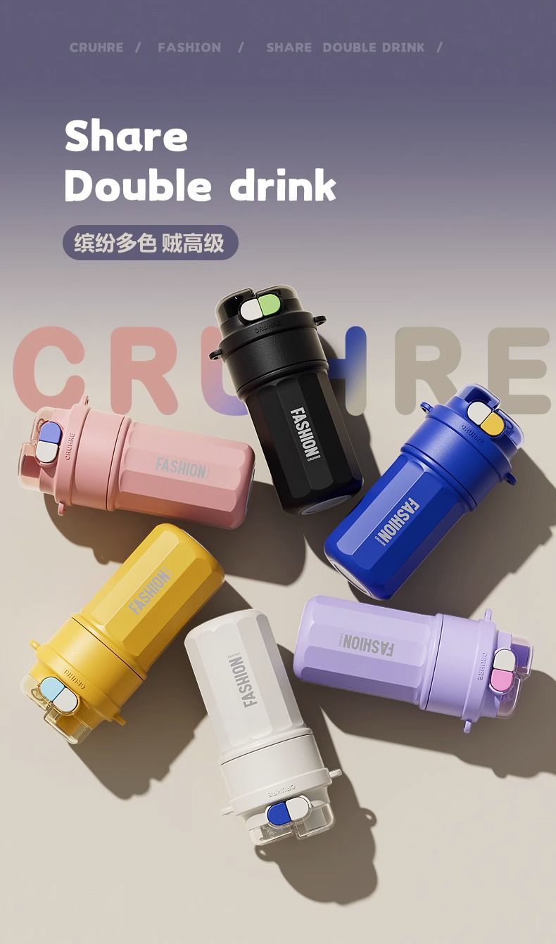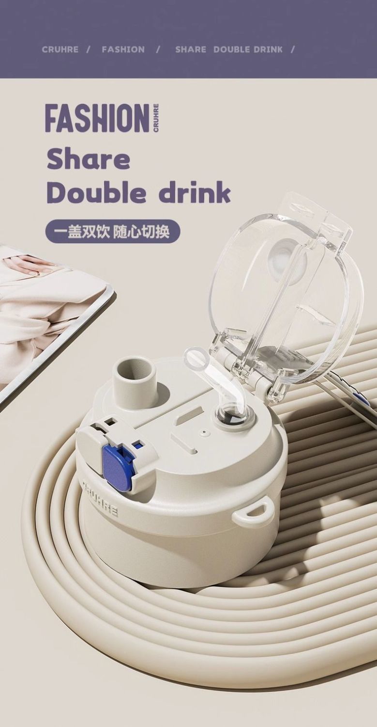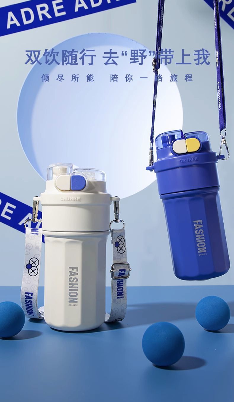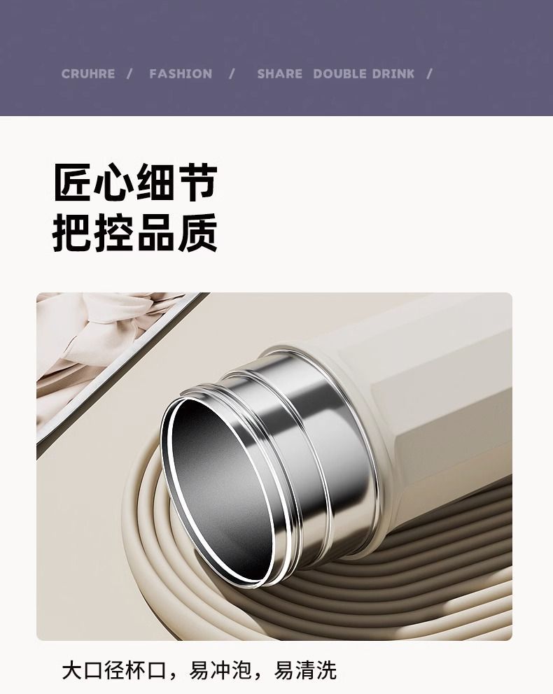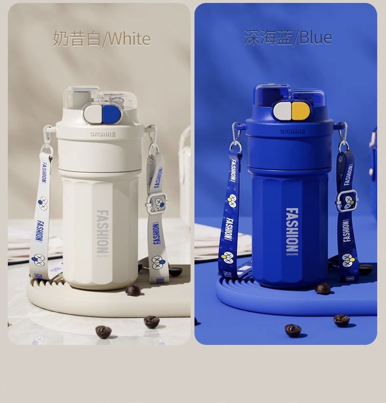 保温杯水杯男女生高颜值便携可背双饮学生吸管316不锈钢新款杯子