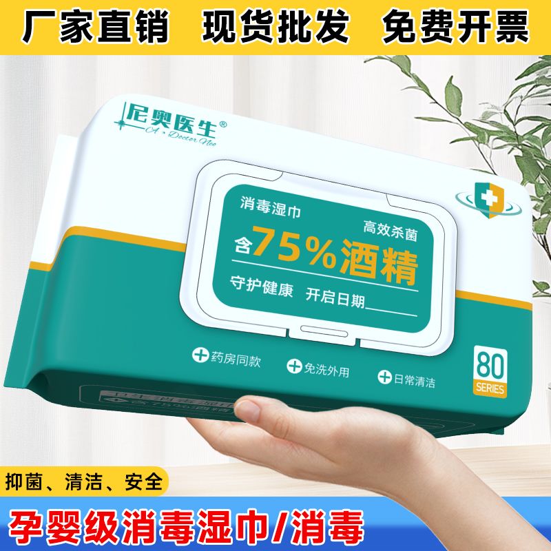 酒精湿巾75度大包湿纸巾家用消毒湿巾80抽卫生清洁湿巾纸加大加厚