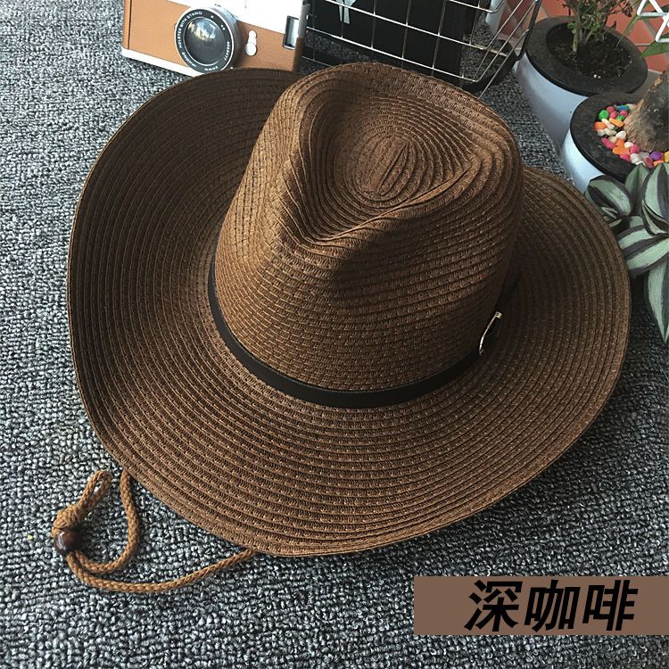 牛仔帽子男西班牙草帽女夏天出游防晒大沿遮阳帽可折叠编织沙滩帽