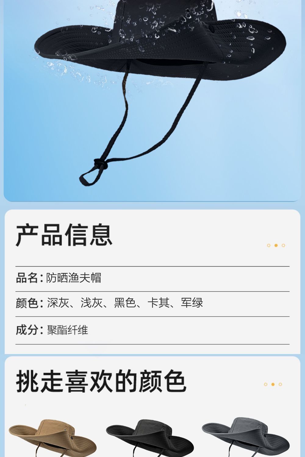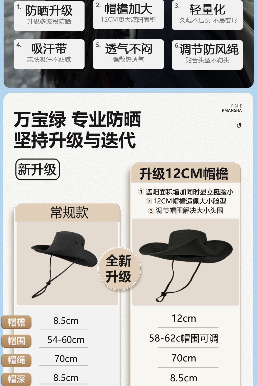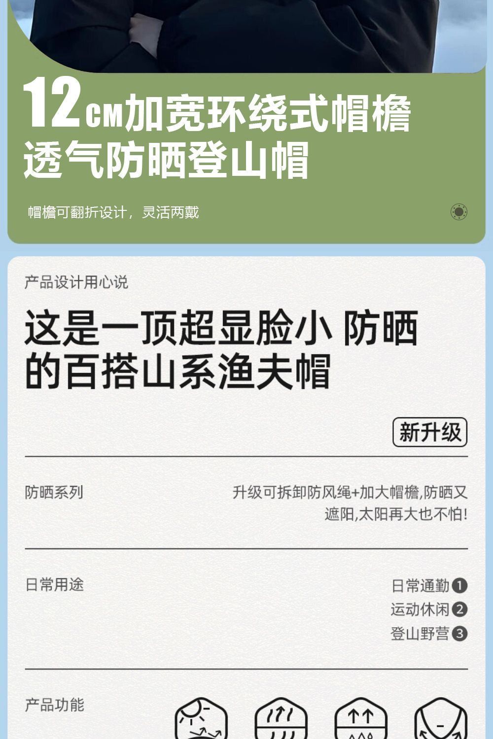 登山帽防晒牛仔夏季帽子渔夫帽爬山钓鱼遮阳户外男太阳遮阳帽徒步
