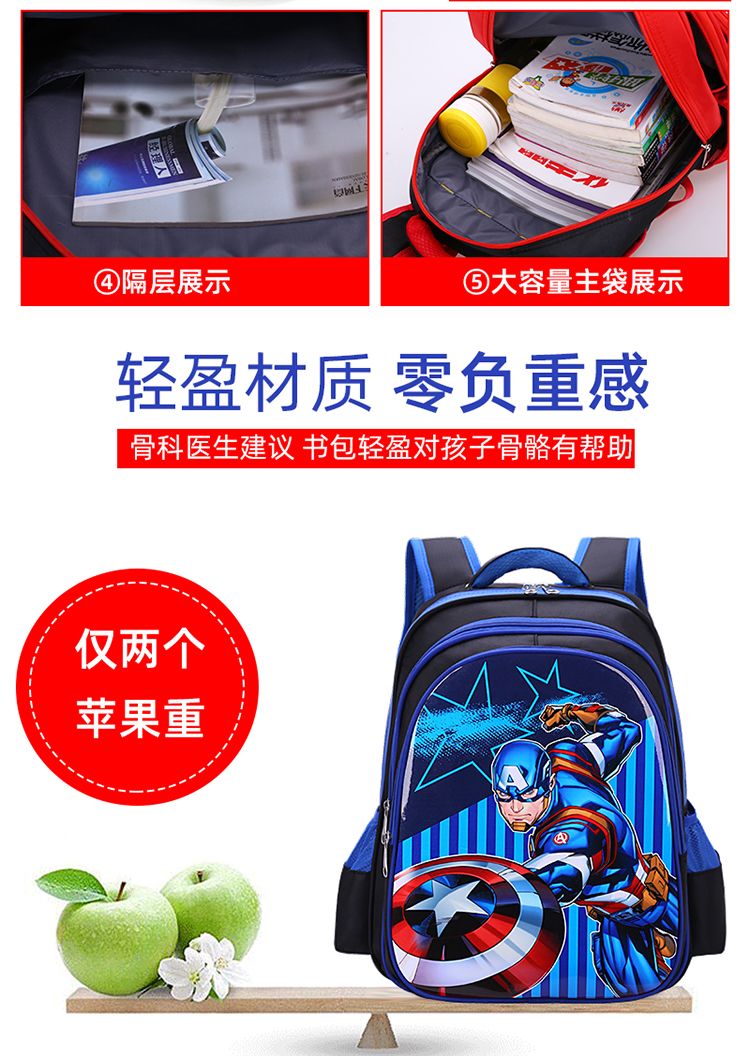 小学生书包男孩一三六年级背包蜘蛛侠儿童书包幼儿园美国队长书包