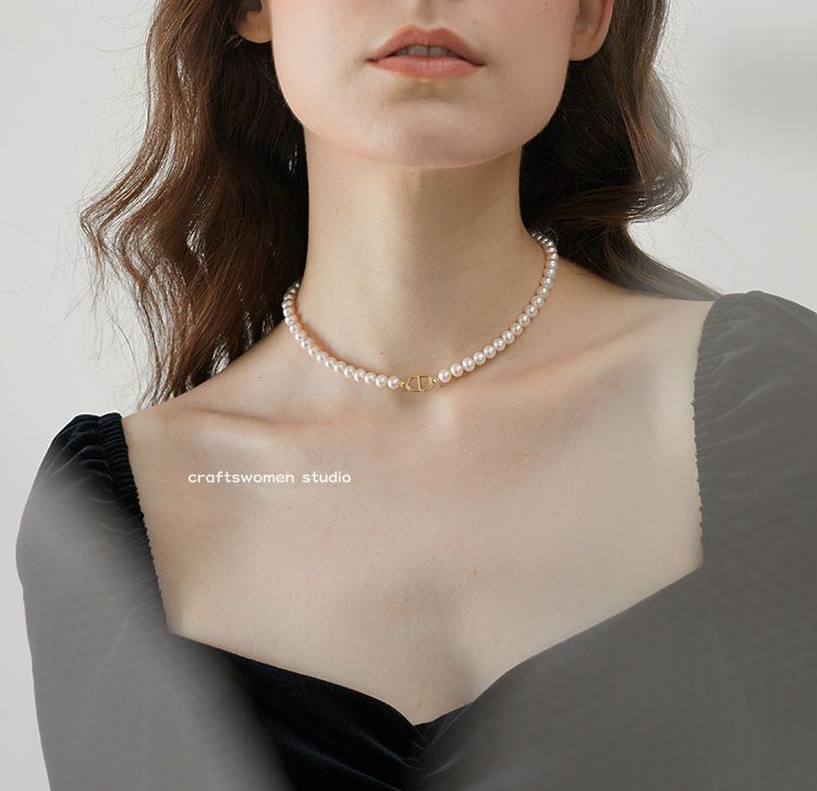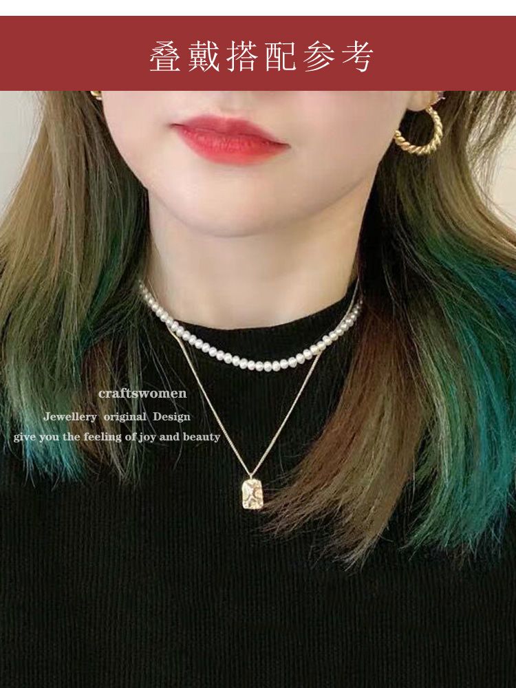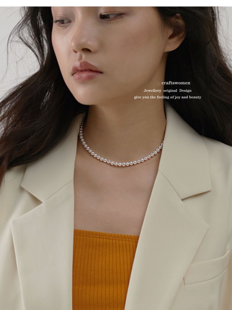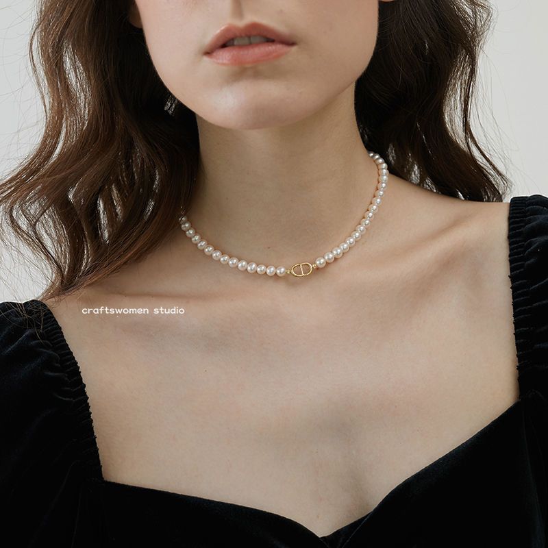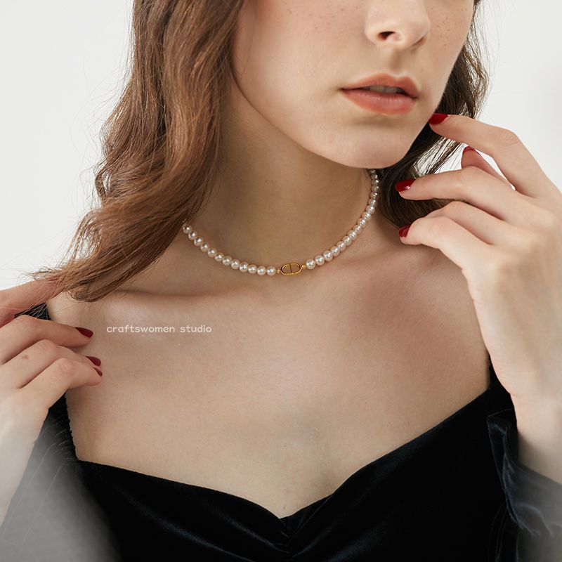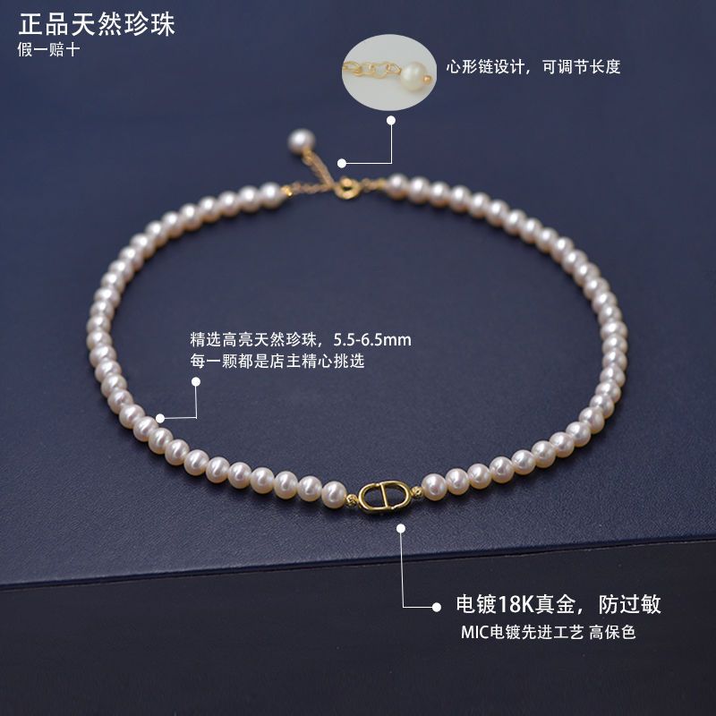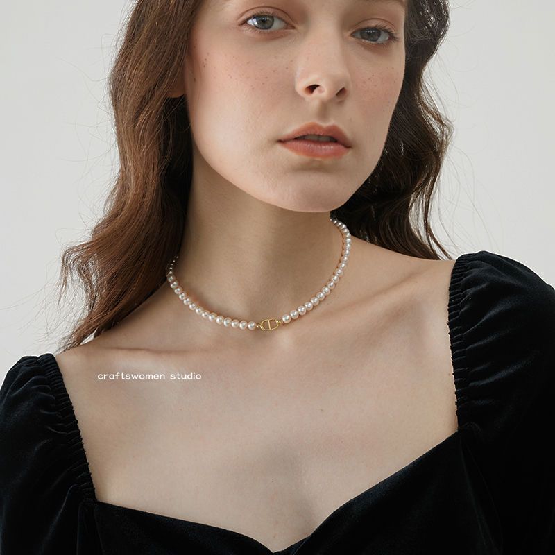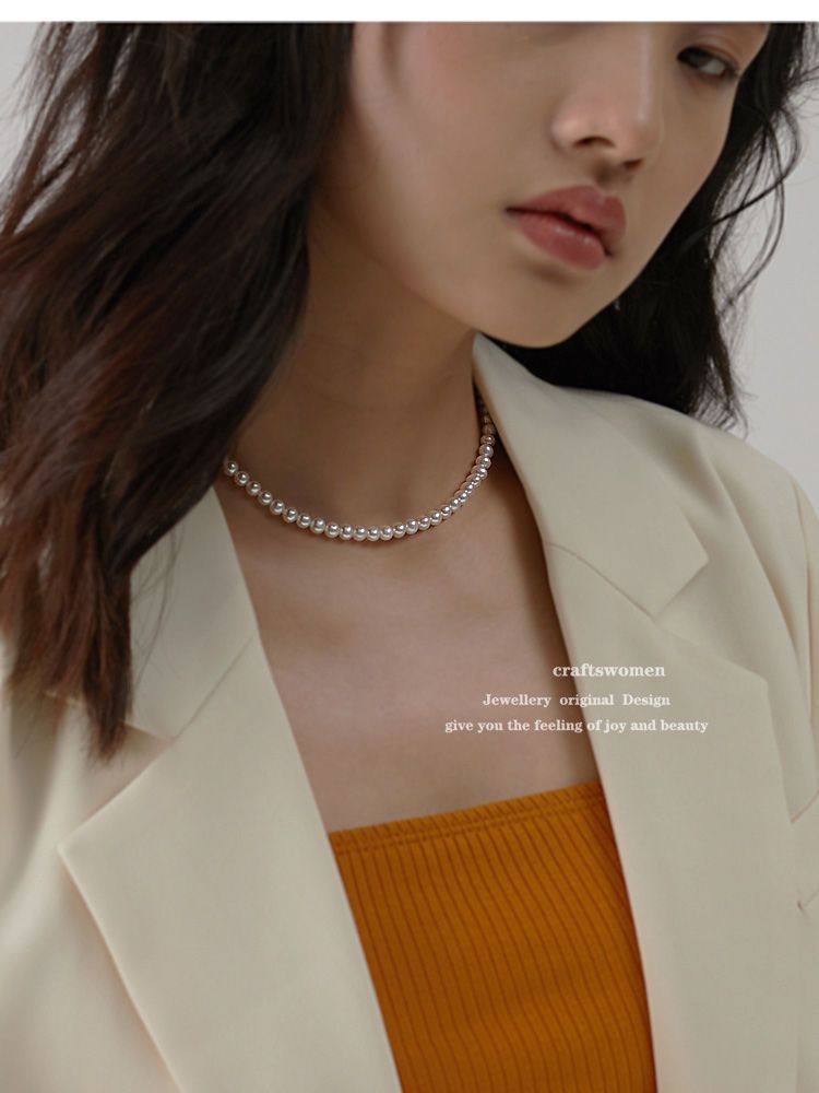 强光天然淡水珍珠项链女近正圆无暇珍珠复古锁骨链S925不掉色劲链