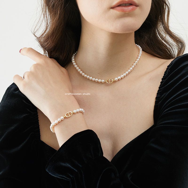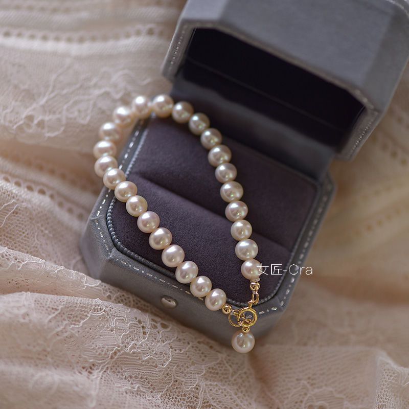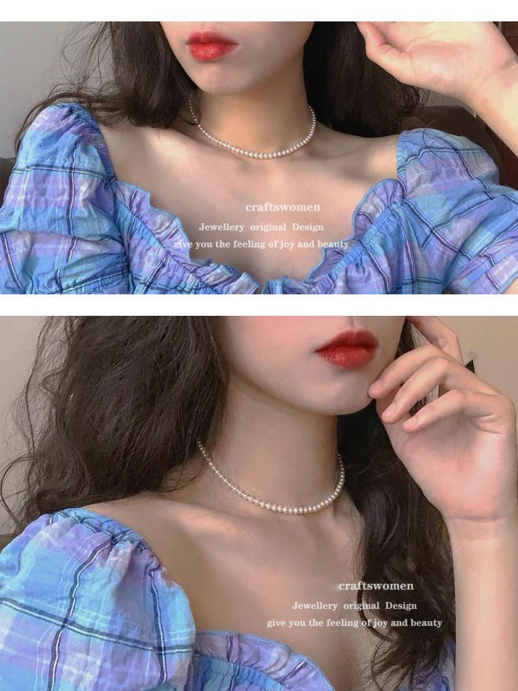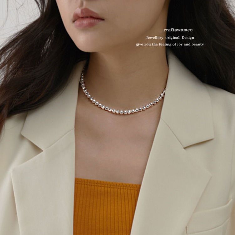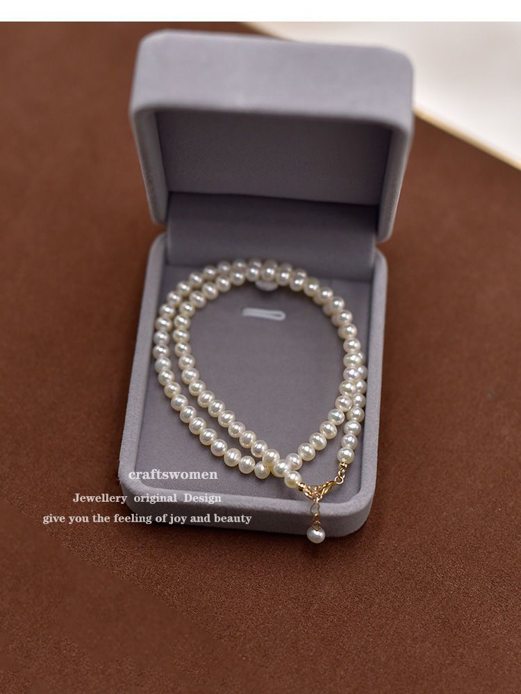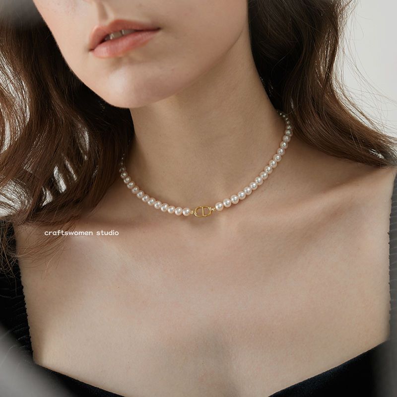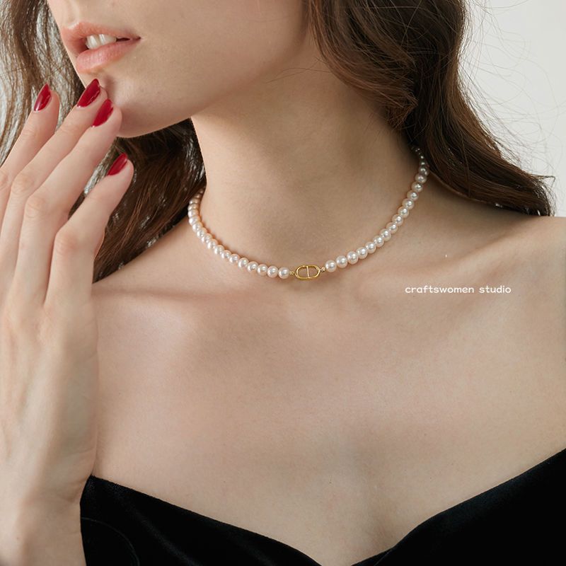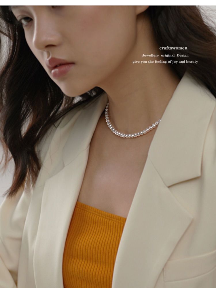 强光天然淡水珍珠项链女近正圆无暇珍珠复古锁骨链S925不掉色劲链