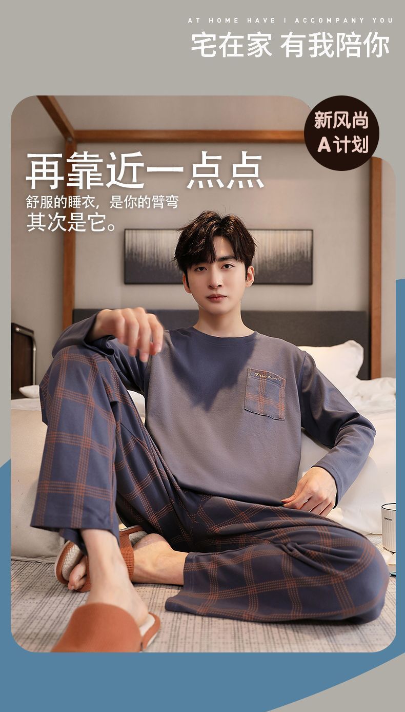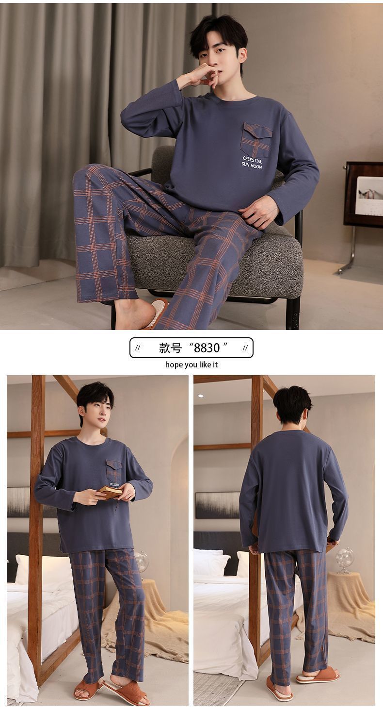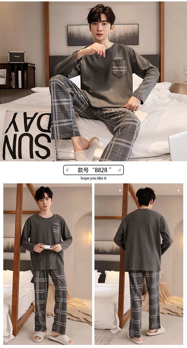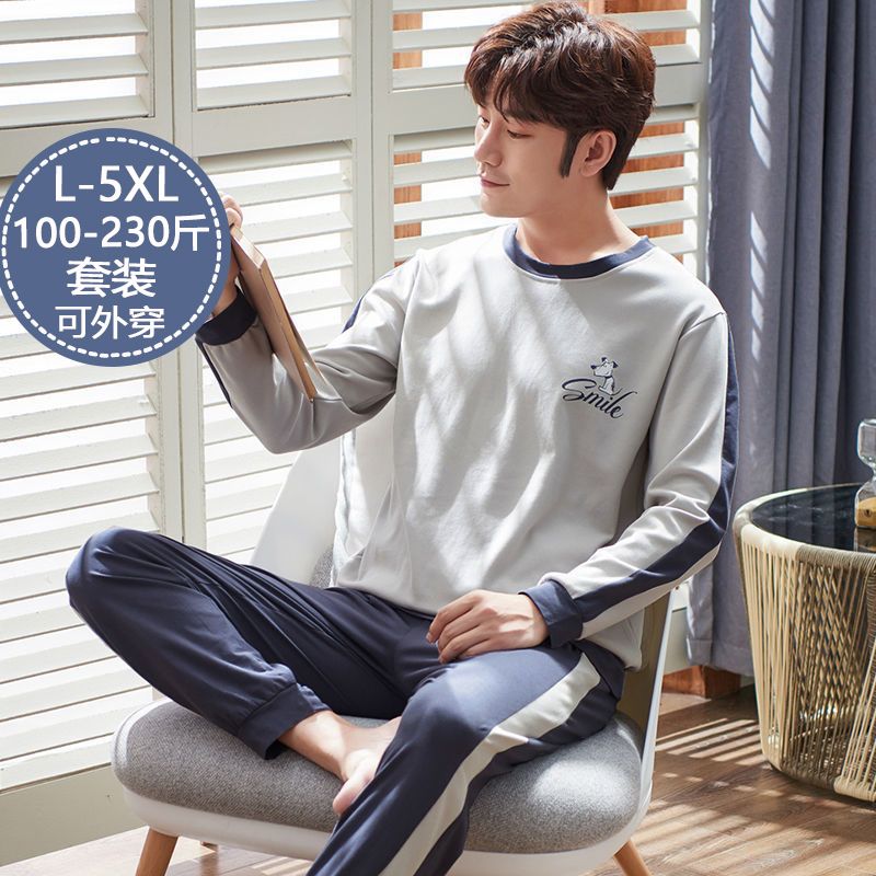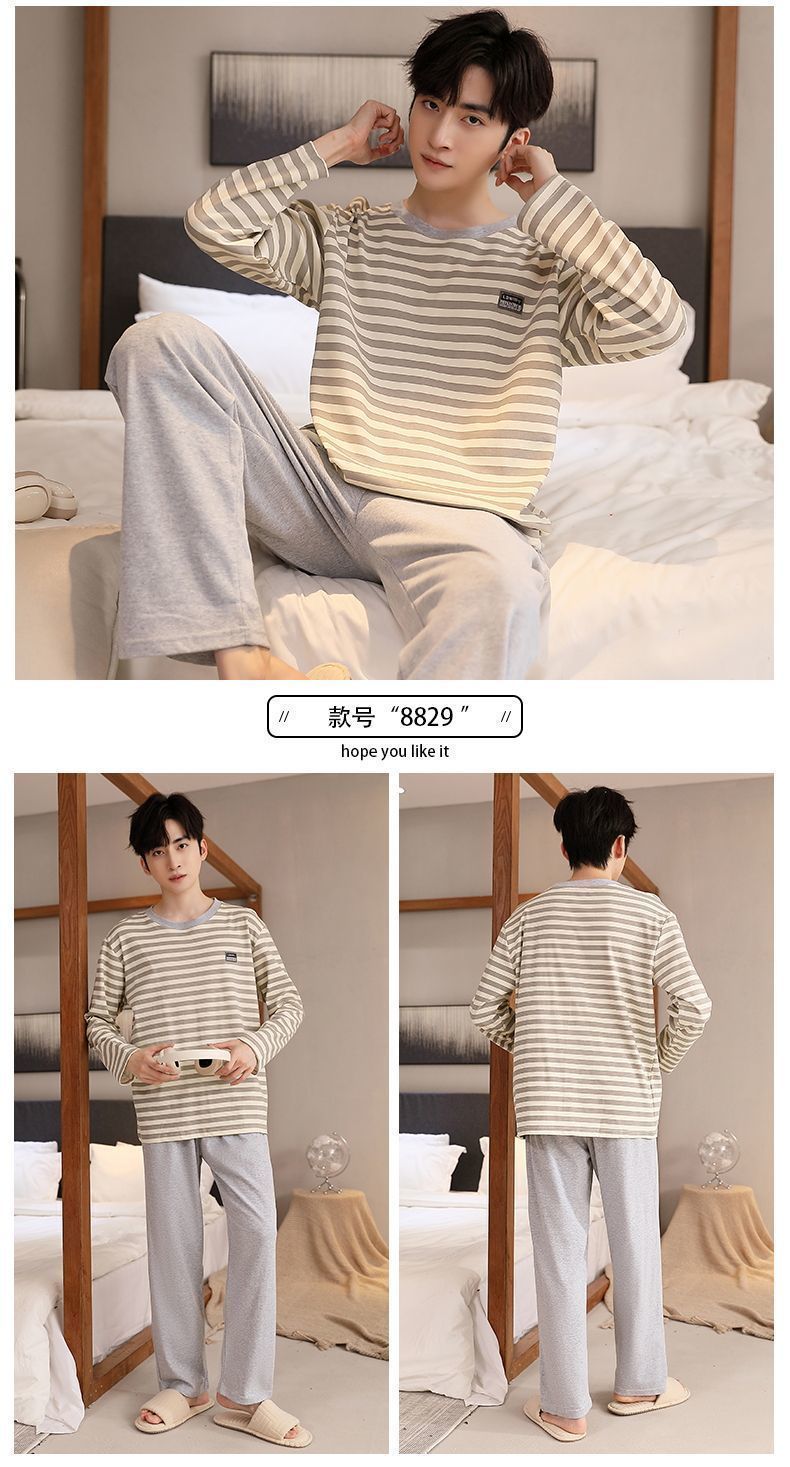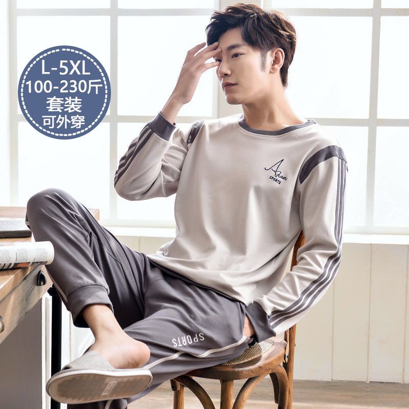100%双面棉男士睡衣春秋款长袖纯棉青年大码可外穿宽松家居服套装