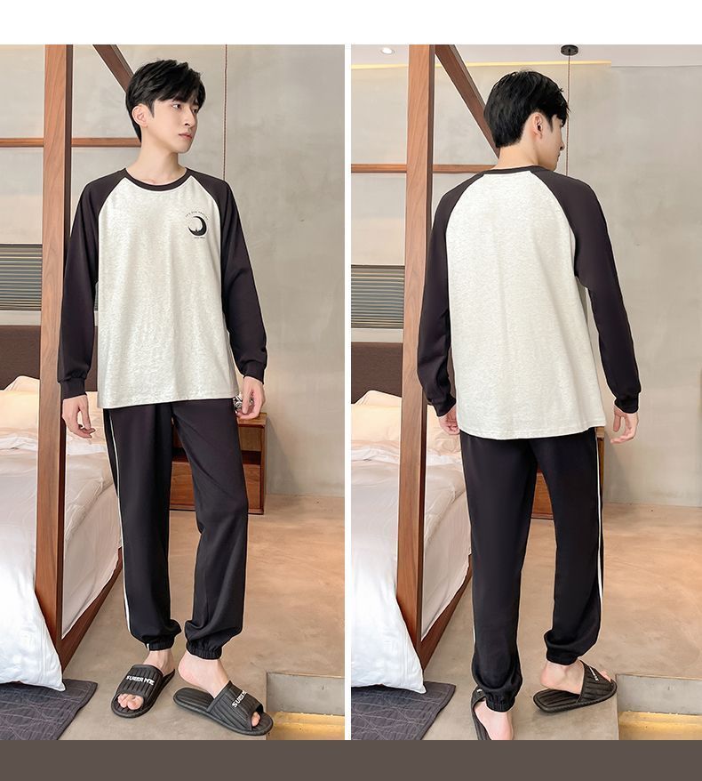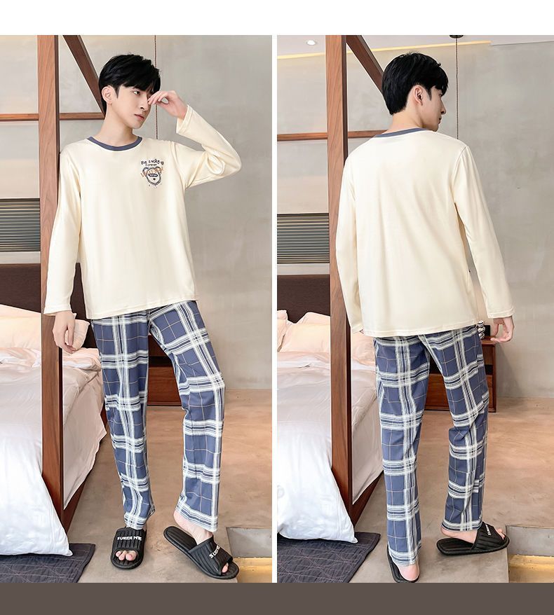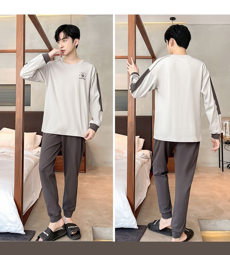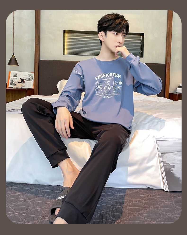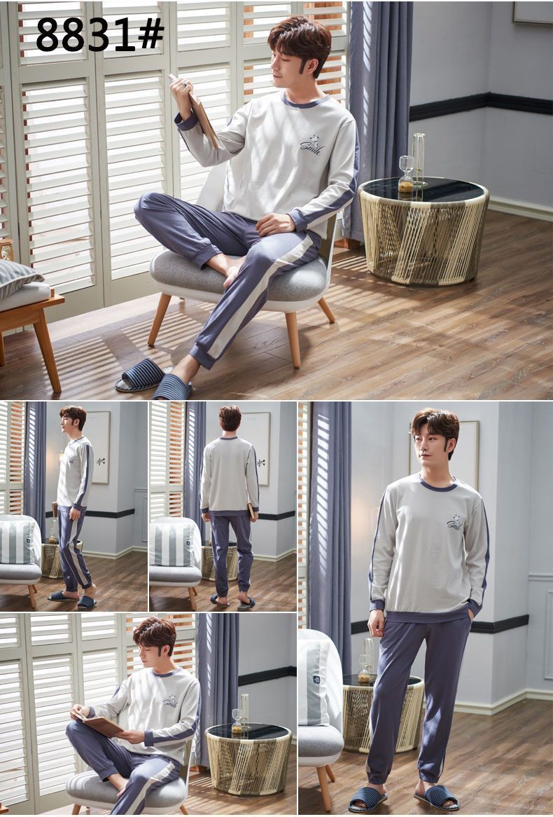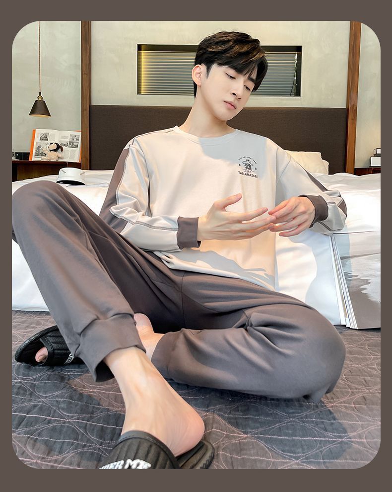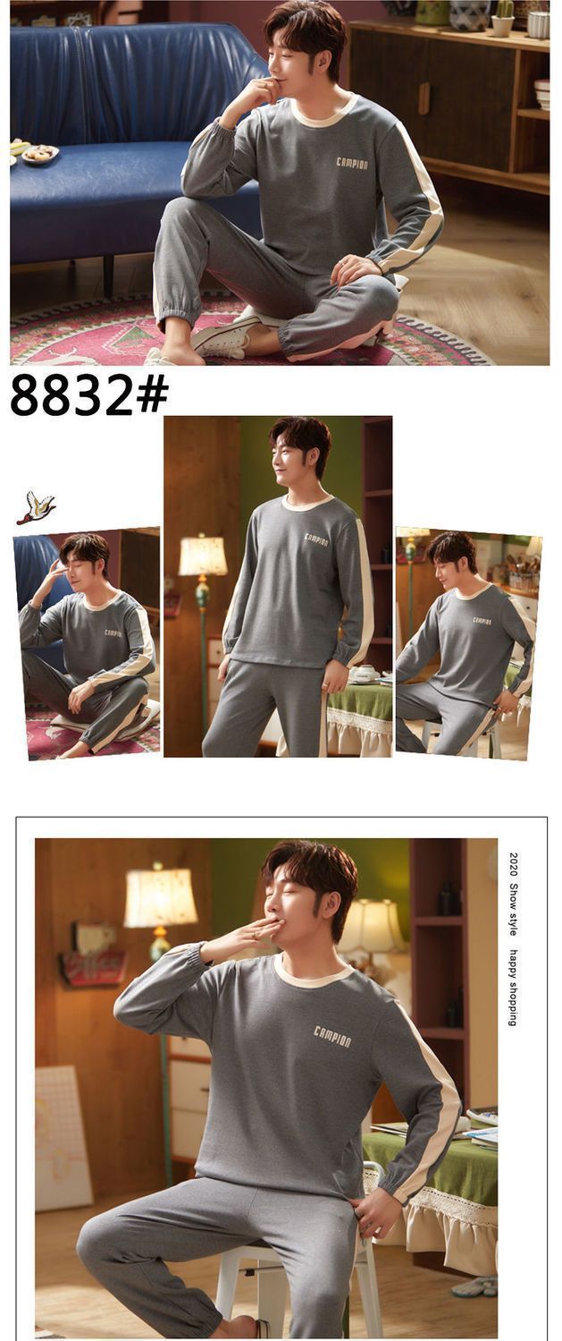 100%双面棉男士睡衣春秋款长袖纯棉青年大码可外穿宽松家居服套装