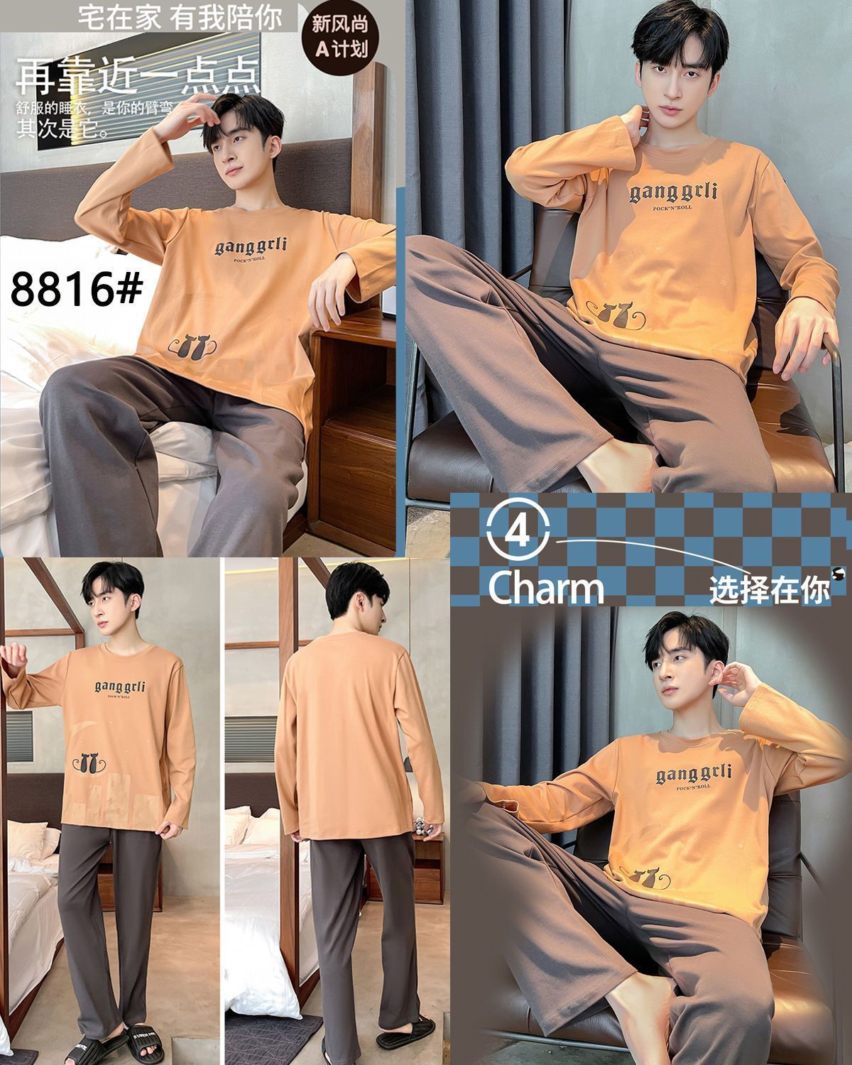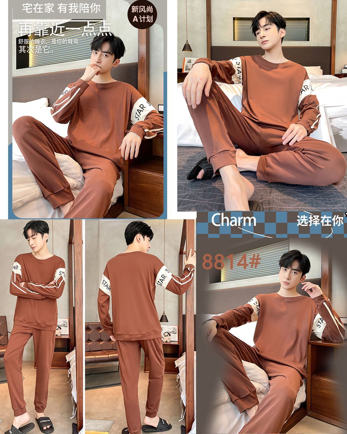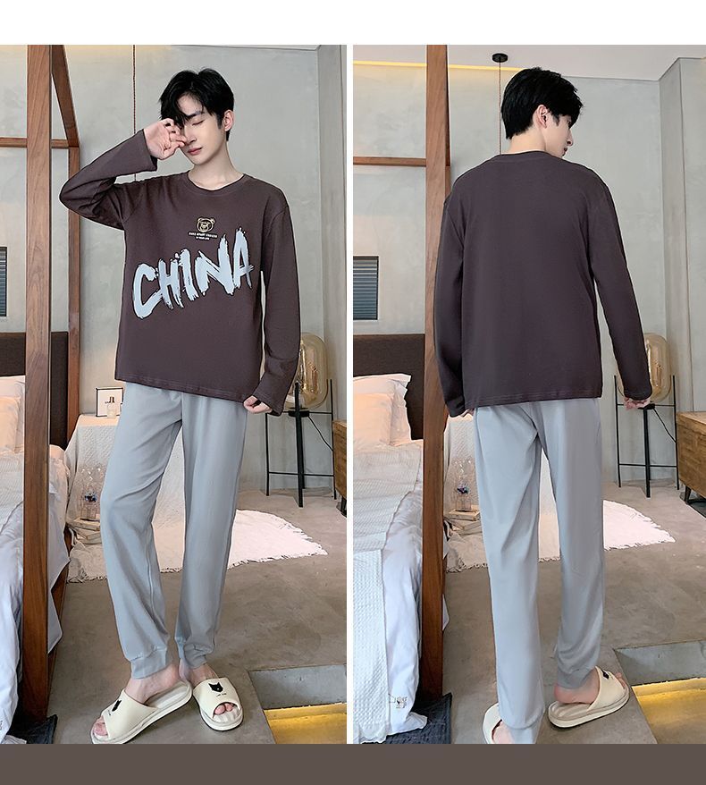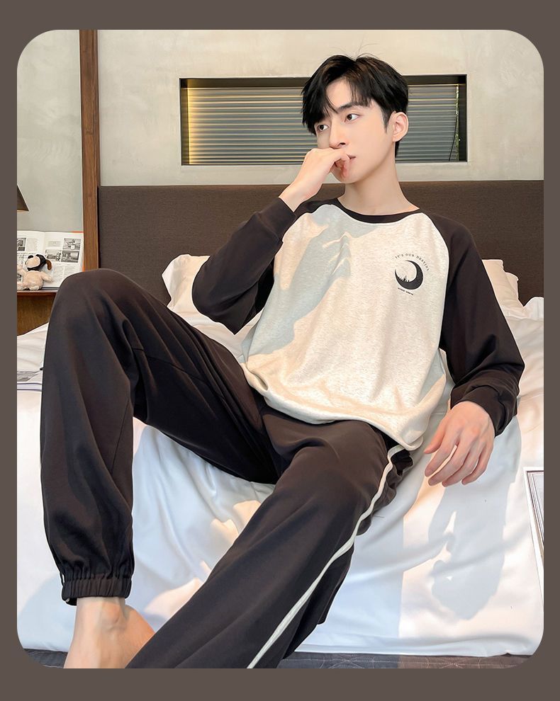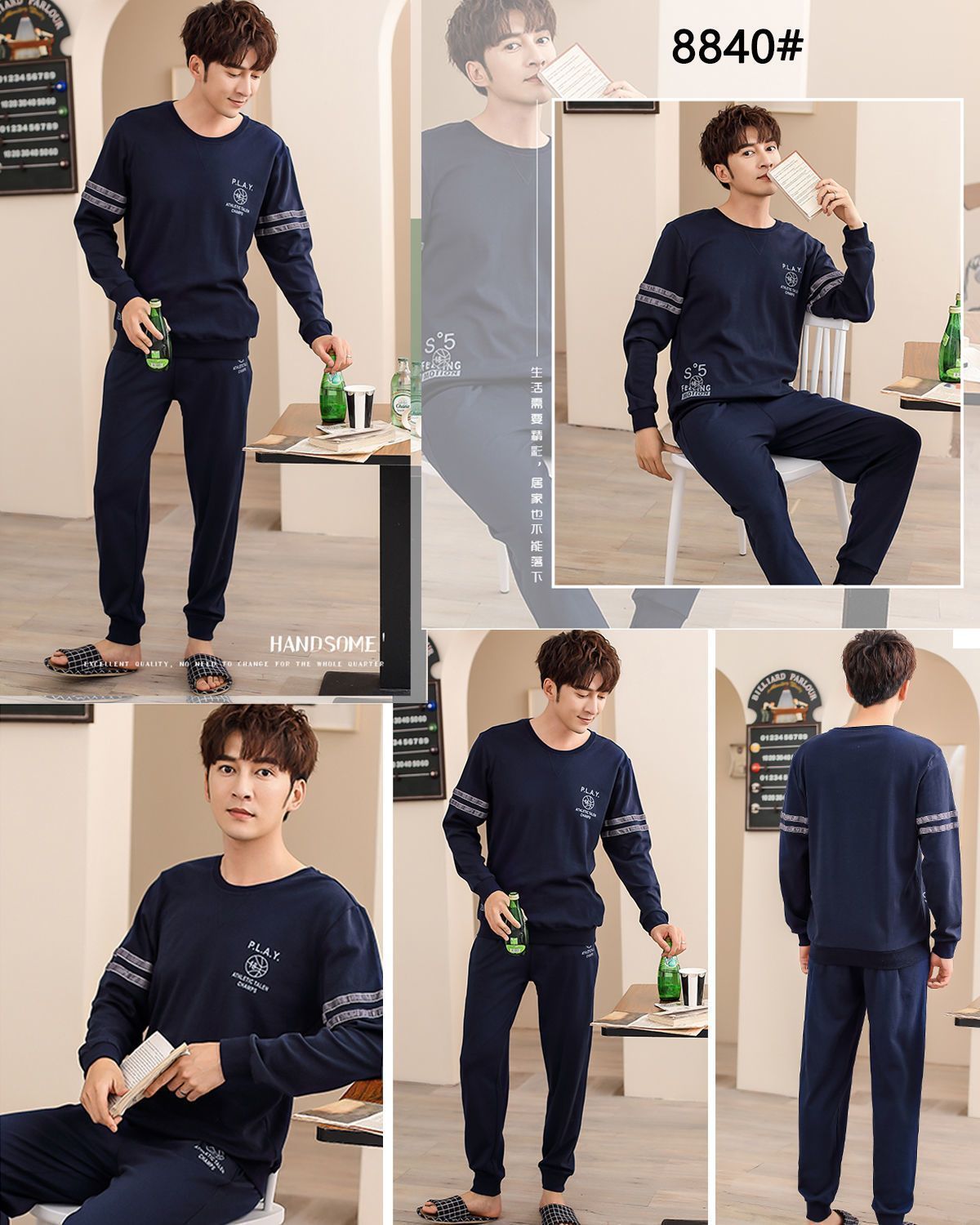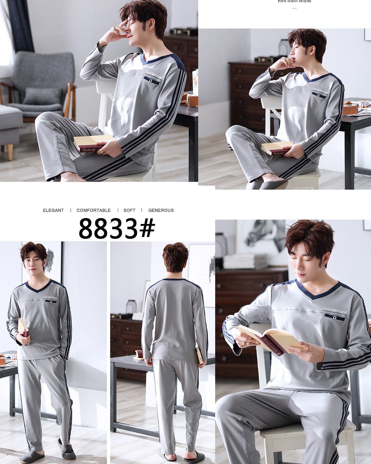 100%双面棉男士睡衣春秋款长袖纯棉青年大码可外穿宽松家居服套装
