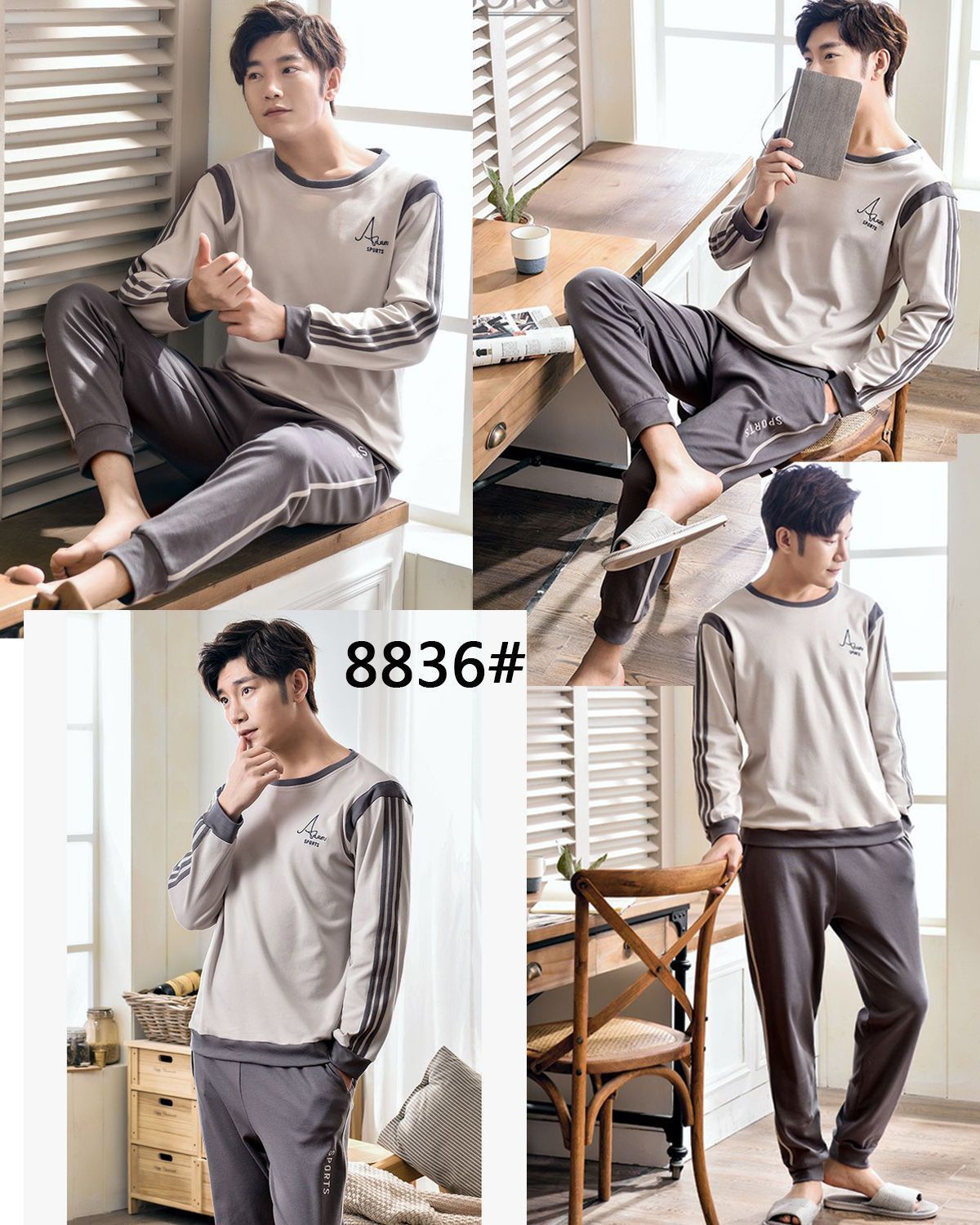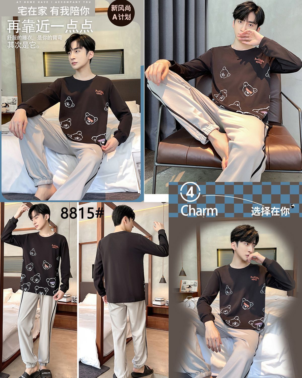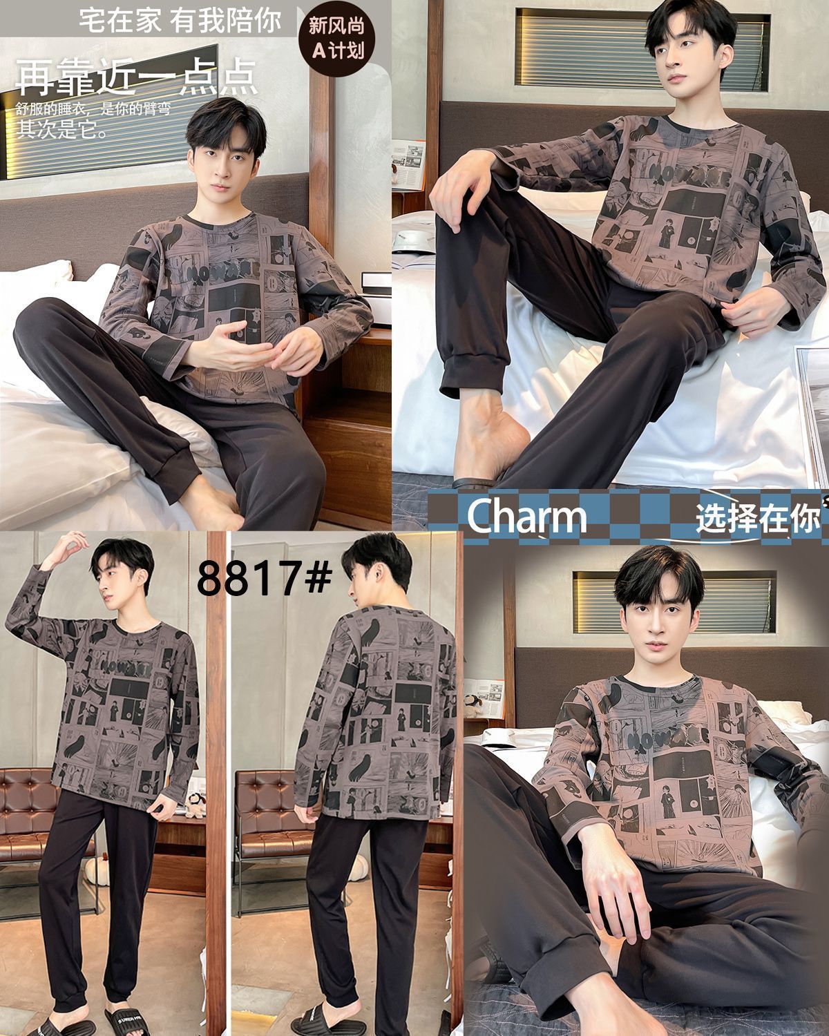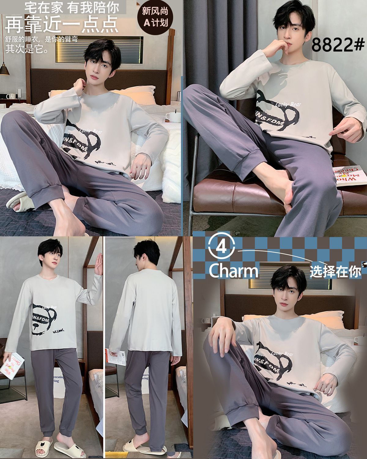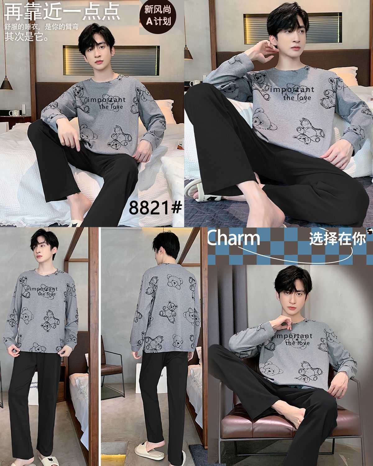 100%双面棉男士睡衣春秋款长袖纯棉青年大码可外穿宽松家居服套装