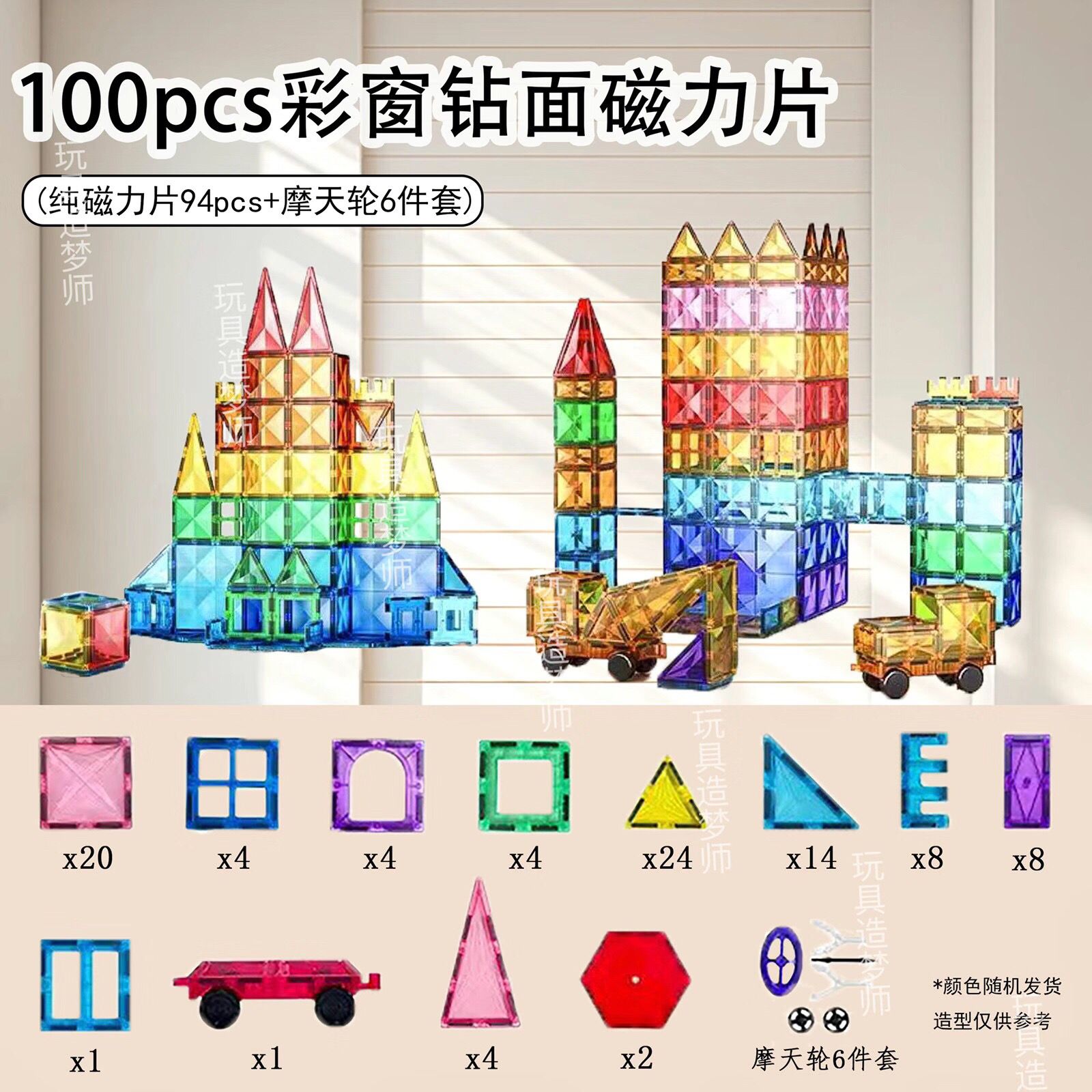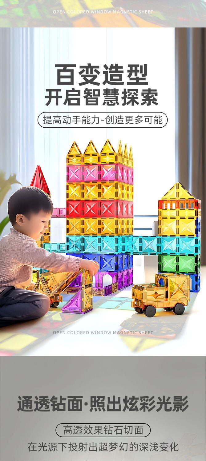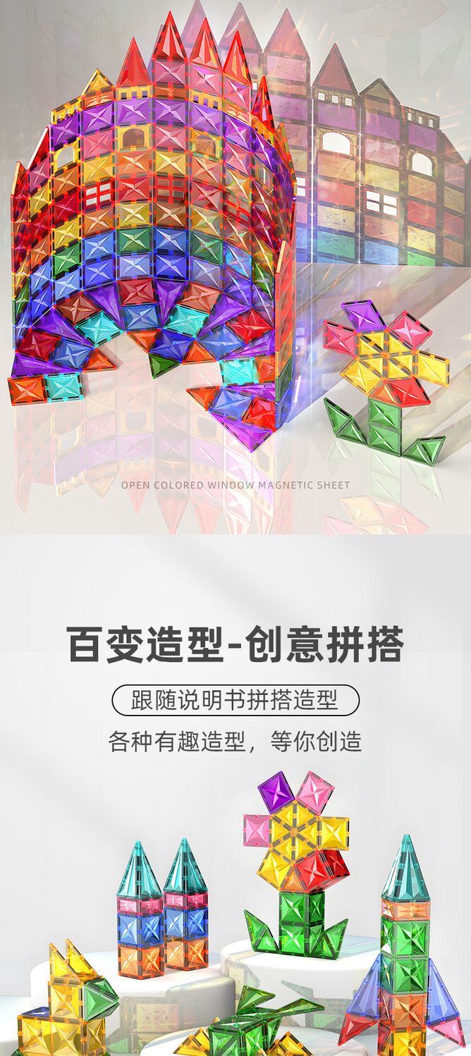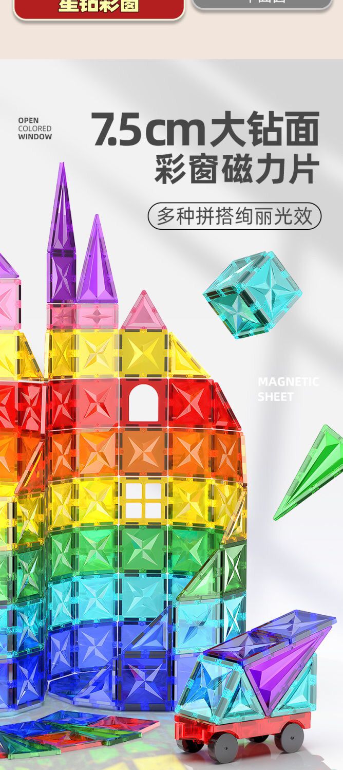 钻面大号彩窗磁力儿童益智玩具拼装磁性积木百变强磁礼物宝宝城堡