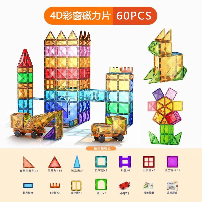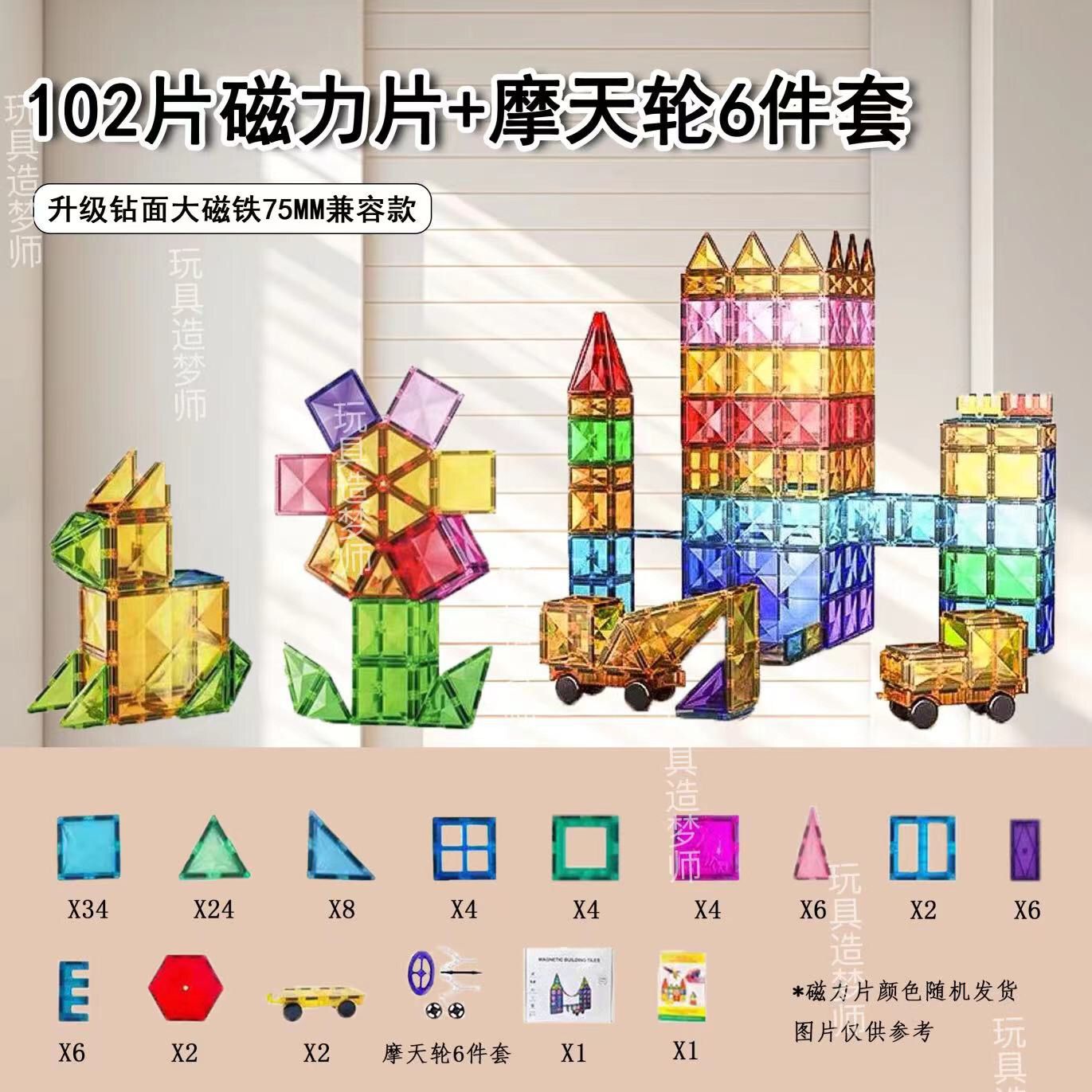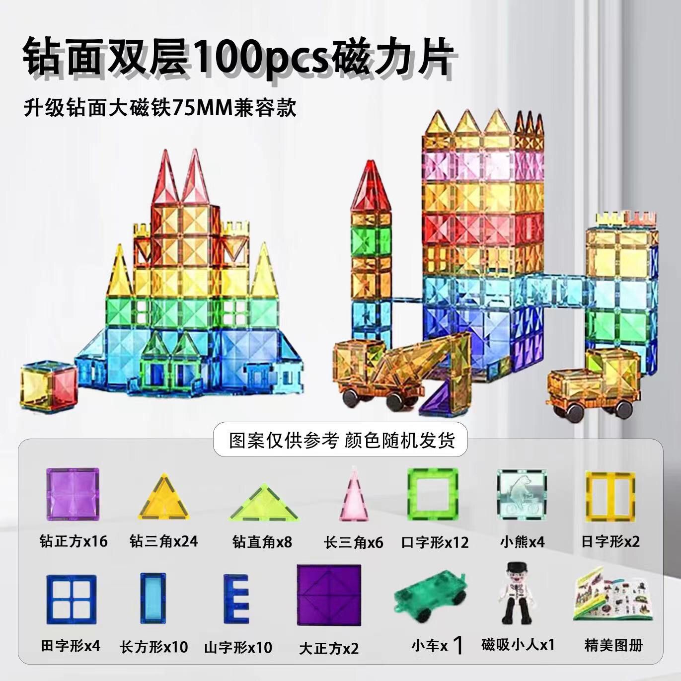 钻面大号彩窗磁力儿童益智玩具拼装磁性积木百变强磁礼物宝宝城堡