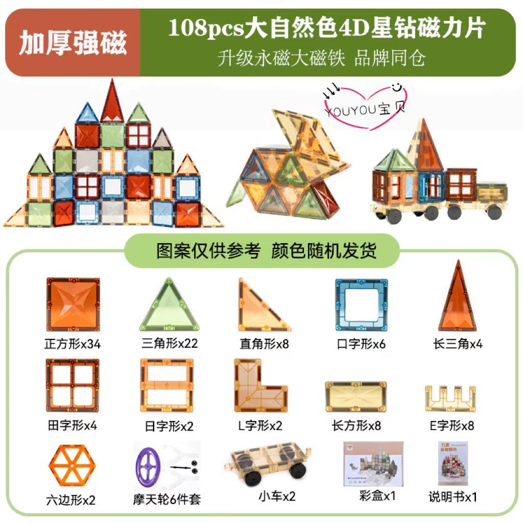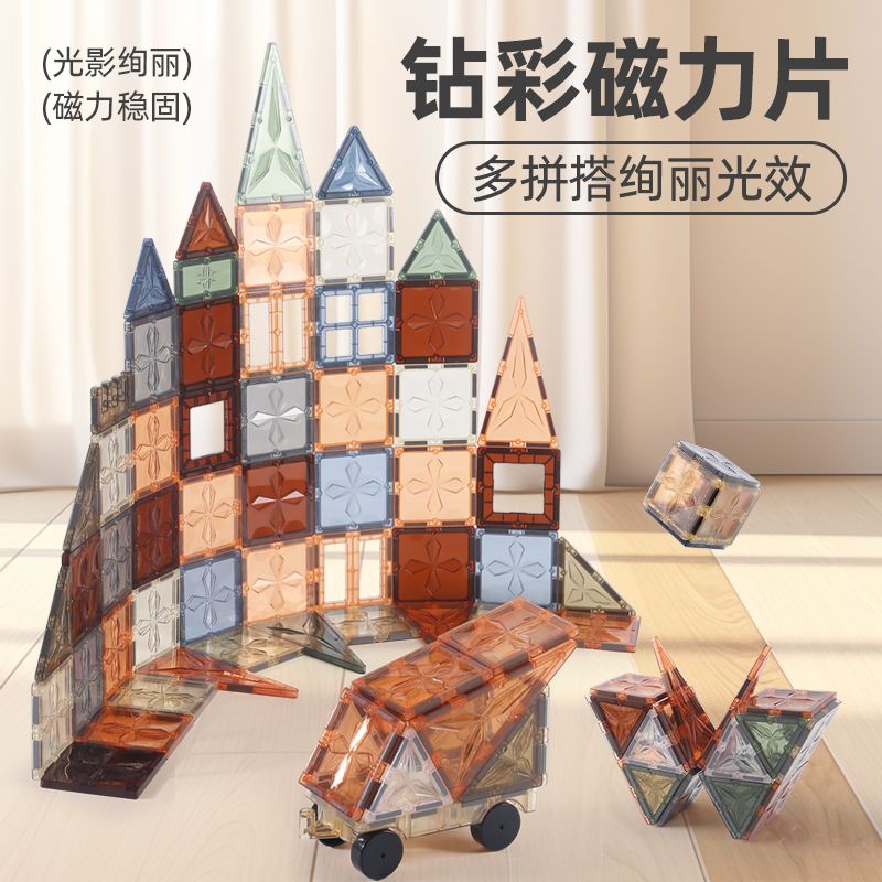 大号彩窗大自然强磁磁力片彩窗磁力片散片星钻钻面百变拼玩具