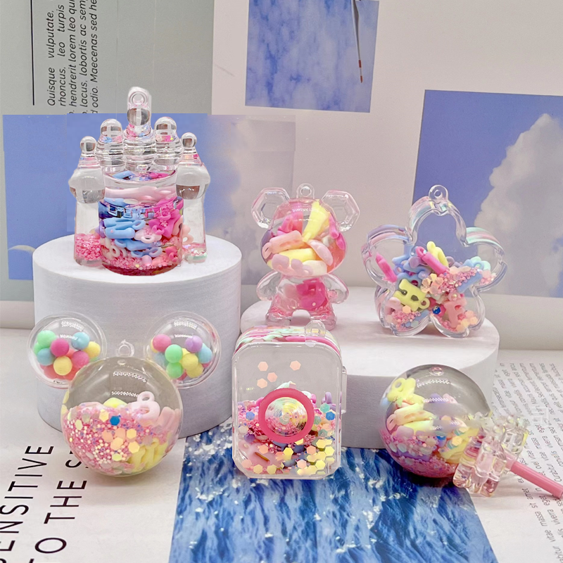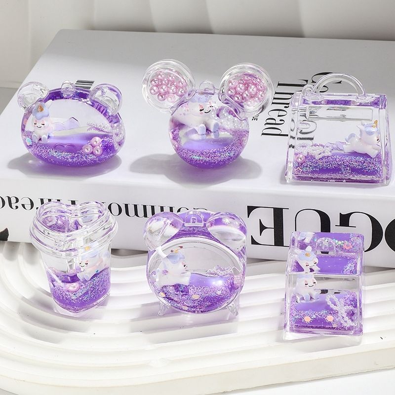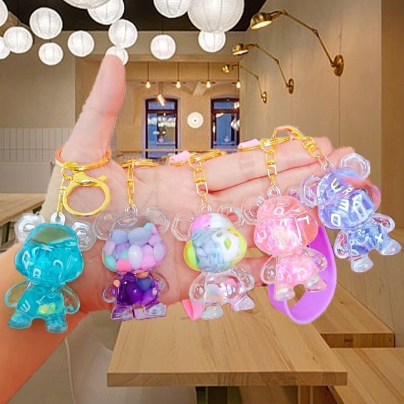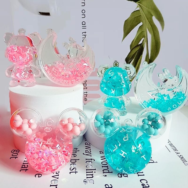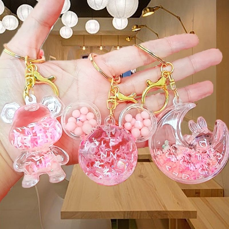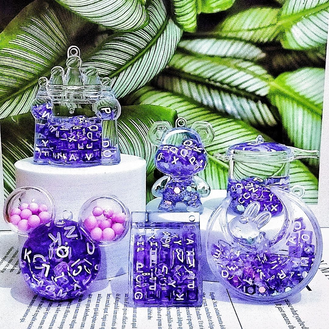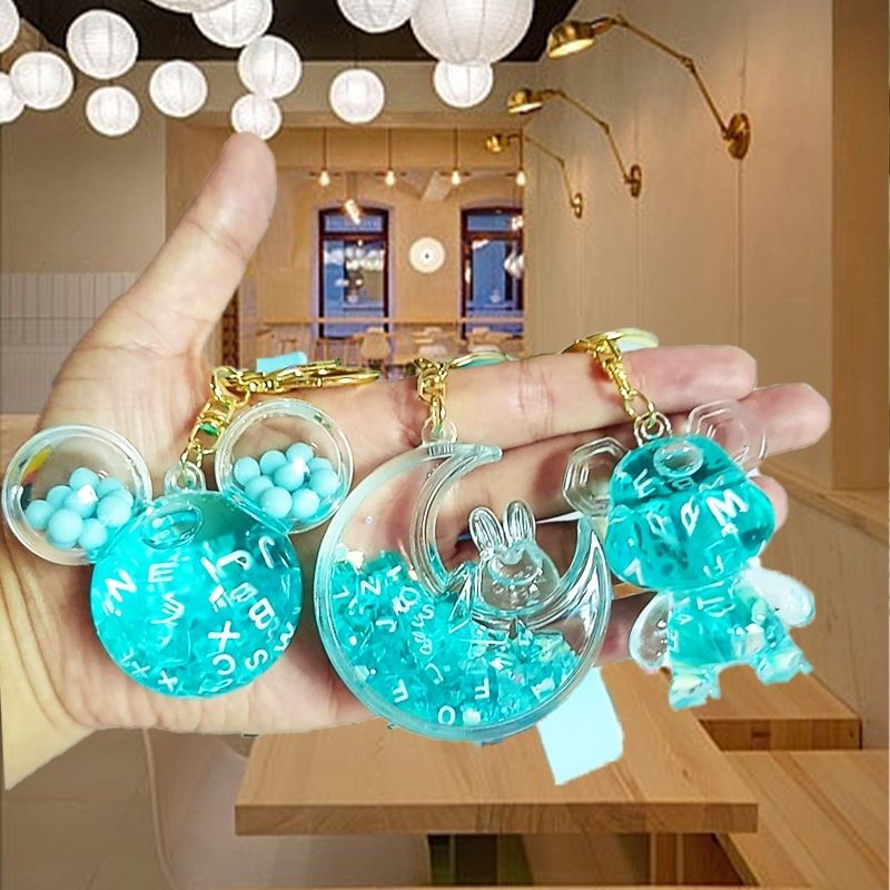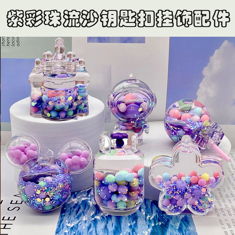 亚克力入油流沙瓶紫彩珠米奇头太空人钥匙扣包包挂件液体流沙玩具