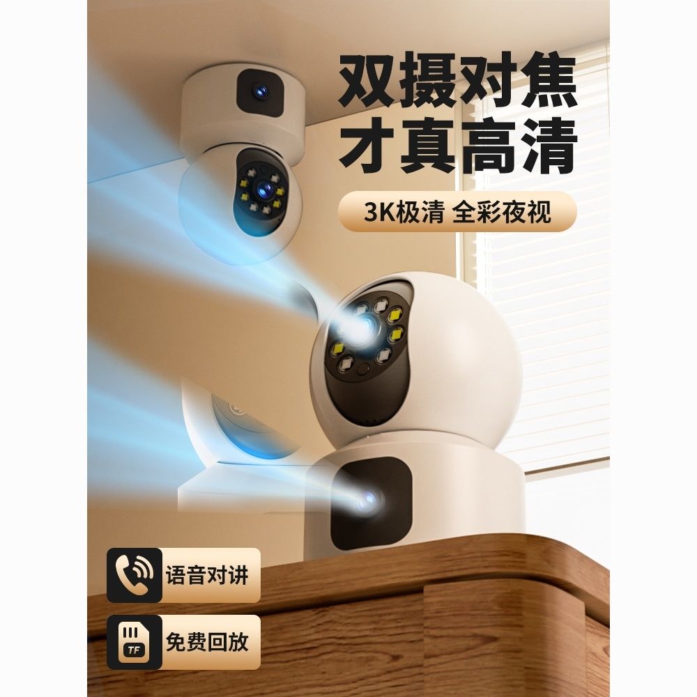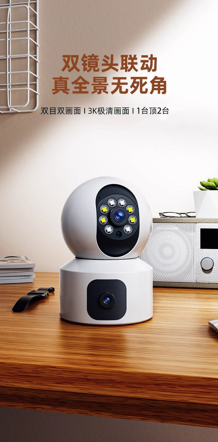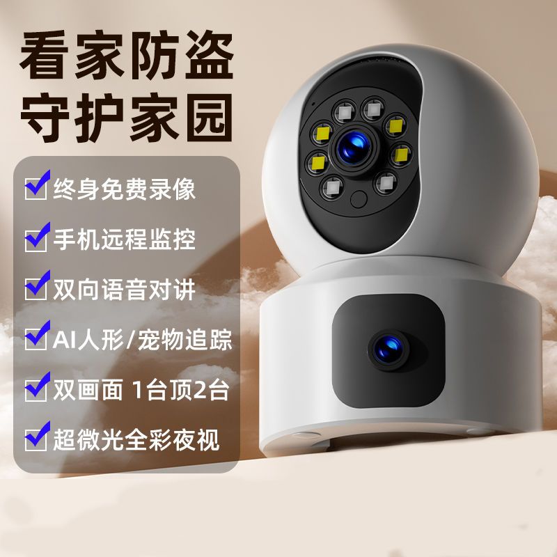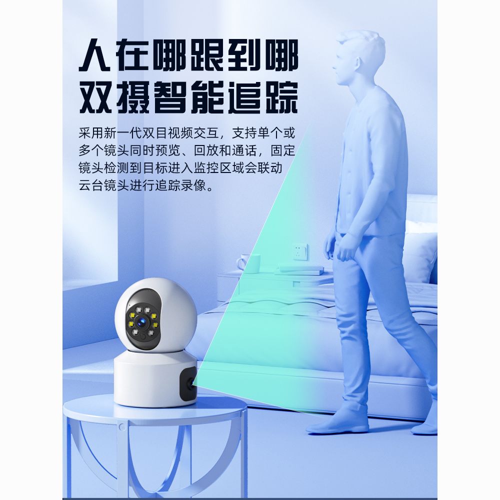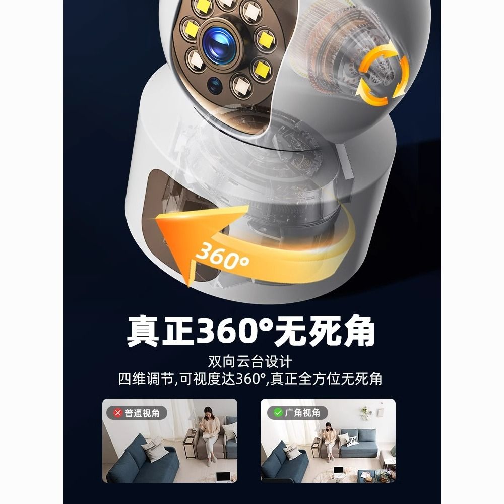 双镜头家用无线监控WiFi摄像头手机远程360度全景夜视室内可对讲
