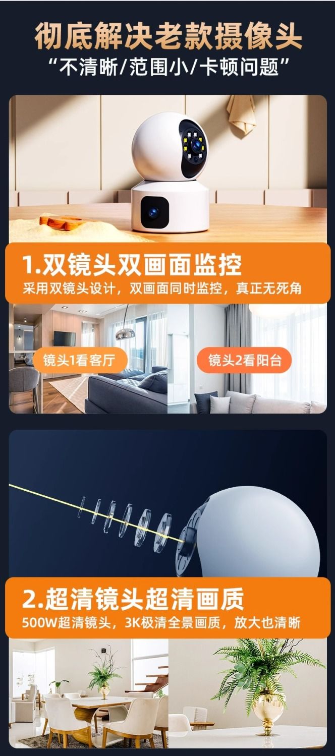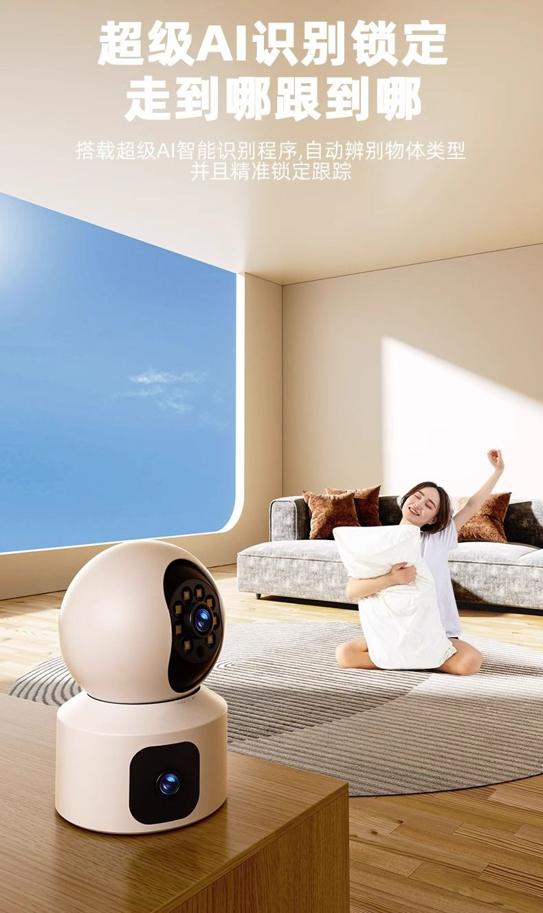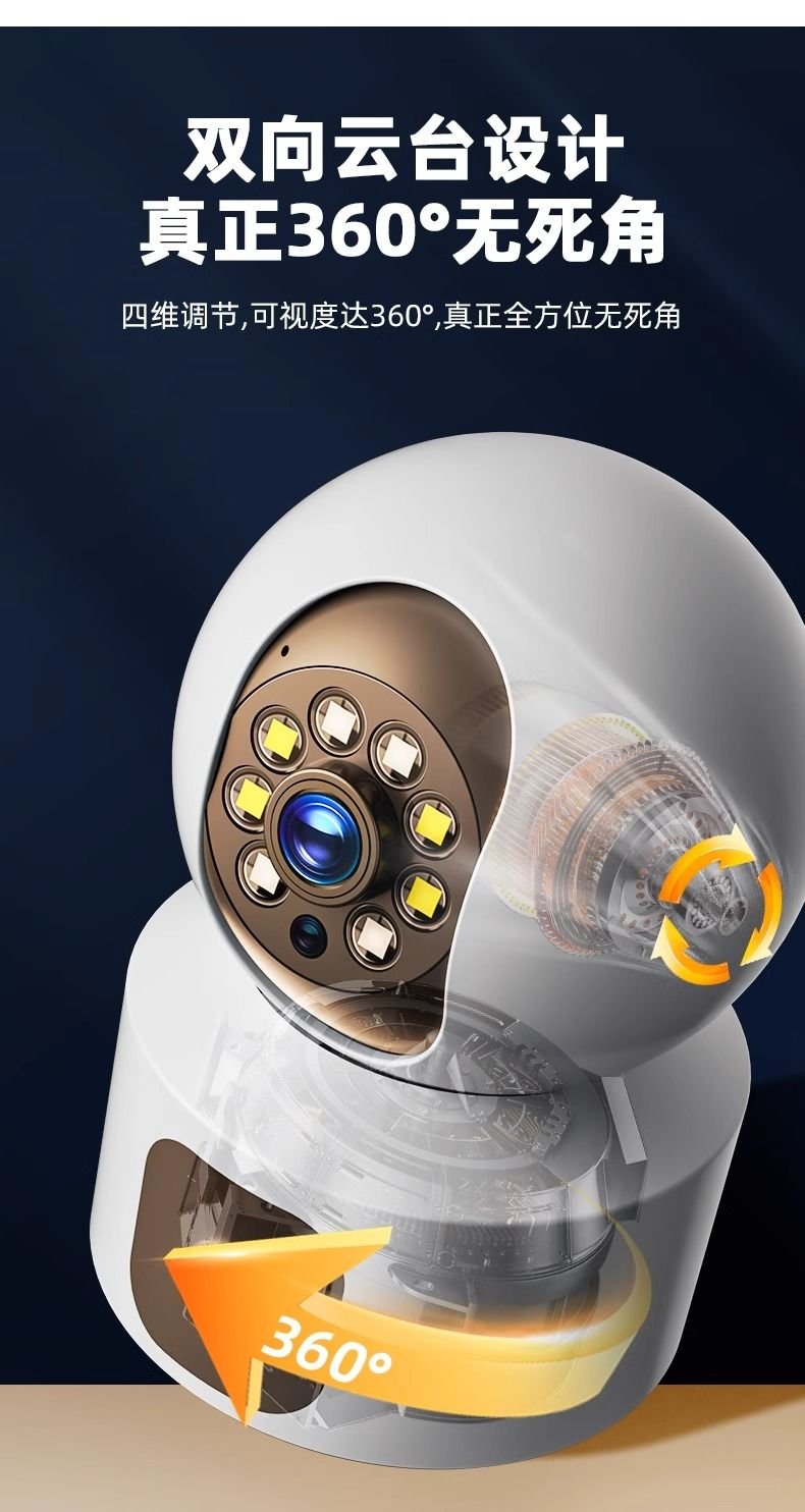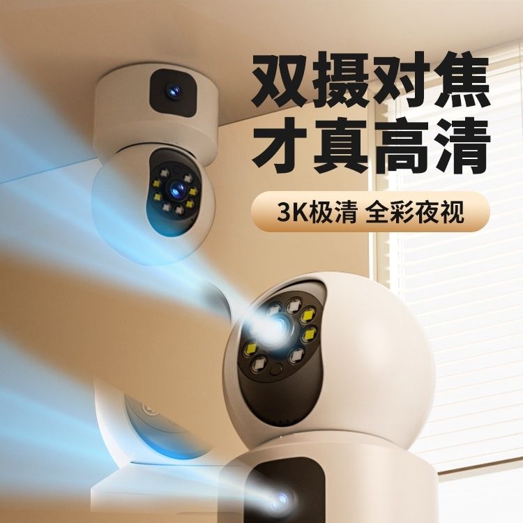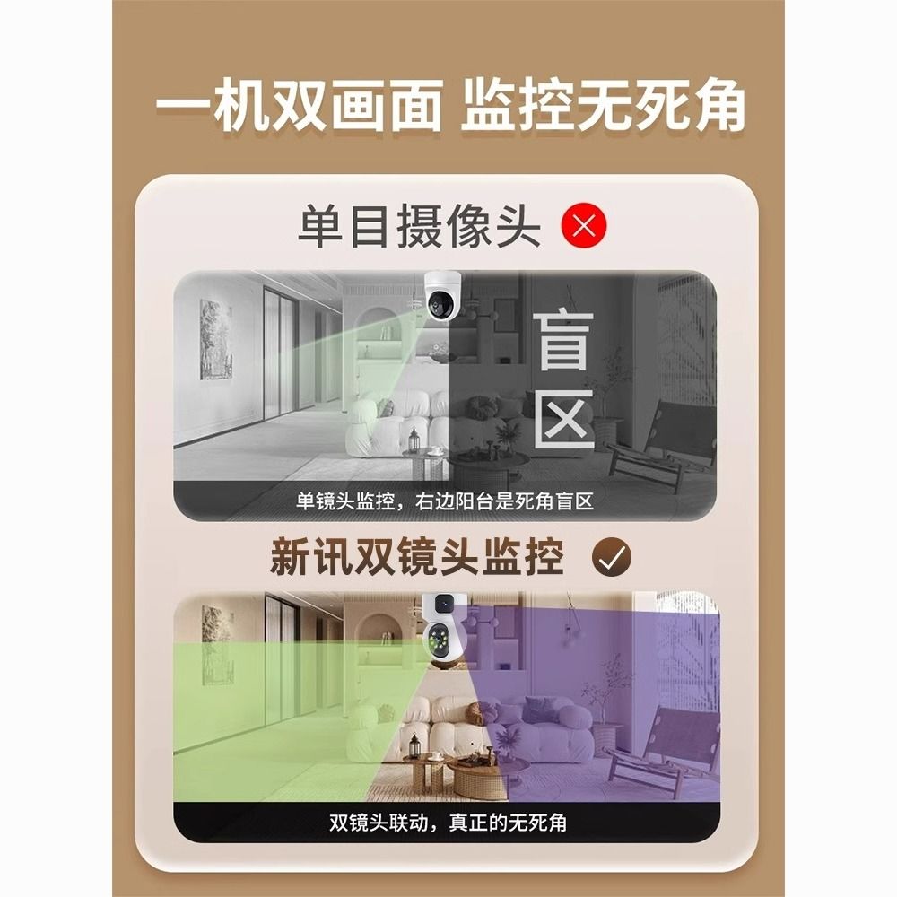 双镜头家用无线监控WiFi摄像头手机远程360度全景夜视室内可对讲