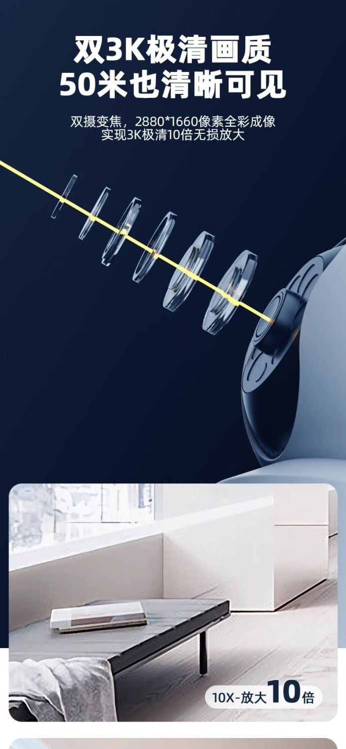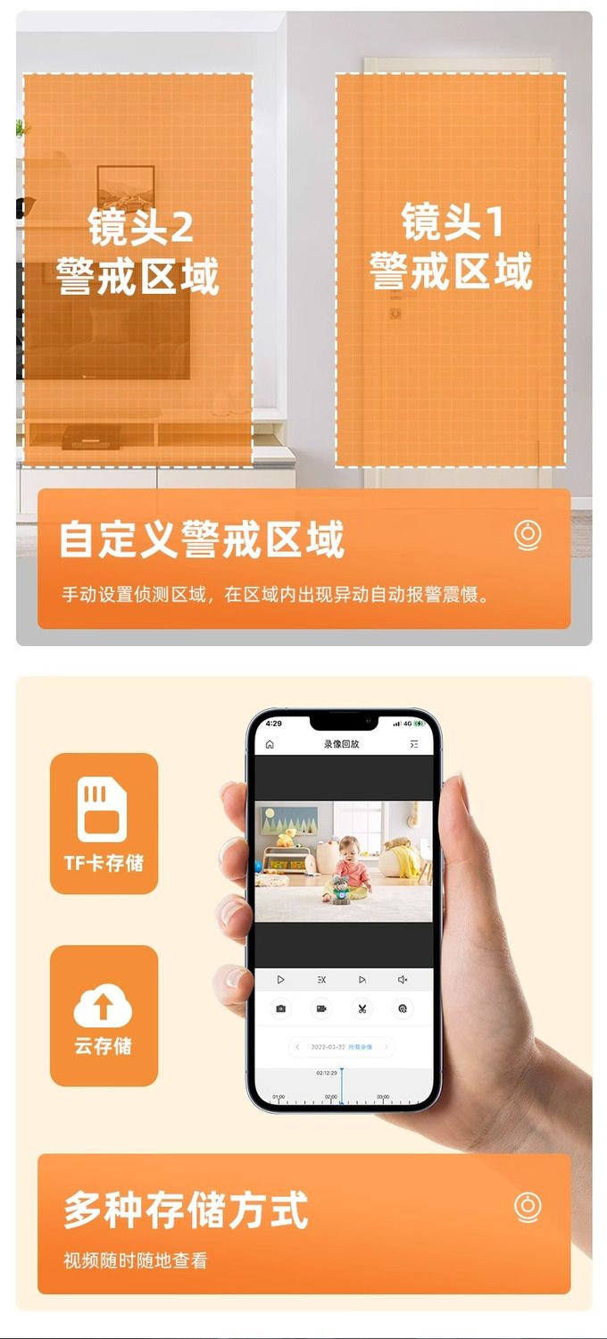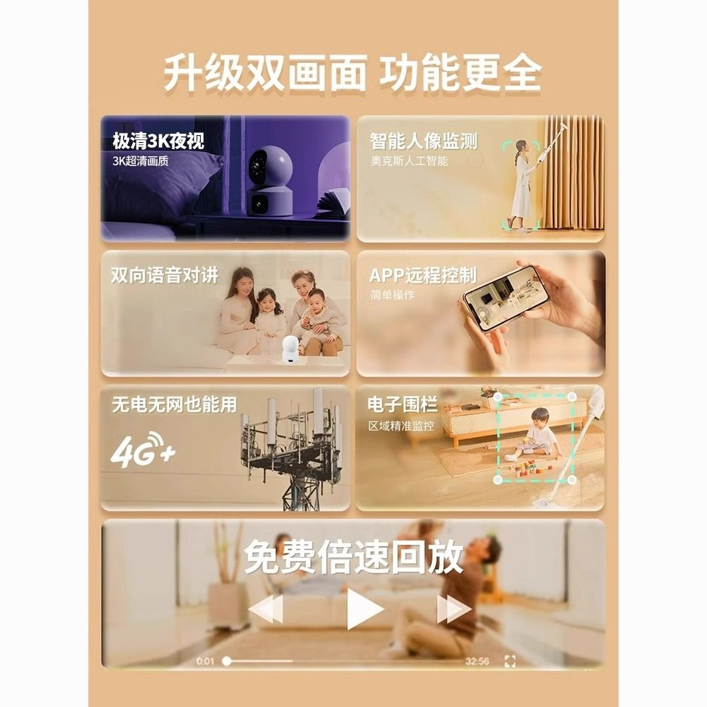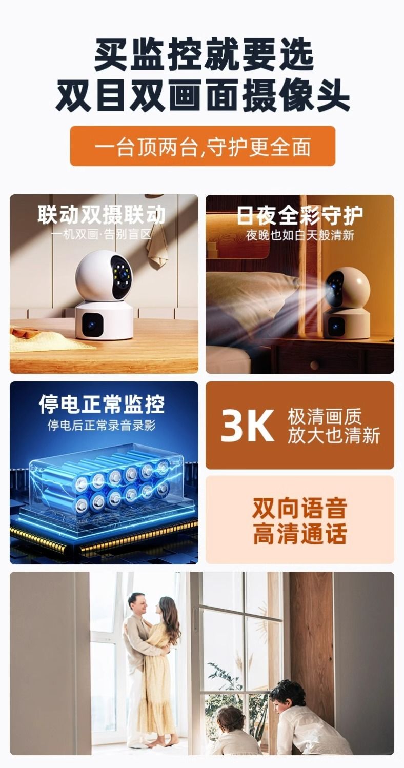 双镜头家用无线监控WiFi摄像头手机远程360度全景夜视室内可对讲