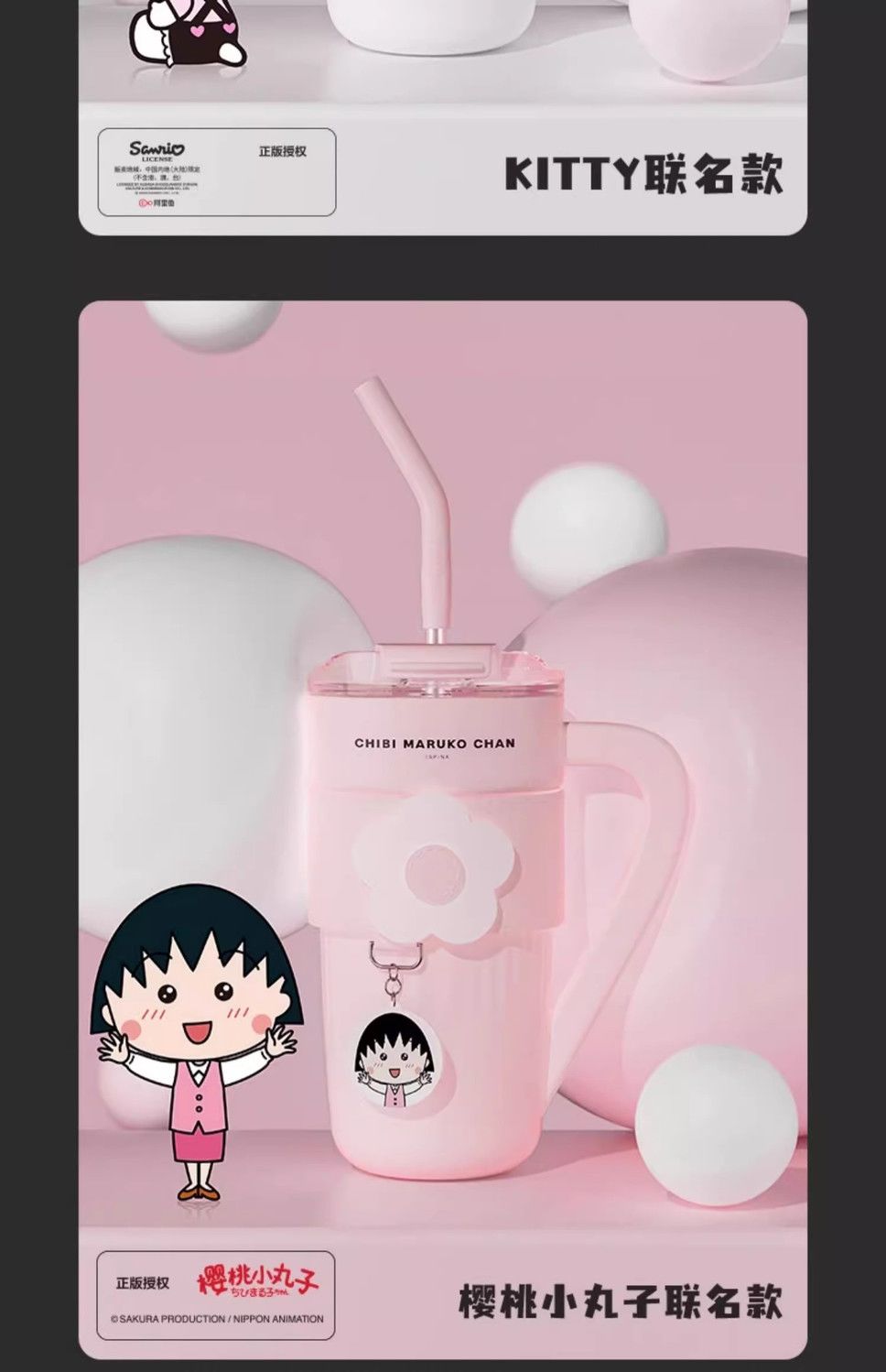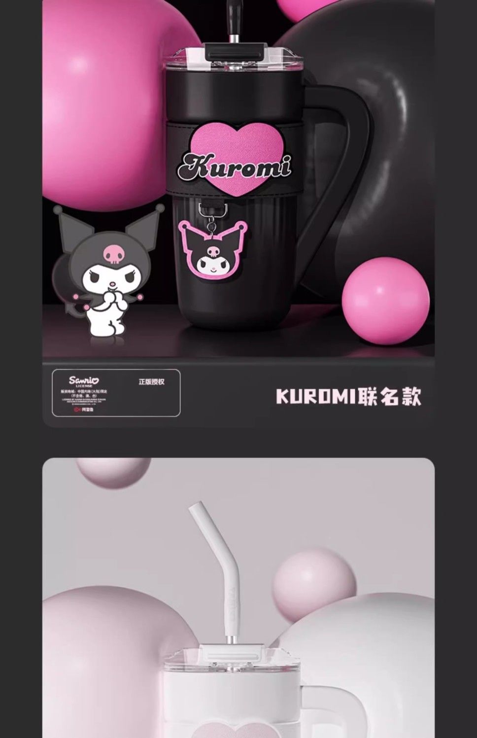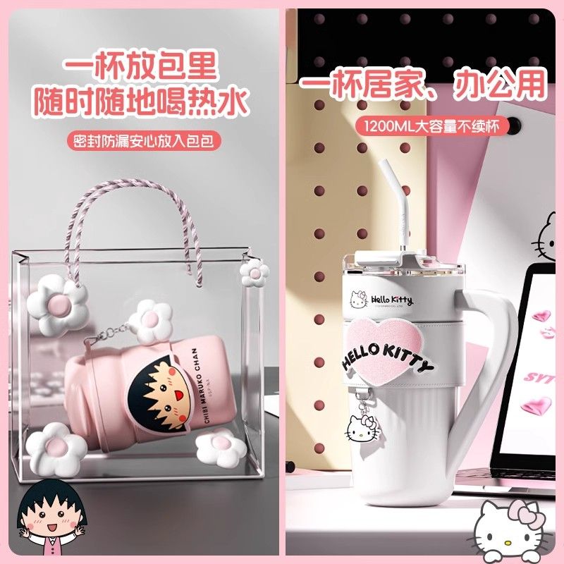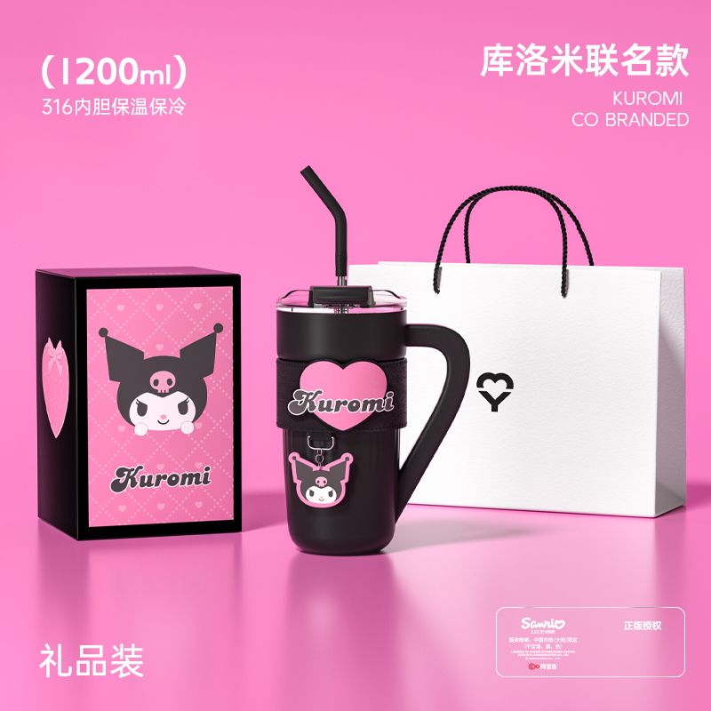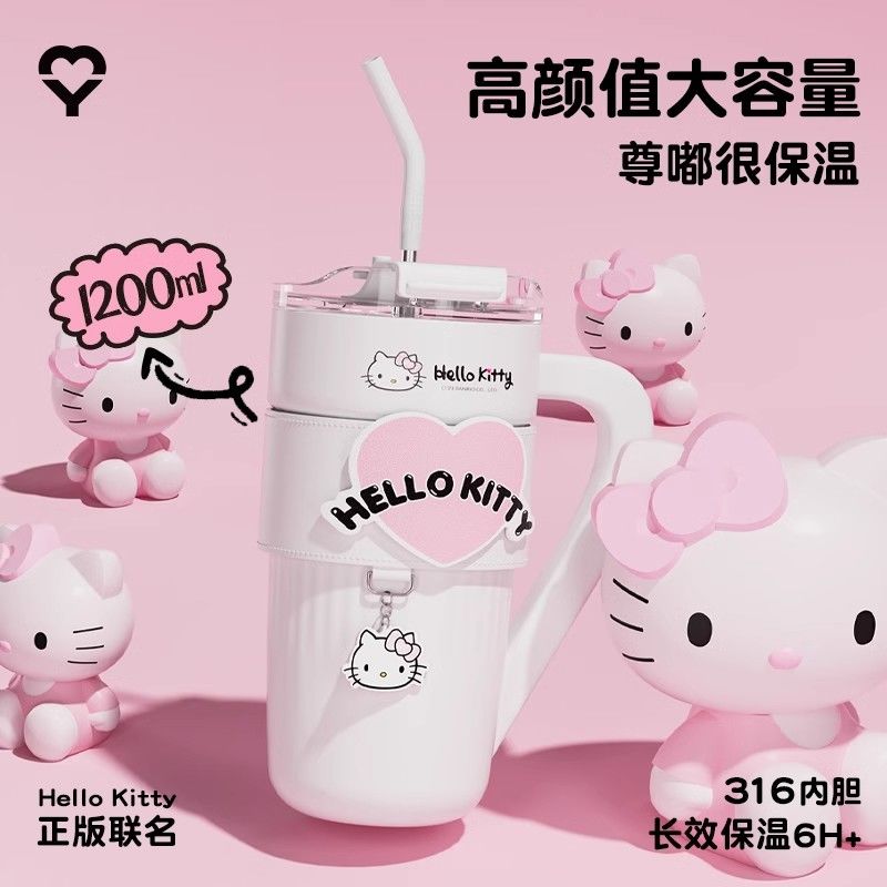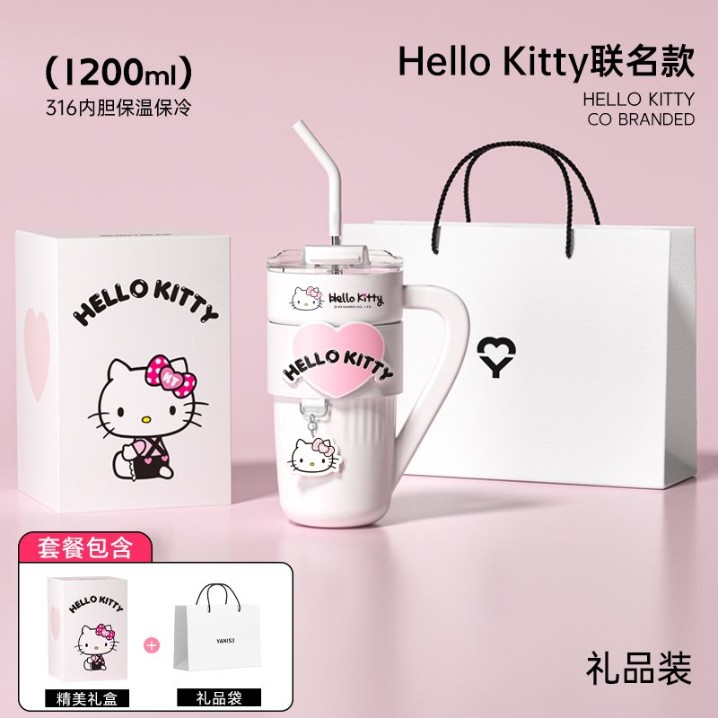 HelloKitty联名保温杯女咖啡杯高颜值生日礼物大容量吸管水杯夏天