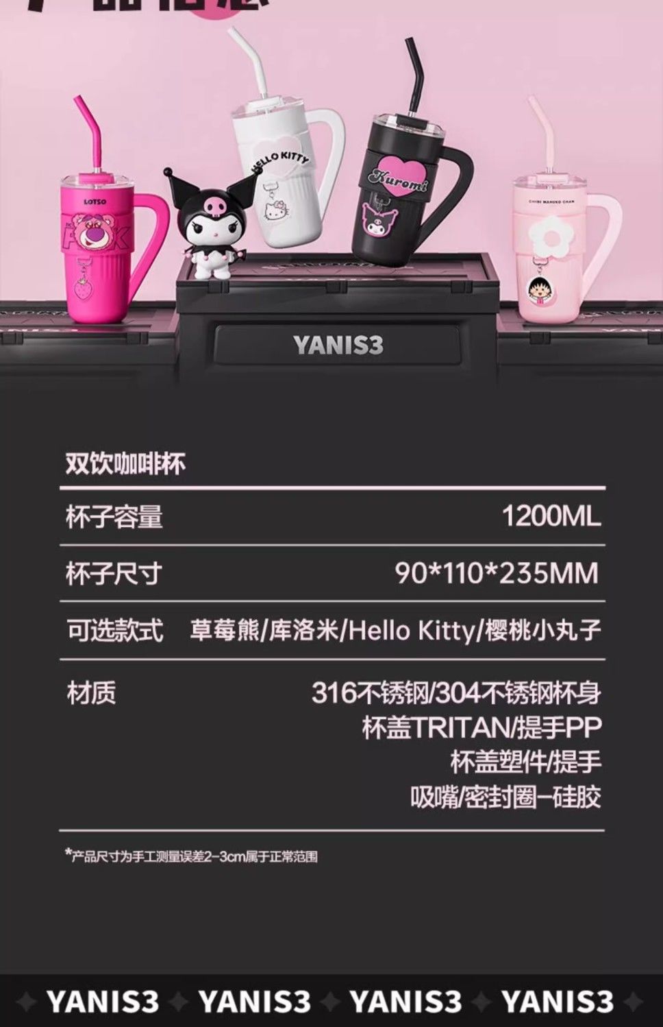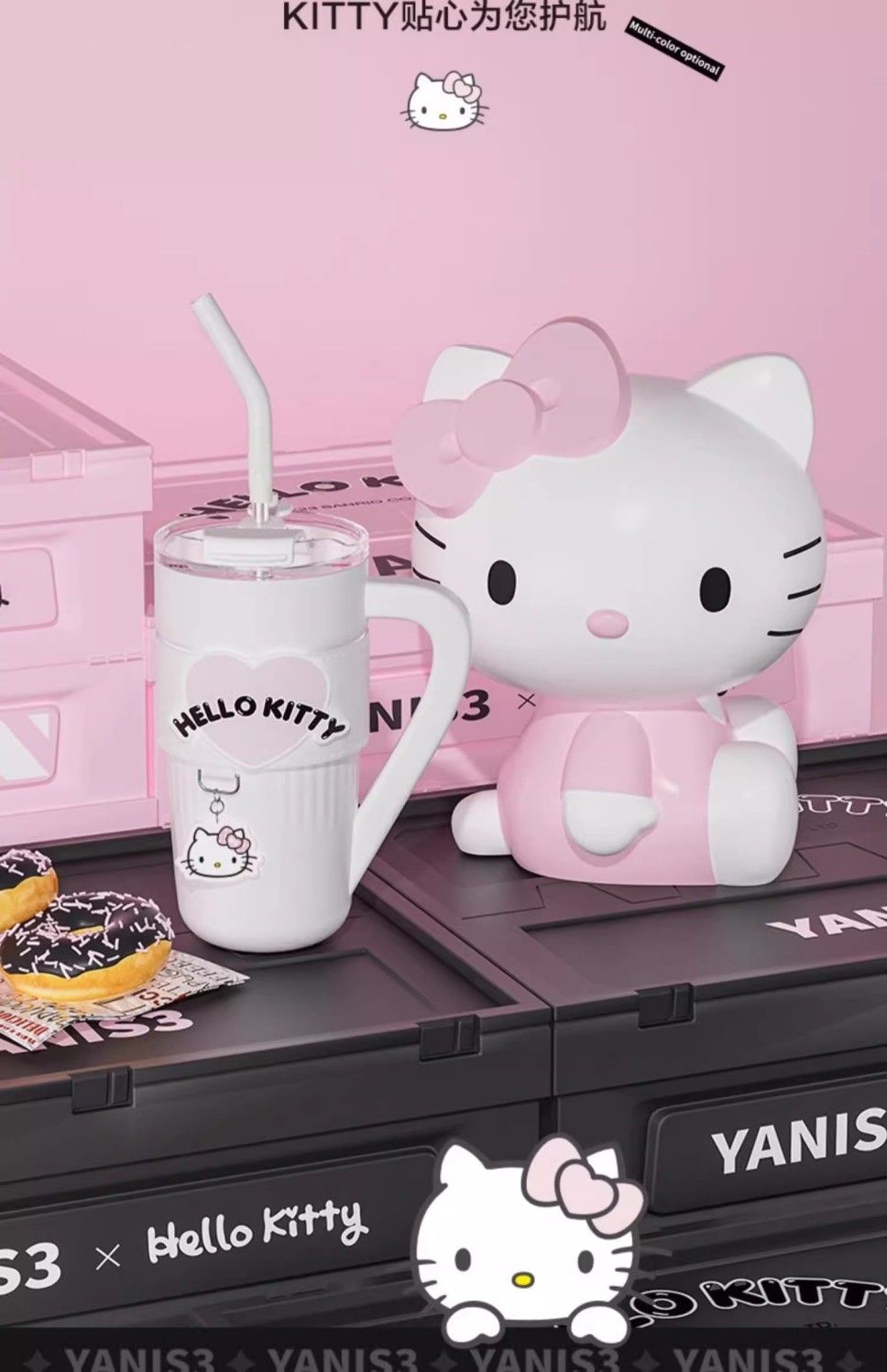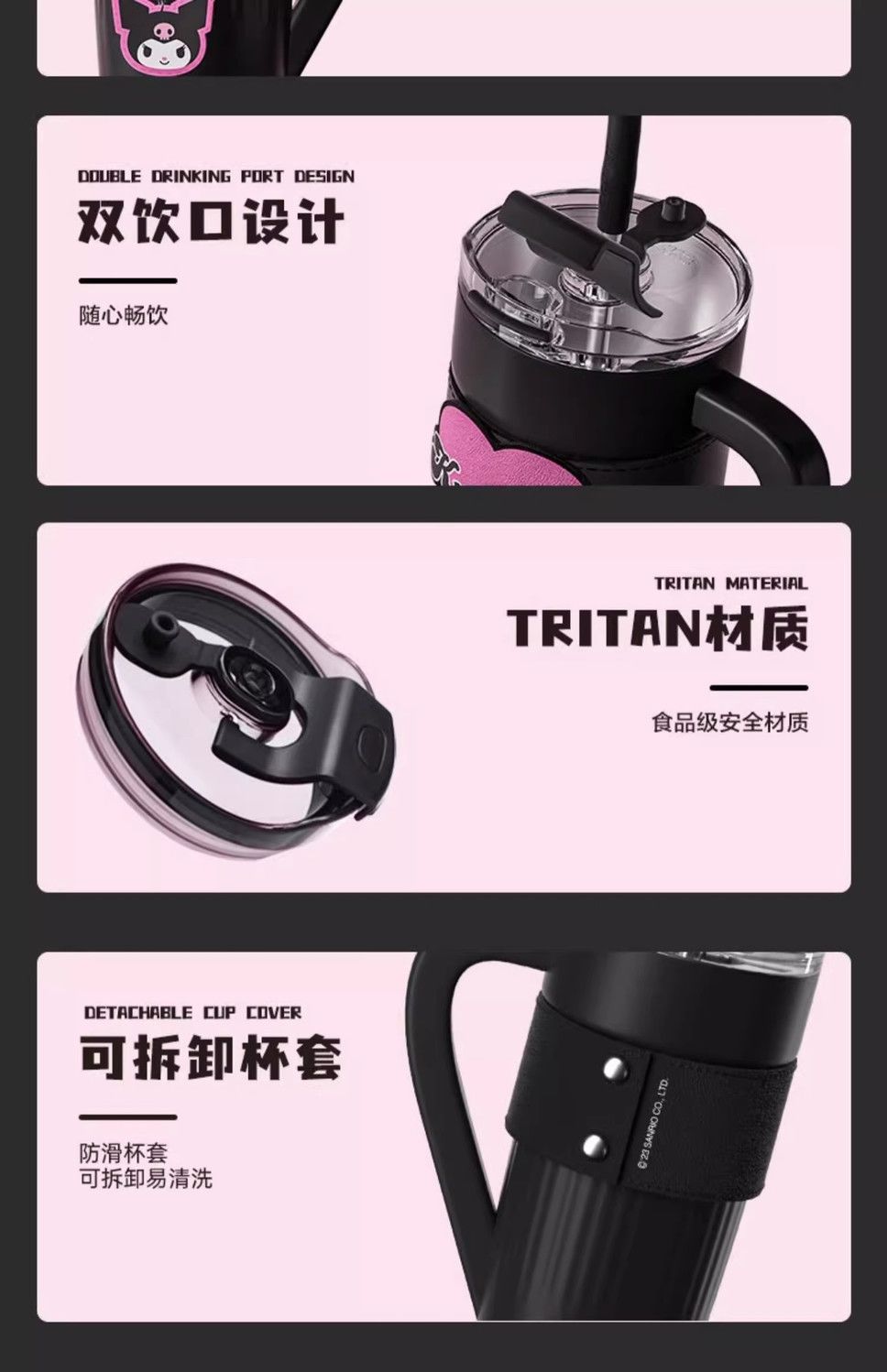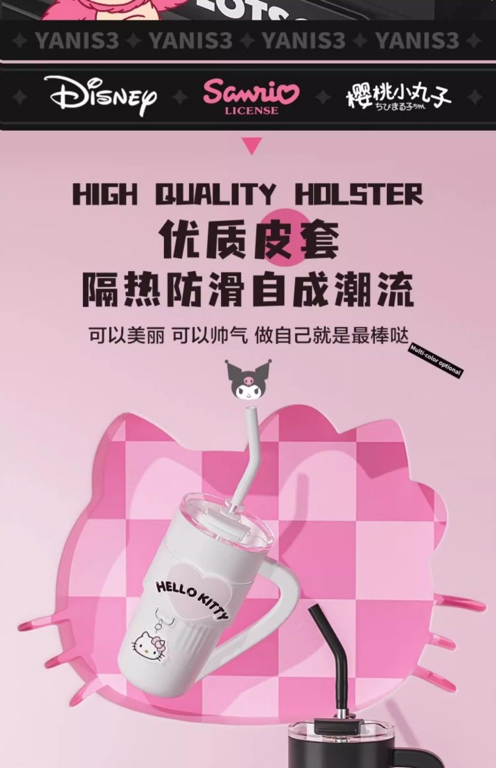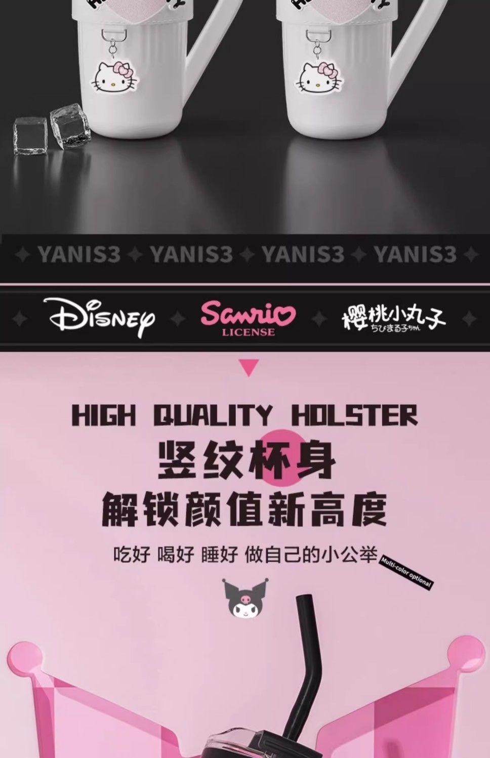 HelloKitty联名保温杯女咖啡杯高颜值生日礼物大容量吸管水杯夏天