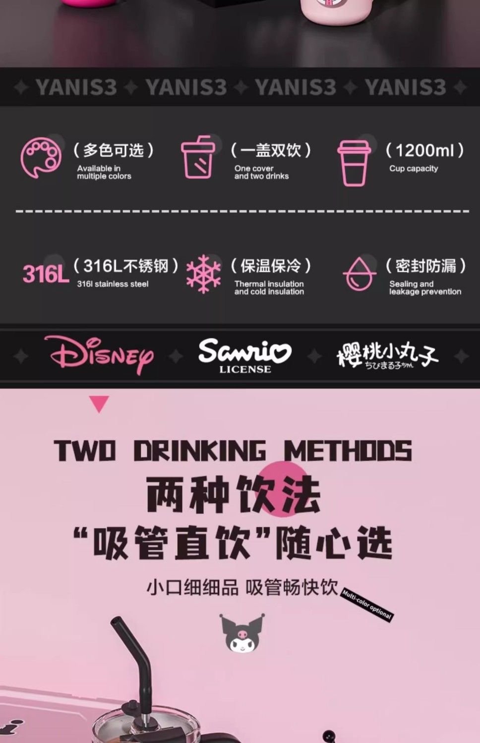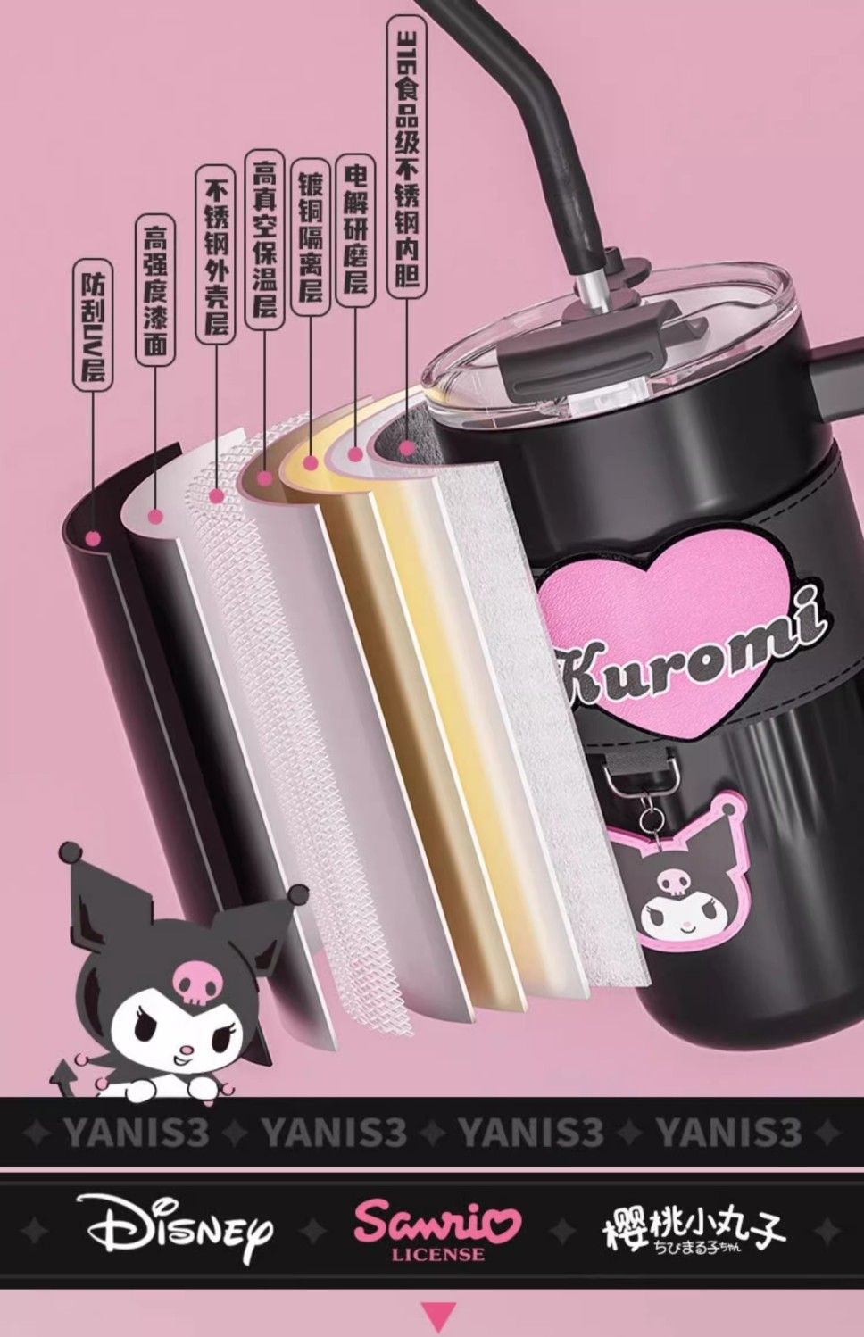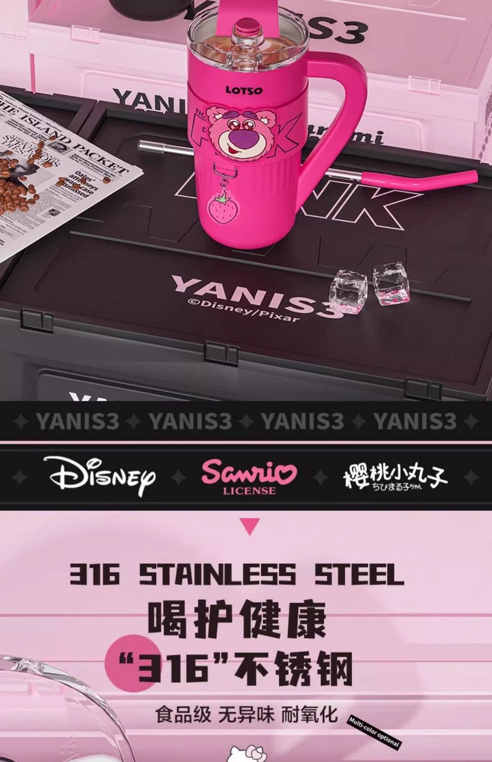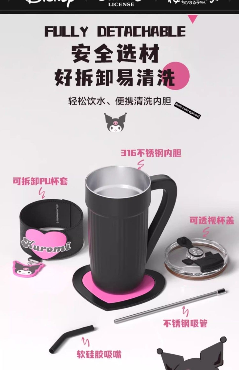 HelloKitty联名保温杯女咖啡杯高颜值生日礼物大容量吸管水杯夏天