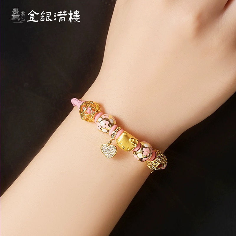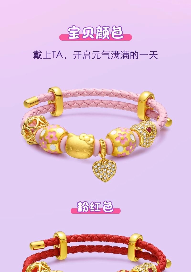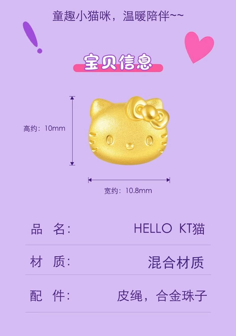 正品99.9凯蒂猫手链女生KT猫手绳3D爱心手链森系可爱diy成品定制