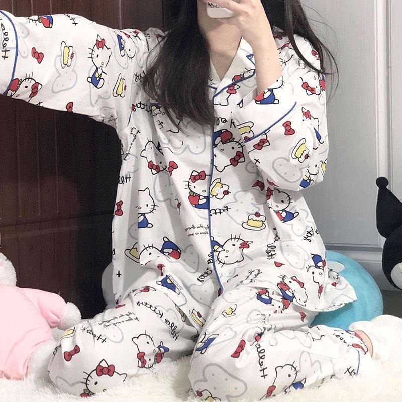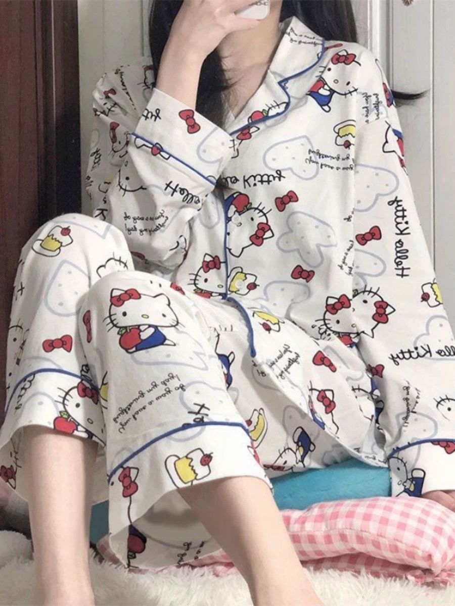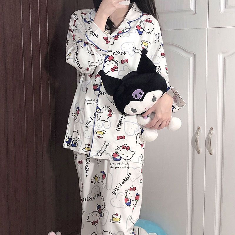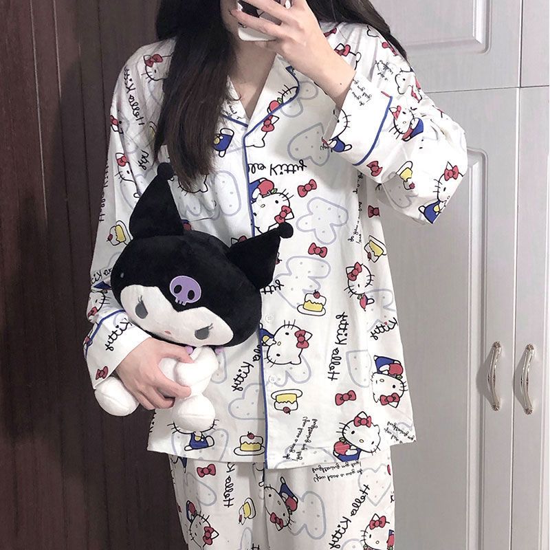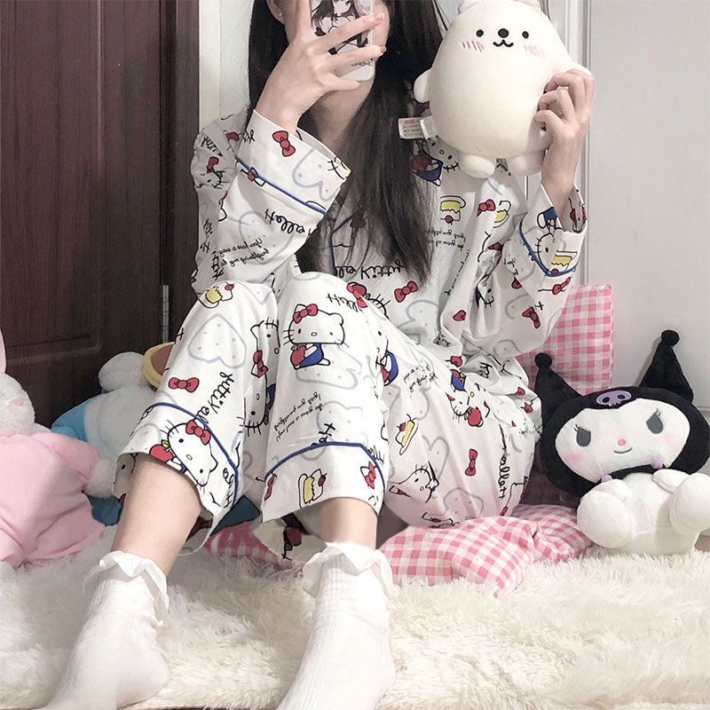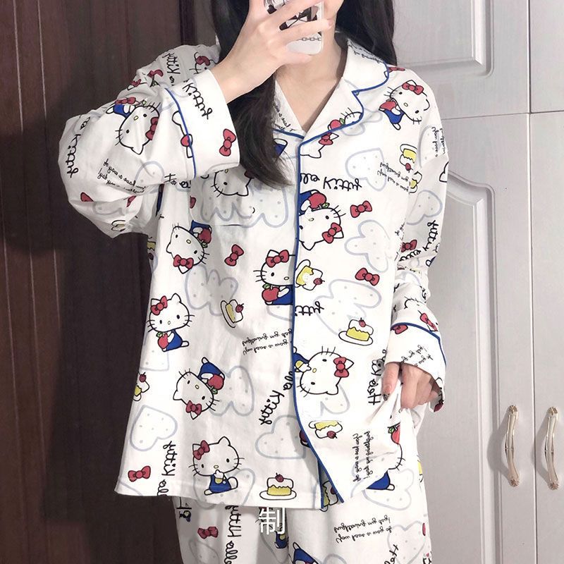 ins风日系睡衣女可爱卡通凯蒂猫长袖长裤Kitty家居服套装甜美新款