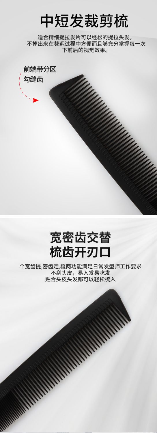 专业理发梳子尖尾钢针梳挑梳超薄男士分区平头防静电发廊梳造型梳