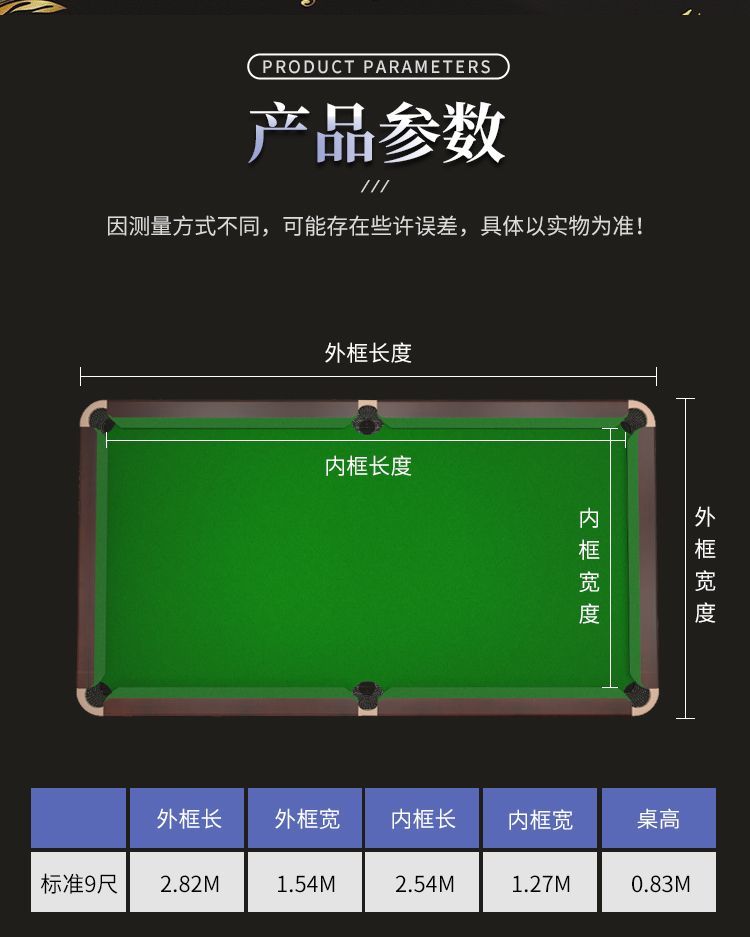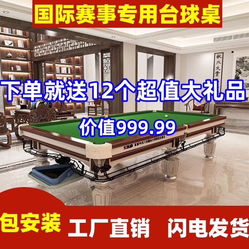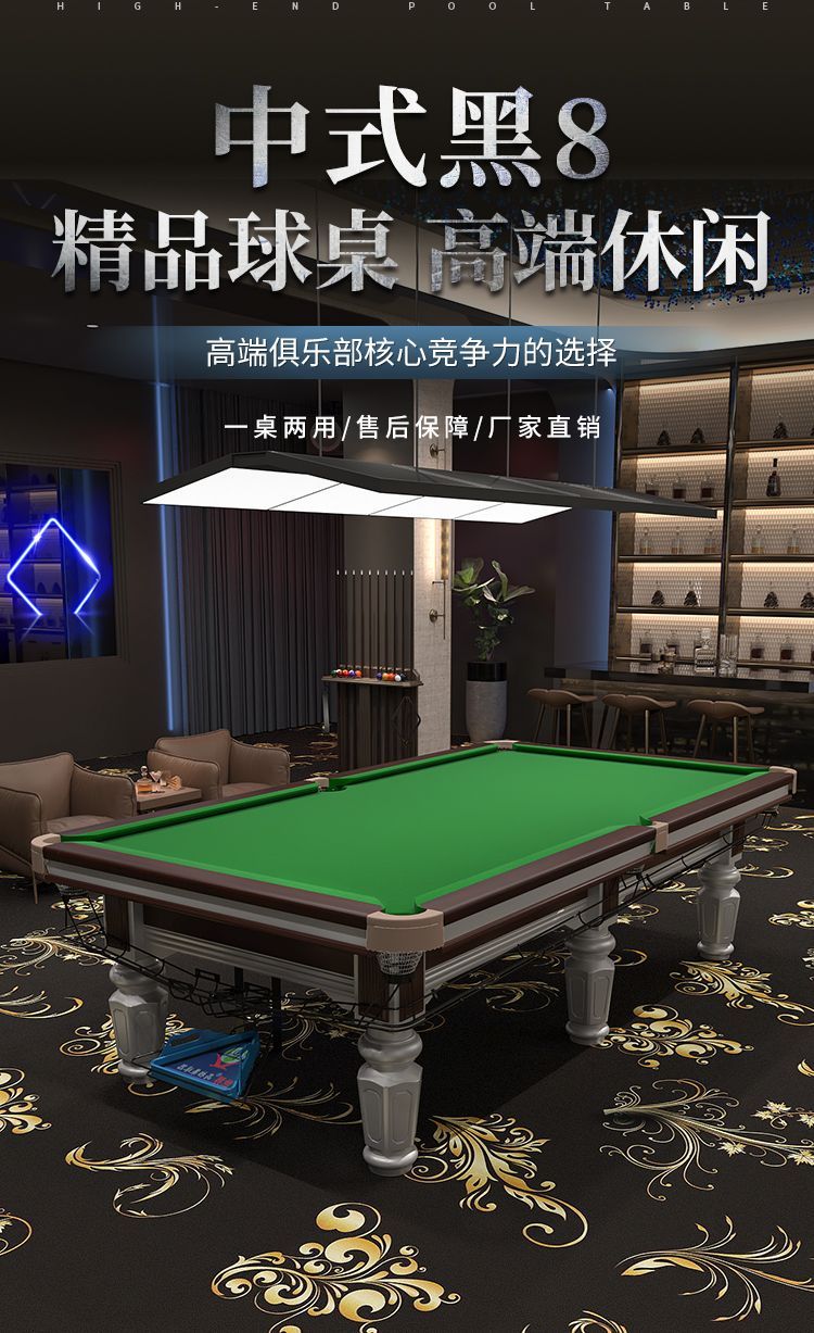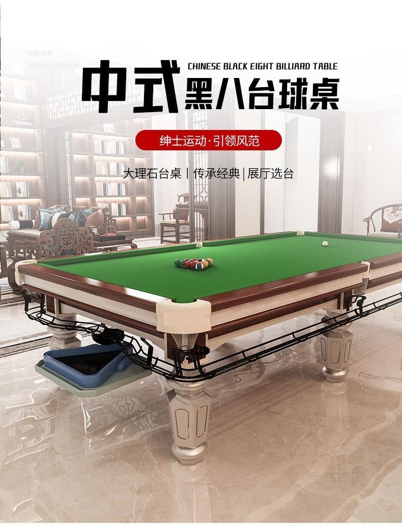 【活动特价款】商用台球桌钢库比赛球房球厅中式黑八大理石标准家