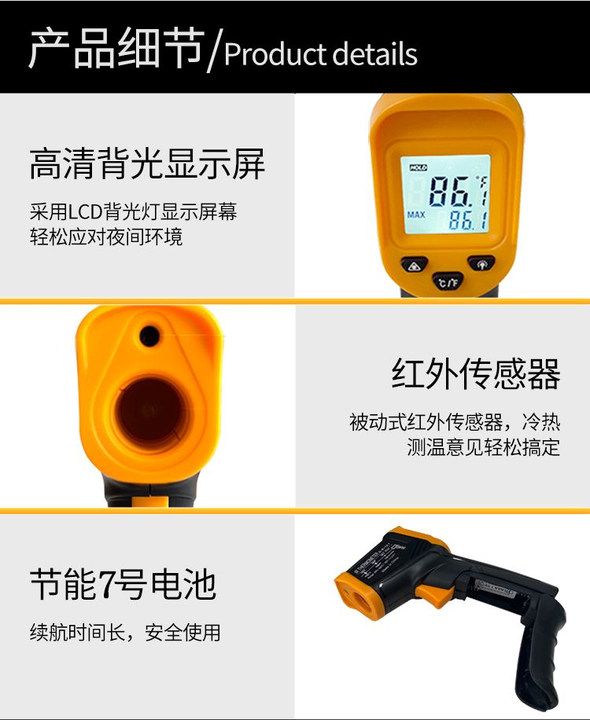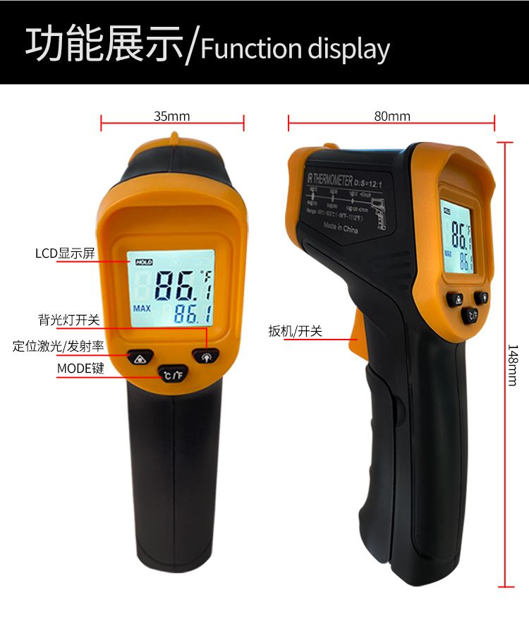 工业红外测温仪测温枪厨房油温水温奶温计烧烤烘焙温度计高温测温
