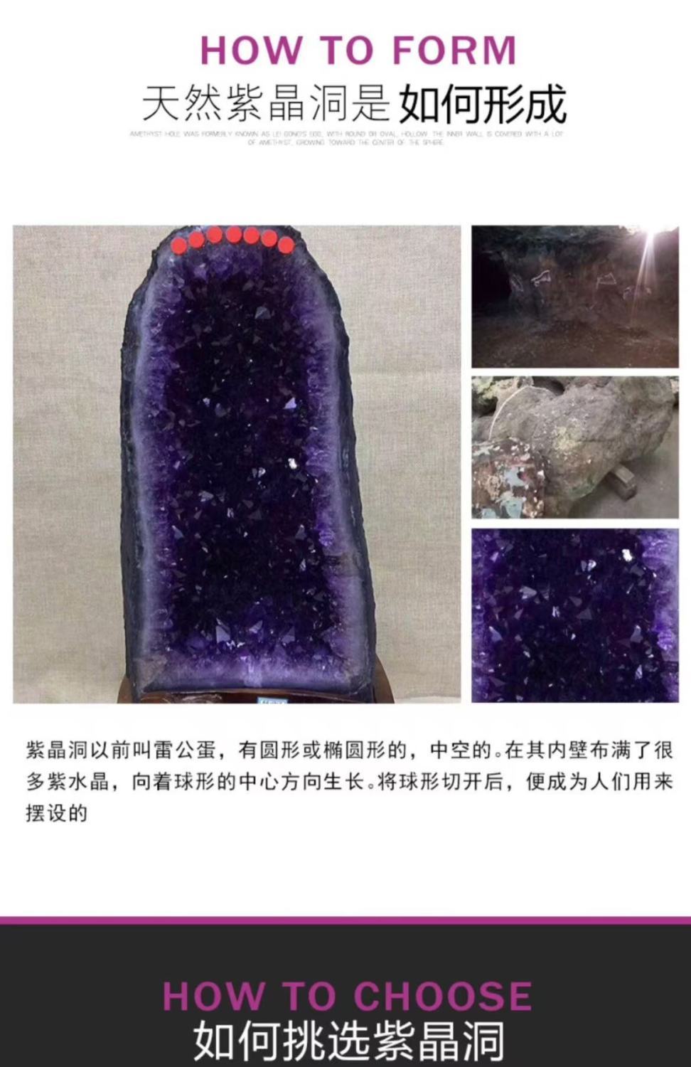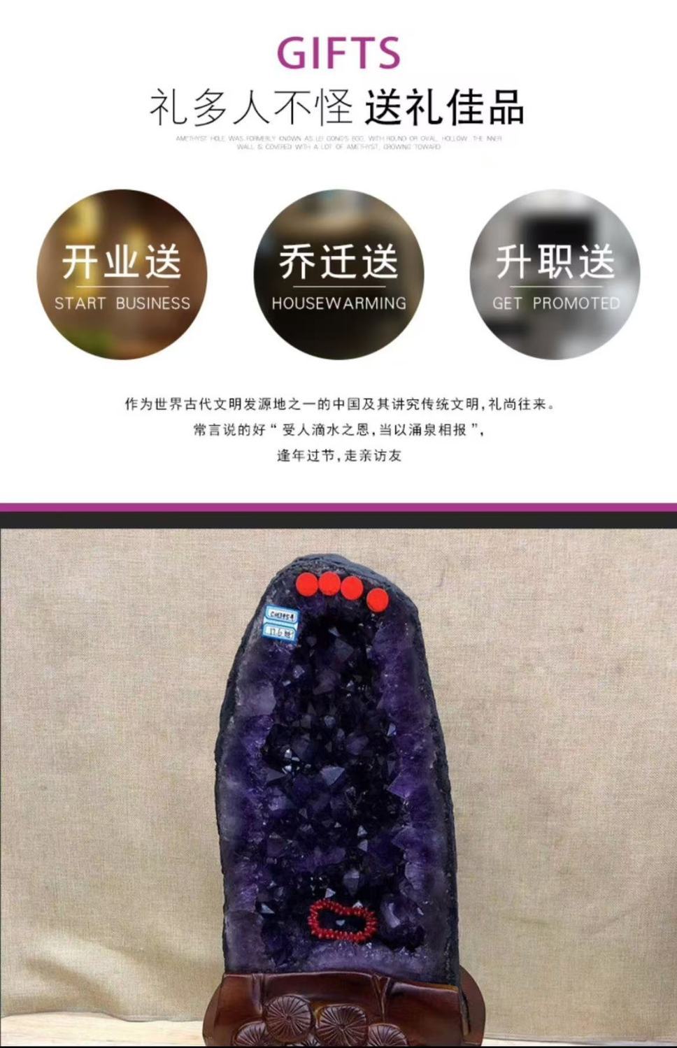 | zijing hole total height 34cm width 18cm with certificate(紫晶洞总高34厘米宽18厘米配证书) | USD $370.8 | 99999 piece available |