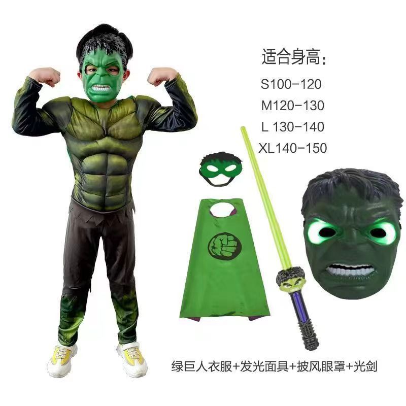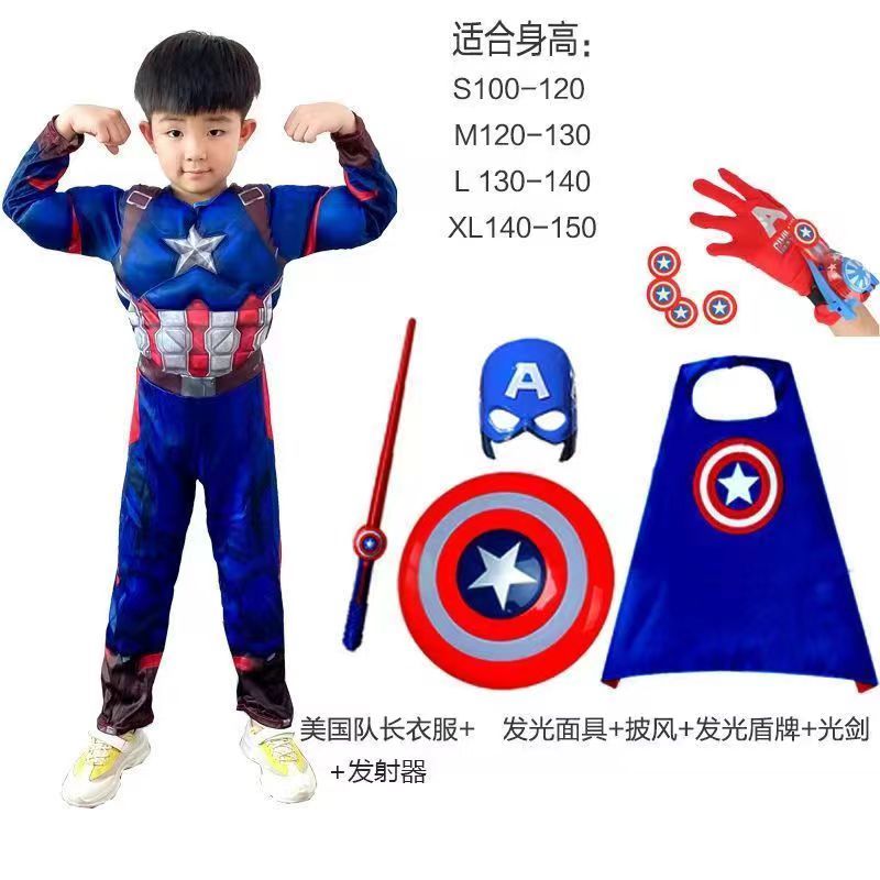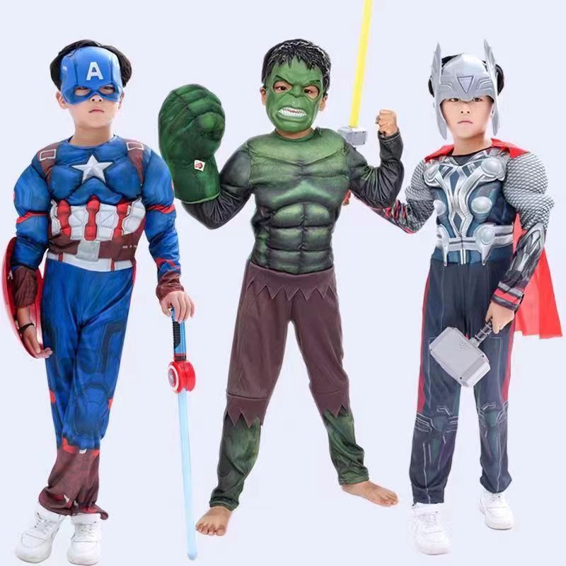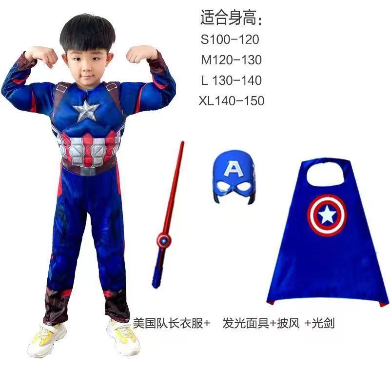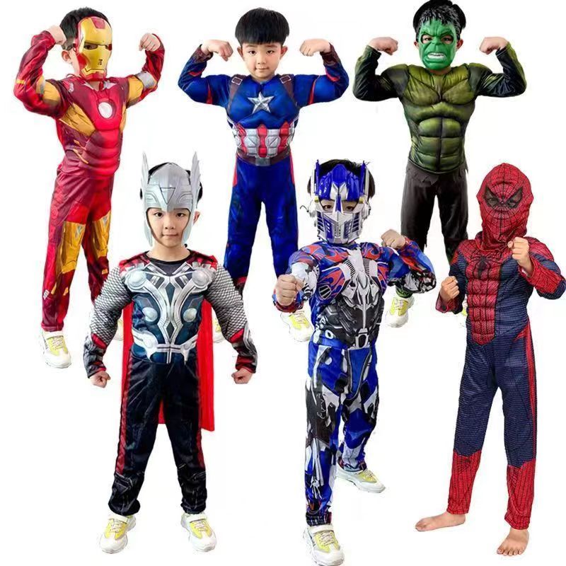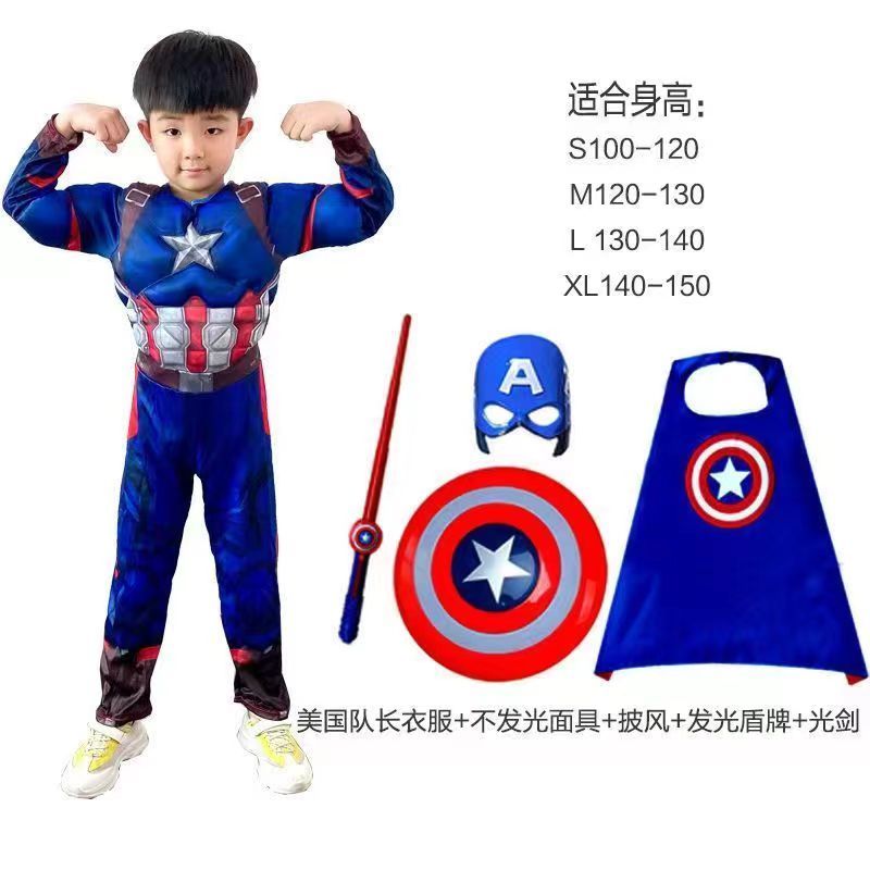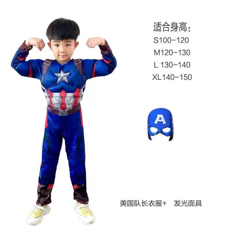 美国队长钢铁儿童蜘蛛侠肌肉服装绿巨人万圣节cos擎天柱衣服演出